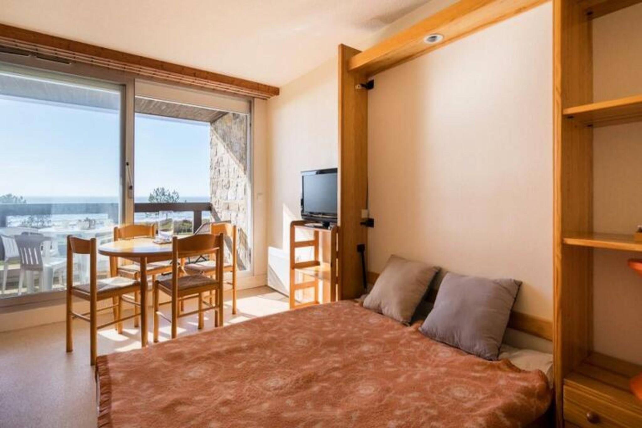 Denne charmerende studiolejlighed kan rumme op til 4 personer med en indgang i kabinestil med 2 enkeltkøjesenge og et opholdsområde med en sammenfoldelig dobbeltseng (140 cm) for ekstra bekvemmelighed. Ejendommen er ikke-ryger, og kæledyr er ikke tilladt, hvilket sikrer et rent og roligt miljø for gæsterne. Lejligheden har en sydvendt loggia med en smuk havudsigt, perfekt til at slappe af, mens du nyder den friske luft. Gæsterne har også adgang til parkering, som ligger i nærheden af ??boligen. Beliggende kun få skridt fra den ikoniske Grande Plage de Carnac, denne studiolejlighed tilbyder nem adgang til stranden og er kun en kort afstand fra lokale butikker, caféer og restauranter. Uanset om du ønsker at nyde en afslappet dag ved vandet eller udforske den pulserende by, gør lejlighedens beliggenhed den til en ideel base for din ferie. Det omkringliggende område byder på en række attraktioner til både afslapning og eventyr. Lejligheden har et veludstyret køkken med 2-brændere, en kombineret ovn og mikroovn samt et køleskab, så gæsterne kan tilberede måltider, når det passer dem. Bruserummet har et toilet, der giver alle de nødvendige faciliteter for et behageligt ophold. Derudover er varme- og energiomkostninger inkluderet, hvilket sikrer en problemfri oplevelse. Valgfri tjenester, såsom slutrengøring og leje af sengetøj, er tilgængelige mod et ekstra gebyr.