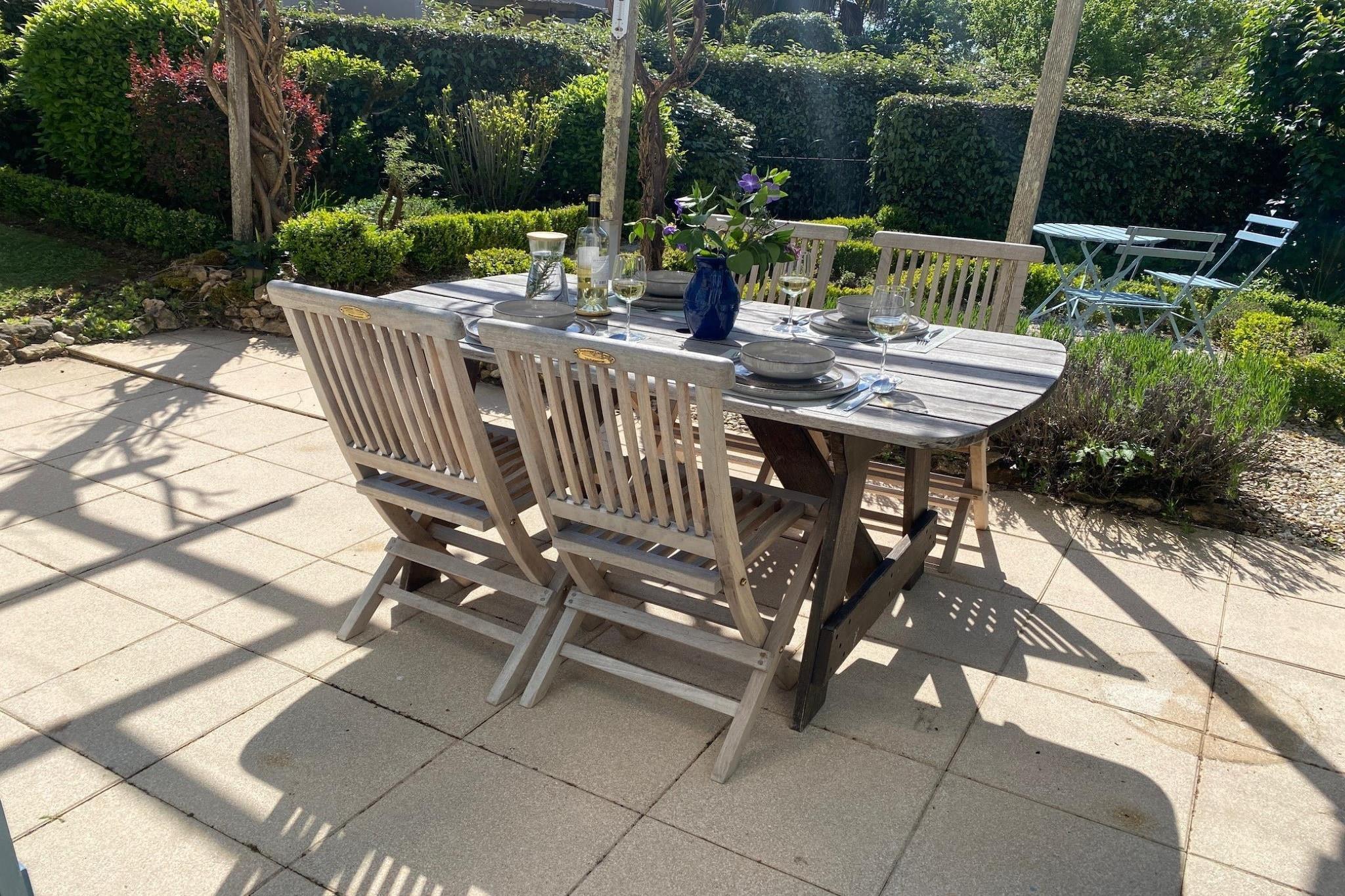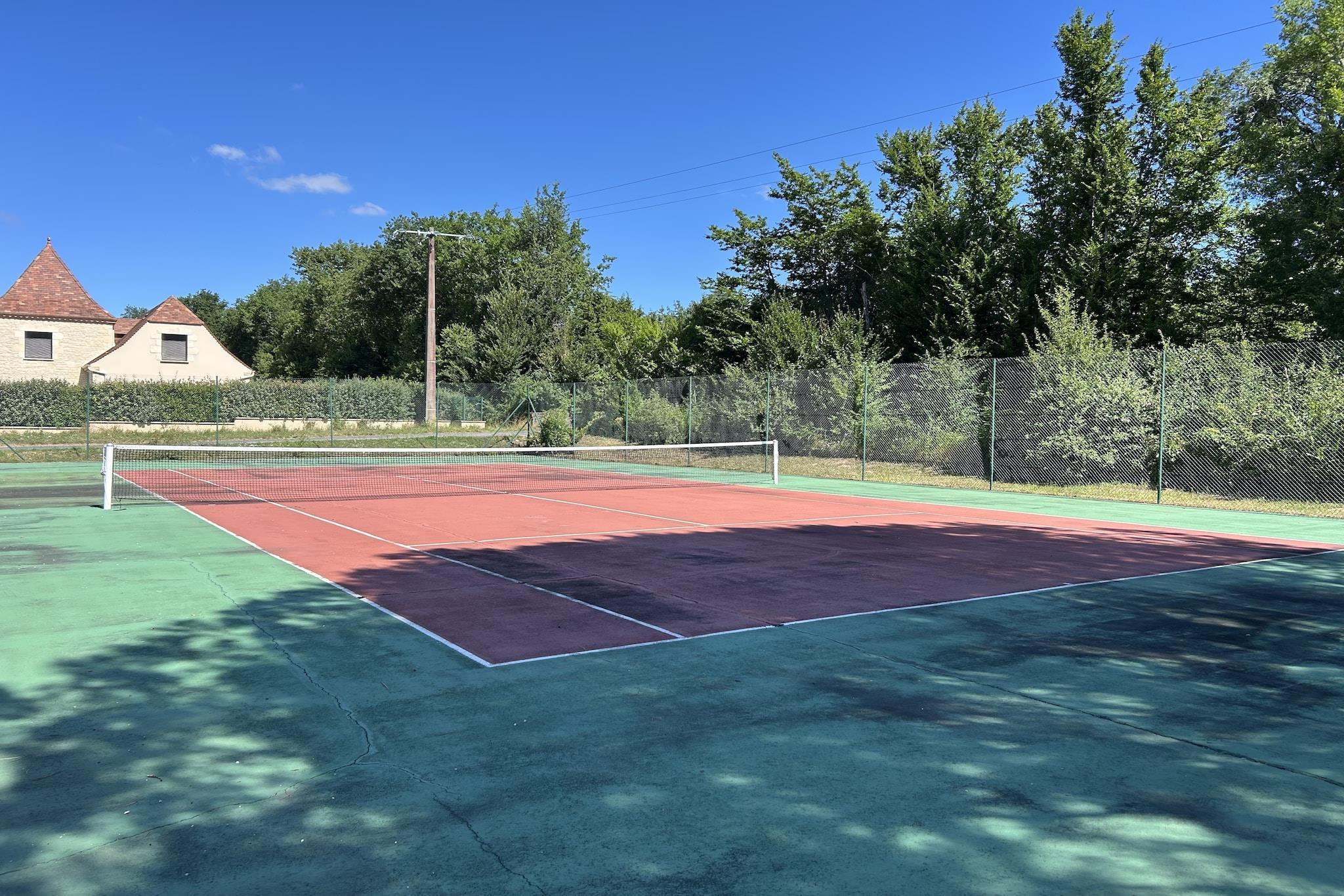 Beliggende i de grønne skove i Périgord Noir og kun 10 km fra den charmerende middelalderby Sarlat-la-Canéda, ligger dette hyggelige feriehus i det rolige Domaine de Carsac. Omgivet af natur og en kort gåtur fra Dordogne-floden, kan ejendommen prale af en stor swimmingpool, en tennisbane og åbne grønne områder - perfekt til familier, friluftsentusiaster og alle, der ønsker at slappe af. Huset har komfortabel plads til op til 4 voksne og 2 børn og har 2 private parkeringspladser, flere solrige terrasser og en smukt vedligeholdt lukket have på cirka 300 m². Nyd to cykler og grillen til solrige eftermiddage i haven. I stueetagen finder du en lys stue med et hyggeligt siddeområde og franske døre, der fører ud til terrasserne. Det tilstødende åbne køkken er veludstyret og har et spisebord til seks personer. Det moderne badeværelse har et rummeligt brusebad, håndvask og toilet. Ovenpå er der et soveværelse med to enkeltsenge og en fantastisk udsigt, mens mezzaninen over køkkenet rummer en dobbeltseng og en køjeseng, hvilket gør det ideelt for børnefamilier. Huset er omhyggeligt udstyret med alle de nødvendige faciliteter, herunder et smart-tv, gratis Wi-Fi, en Nespresso-maskine, en keramisk kogeplade, en vaskemaskine, et strygejern, en hårtørrer, tennisketsjere og meget mere. Gæsterne har fuld adgang til den store, oplyste swimmingpool og tennisbane. Det omkringliggende område er perfekt til cykling, vandreture, kajaksejlads eller blot at nyde Dordognes smukke natur.