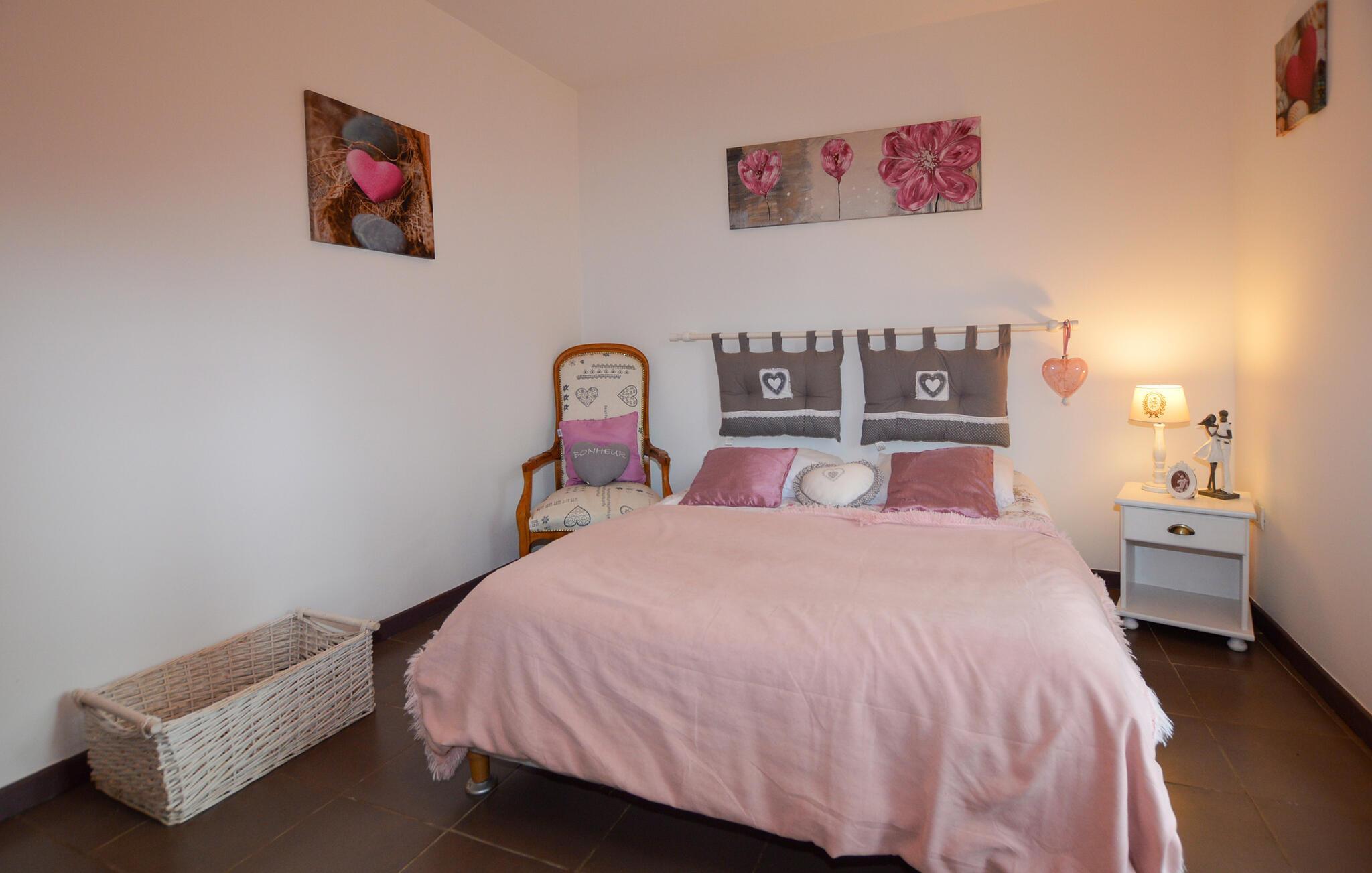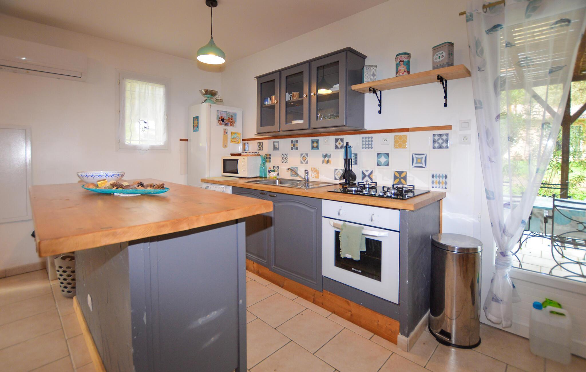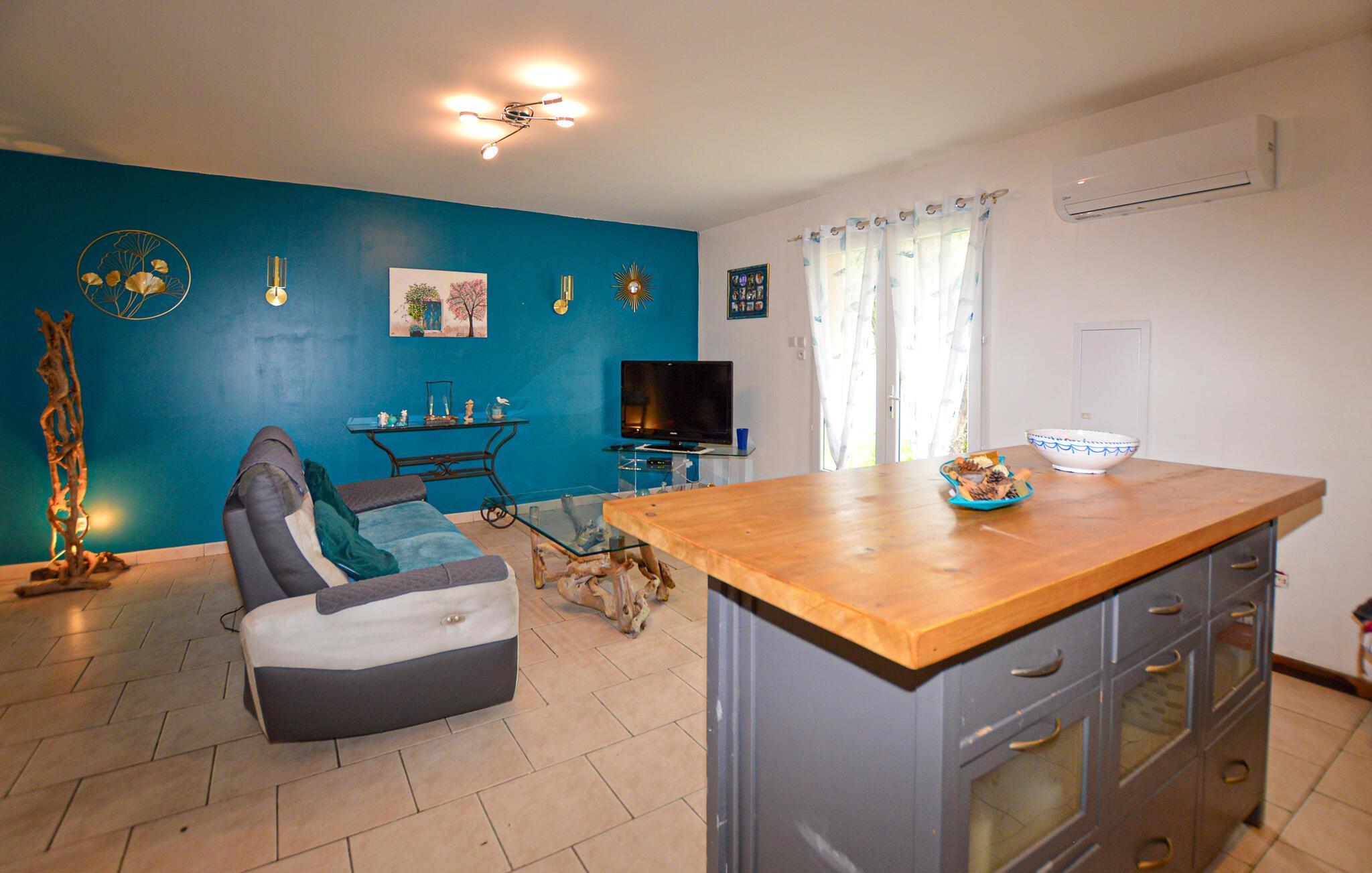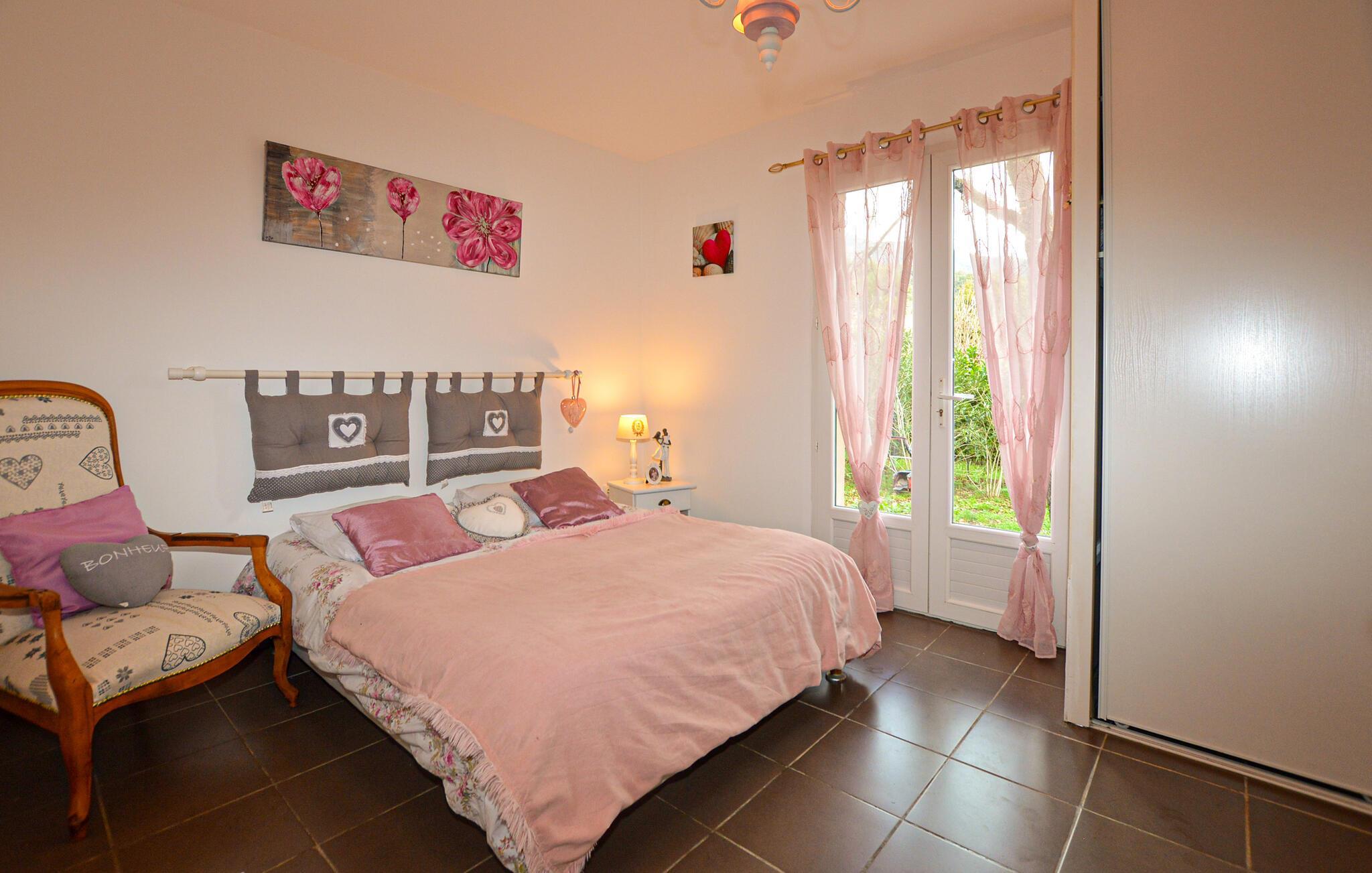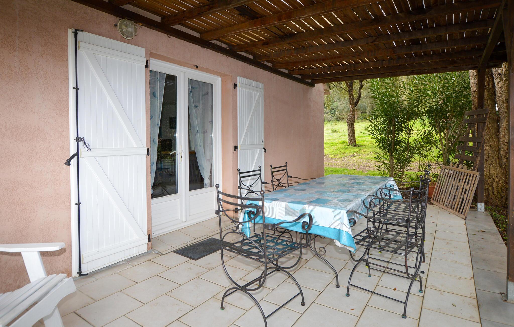 Tilbring en ubekymret pause i dette roligt beliggende hus på Korsika, kun få minutters kørsel fra Bastia Lufthavn. Det dobbelthus tilbyder masser af privatliv og er ideelt for par eller små familier. Slap af i den enkelt designede opholdsstue med praktiske møbler, en komfortabel sofa og et tv. Tilbered dagens måltider i det åbne køkken med den store arbejdsplads. Nyd udsigten over de grønne områder gennem vinduerne, eller brug den lyse spiseplads til fælles morgenmad.