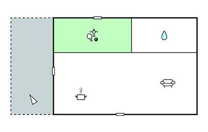 Spisestue 26m2 - 2 Sovepladser. (Sofa, madras eller lignende).