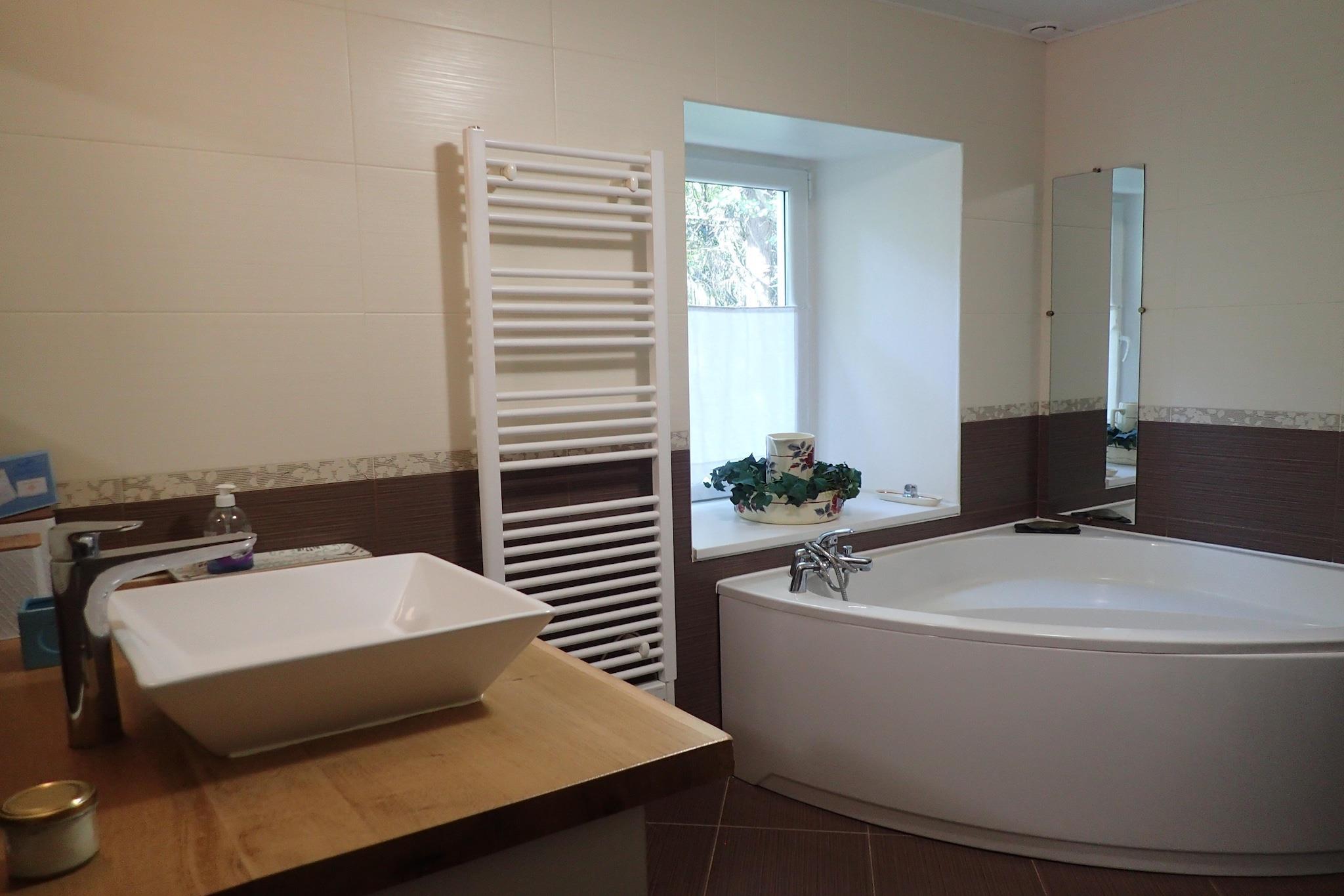 Stueetage: (Stue(Fjernsyn, spisebord, pejs), åbent køkken(kaffemaskine, ovn, mikrobølgeovn, opvaskemaskine , køle-fryseskab), badeværelse(tørretumbler, badekar eller bruser, toilet, vaskemaskine)) På 1. etage: (soveværelse(dobbeltseng(140 x 190 cm)), soveværelse(dobbeltseng(140 x 190 cm)), badeværelse(badekar med bruser, toilet)) På 2. etage: (soveværelse(dobbeltseng(140 x 190 cm))) Parkering, Bubble bath, have