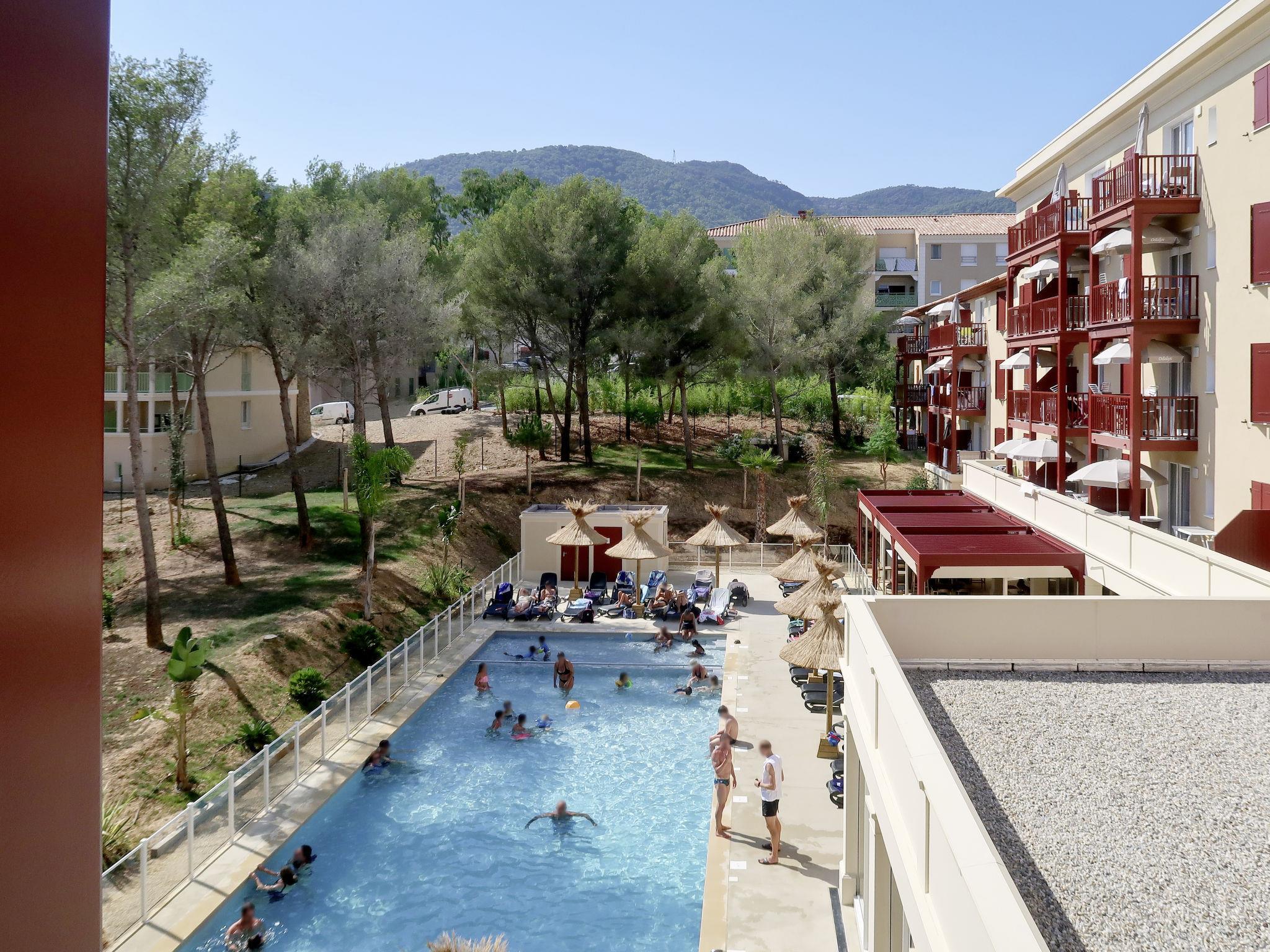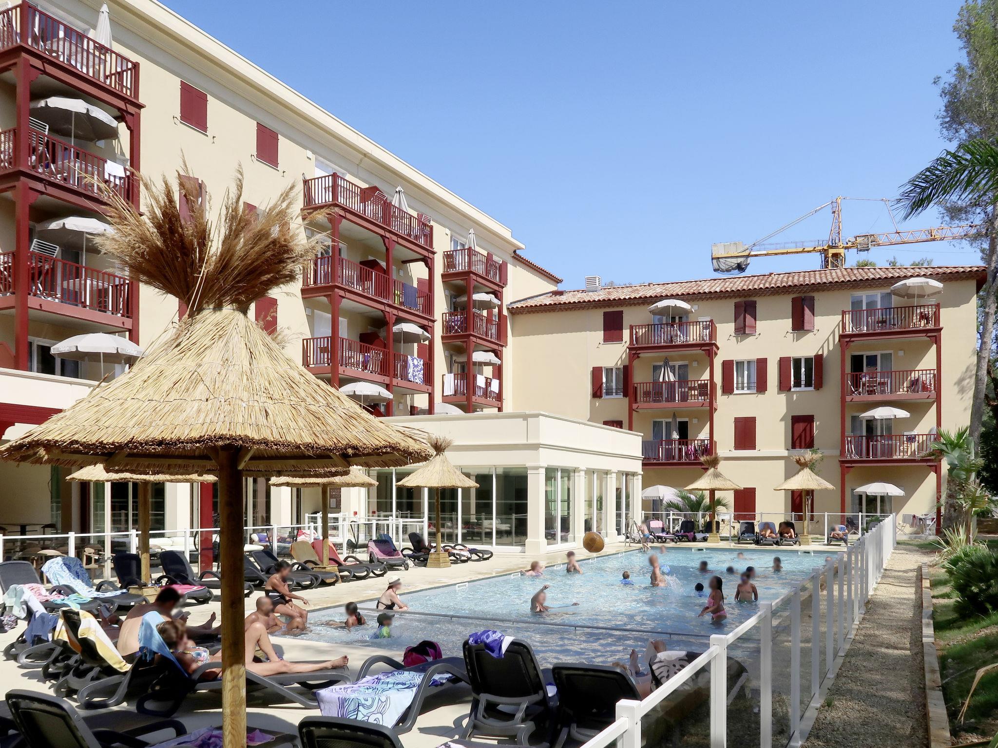 Resort "Les Canissons", built in 2019. 95 apartments in the residence. 800 m from the centre of Cavalaire, 20 km from the centre of St. Tropez, 59 km from the centre of Toulon, 700 m from the sea. For shared use: property (fenced), swimming pool heated (7 x 20 m, depth 140 cm, seasonal availability: 15.Apr. - 15.Oct.). Children's pool, outdoor shower, boccia. In the complex: reception, breakfast room, sauna, fitness room, massage (extra). Steam room, washing machine, tumble dryer (for shared use, extra). Breakfast (extra). Parking (limited number of spaces), communal covered parking. Shop 300 m, restaurant, sandy beach "Bonporteau" 700 m. Please note: residence with electric gates. The photograph shows a typical example. The holiday properties may differ in living space, floorplan, equipment and furnishing.