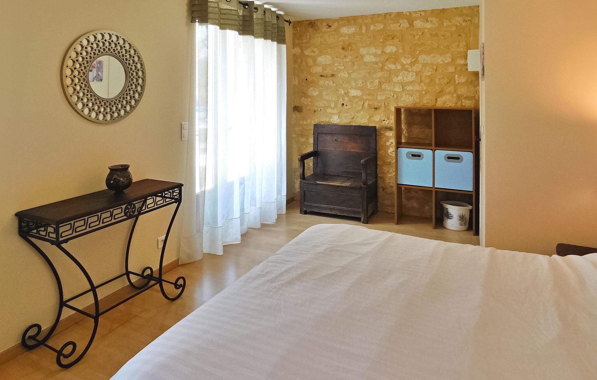 Dette karakteristiske landskab ligger mellem La Roque Gageac og Domme og er et ideelt udgangspunkt for at besøge Dordognes vigtigste turistattraktioner. Stueetagen byder på et veludstyret køkken med en central ø og et behageligt opholdsrum sammen med tre af soveværelserne, inklusive et enkeltværelse egnet til et barn. Ovenpå, tilgængelig via trætrapper, er yderligere to soveværelser, som nyder godt af aircondition, og et badeværelse. Udendørsområdet byder på græsklædte og blomstrede rum foran og bagved, en brolagt terrasse med udendørsmøbler og legeredskaber, herunder en gynge og rutsjebane. En privat opvarmet pool (10m x 5m) er en del af ejendommen, som i øjeblikket er sikret med en alarm, men som snart skal erstattes af et aftageligt låg, der giver både sikkerhed og varme, som kan åbnes helt til svømning, mens nattemperaturen opretholdes. Feriehuset er beliggende på landet, men ikke afsondret, i et fredeligt boligområde ikke langt fra byerne La Roque Gageac, Cenac og Saint-Julien, Domme.