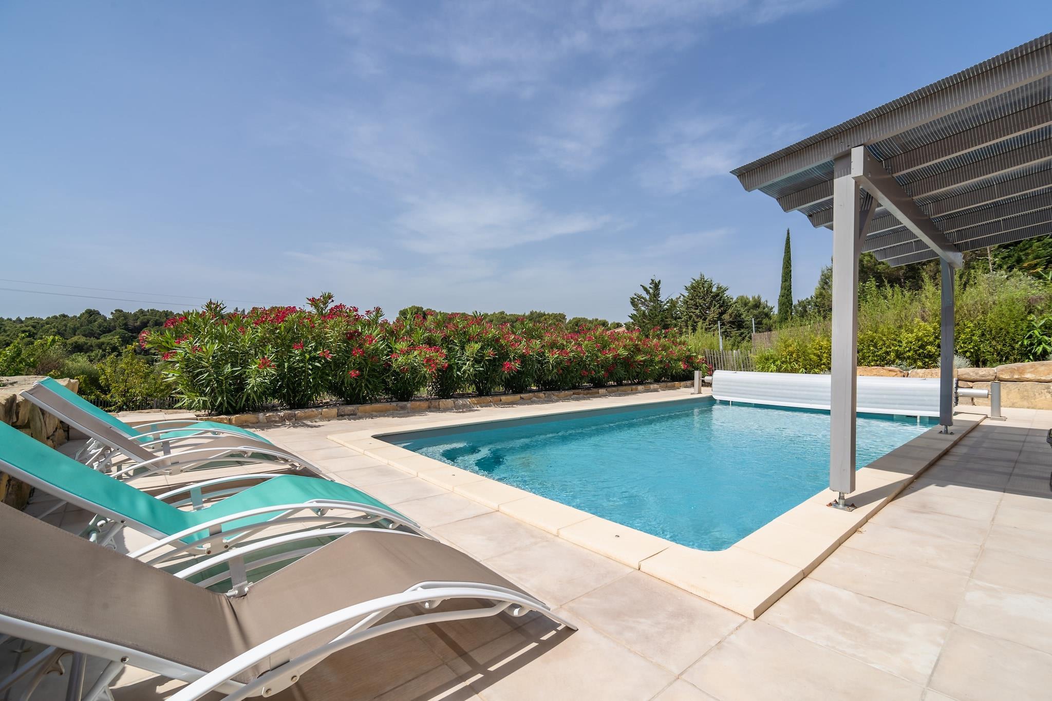 Beliggende på en indhegnet 1.800 m² stor grund tilbyder denne smukt designede 3-værelses villa fuldstændig privatliv, en privat pool og store terrasser til afslapning i Middelhavets sol. Det er smagfuldt indrettet af en indretningsarkitekt og blander moderne komfort med elegant stil. Indenfor finder du en rummelig stue, et fuldt udstyret køkken og soveværelser med aircondition til afslappende nætter. Udenfor kan du nyde en svømmetur i poolen, spise i det udendørs køkken eller slappe af med et glas vin i det skyggefulde loungeområde. Beliggende i den charmerende landsby Cesseras, er villaen en port til de naturlige og kulturelle skatte i det sydlige Frankrig. Den betagende landsby Minerve, der er opført blandt Frankrigs smukkeste, ligger kun 8,5 km væk. Udforsk kathariske slotte, vandre gennem de dramatiske Gorges de la Cesse, eller cykle naturskønne ruter i Haut Languedoc Regional Park. Sandstrandene ved Gruissan ligger kun 45 minutter væk, mens Narbonne, Béziers og middelalderbyen Carcassonne kan nås på under en time. En kort køretur til Olonzac (5 km) bringer dig til ugentlige markeder, håndværkerbutikker og indbydende restauranter, der serverer lokale vine og regionale specialiteter. I Minerve kan du nyde frokosten med panoramaudsigt over dalen, eller nyde et måltid ved floden i Homps efter en spadseretur langs Canal du Midi. Tilbage i villaen, tilbered friske råvarer på plancha-grillen og spis udendørs under stjernerne for en ægte fransk oplevelse på landet.