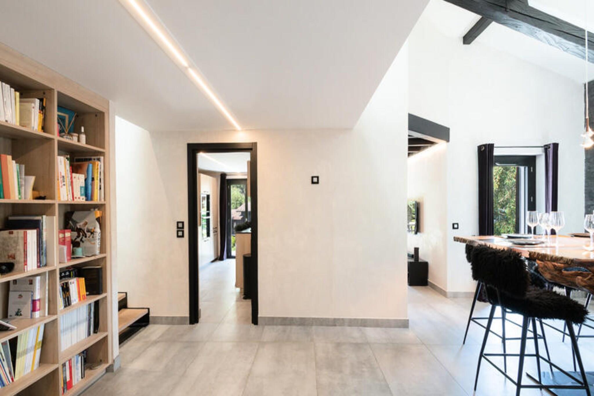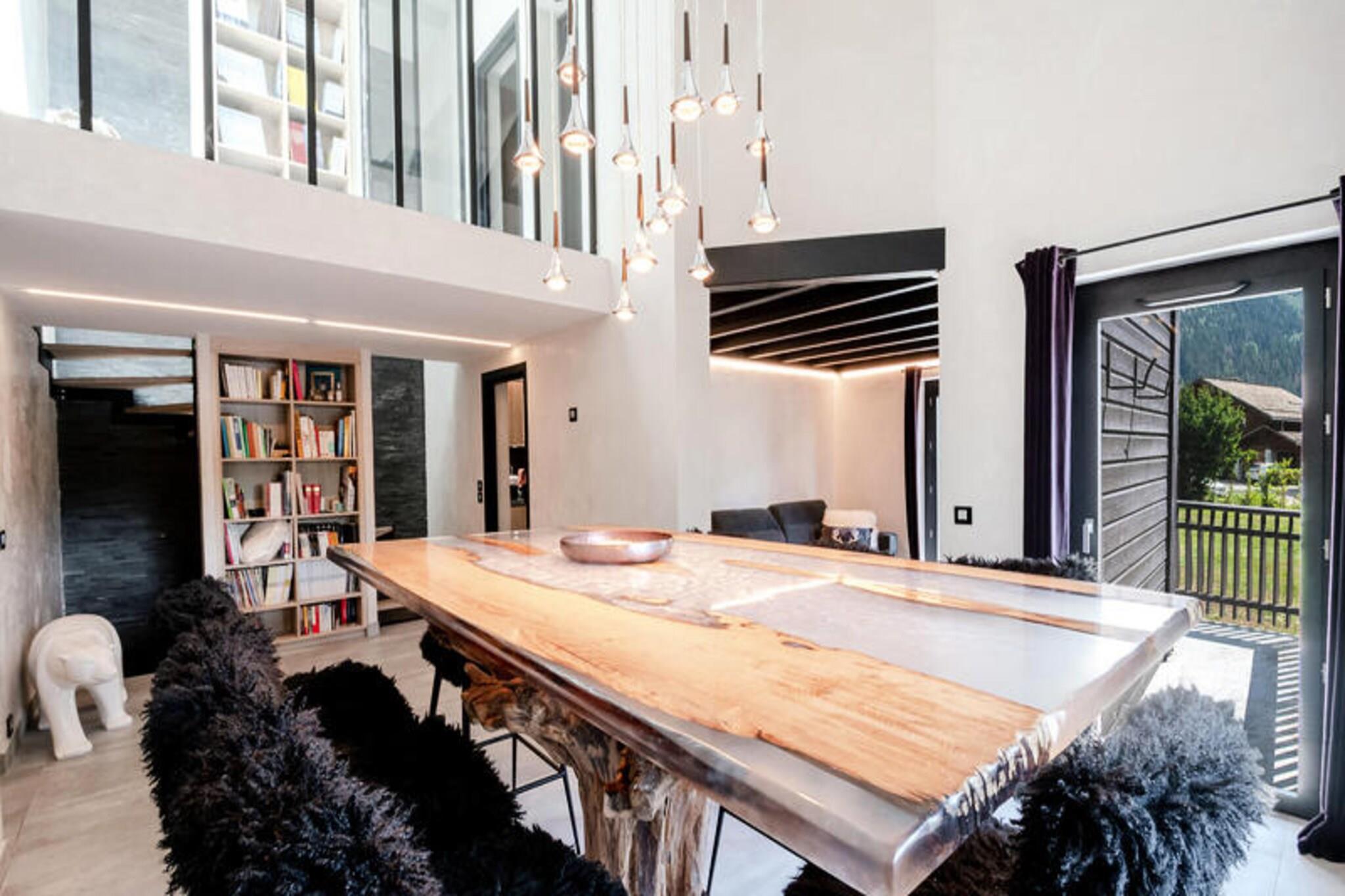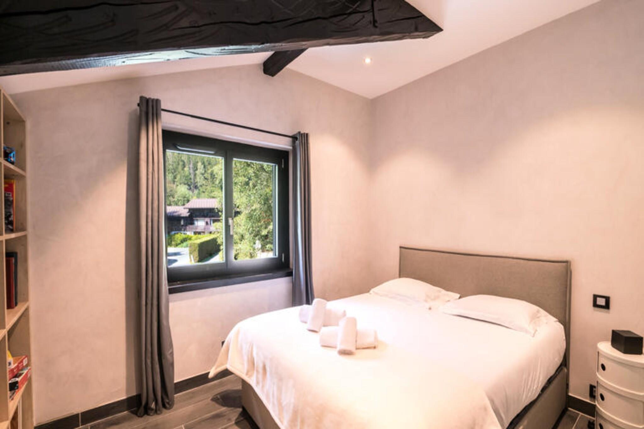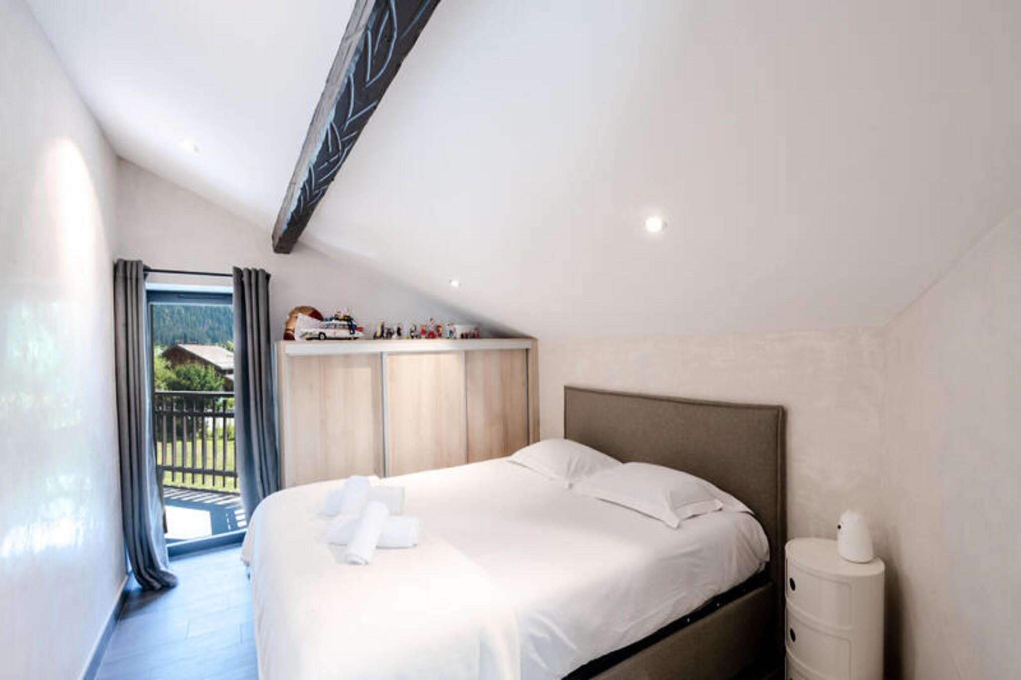 Denne dejlige halvhytte på 150 m² er perfekt til op til 8 gæster, og byder på 4 velindrettede dobbeltværelser, hver med adgang til en balkon og naturskøn udsigt over enten Aiguilles de Chamonix eller Flégère. Ejendommen er ikke-ryger, og kæledyr er ikke tilladt. Det tilbyder en rummelig stue, spiseplads og moderne bekvemmeligheder såsom WiFi, tv og et vaskerum. Med separate toiletter på forskellige niveauer er hytten designet til bekvemmelighed og komfort, hvilket gør den til et ideelt tilflugtssted for familier eller grupper. Hytten ligger i det fredelige Les Praz-område, kun 2 km fra Chamonix' pulserende bymidte, hvor du finder en række attraktioner, caféer og markeder. Flégère-svævebanen, kun 2 km væk, er perfekt til skiløbere og eventyrere. For en fantastisk udsigt og en spændende oplevelse er Aiguille du Midi-svævebanen i nærheden. Gæsterne kan nemt udforske regionen med busstoppestedet ved Les Ilettes, kun 160 m fra ejendommen, og SNCF-stationen i Les Praz kun 1 km væk, som tilbyder praktiske transportmuligheder. Hytten har et fuldt udstyret køkken, komplet med induktionskomfur, ovn, mikroovn, opvaskemaskine og kaffemaskine. Der er to badeværelser, det ene med badekar og det andet med bruser, samt separate toiletter for ekstra bekvemmelighed. Et vaskerum med vaskemaskine og tørretumbler gør længere ophold nemt. Gæsterne kan slappe af på terrassen med havemøbler eller slappe af i den private have efter en dag med udforskning. Ejendommen tilbyder også privat parkering for et problemfrit ophold.