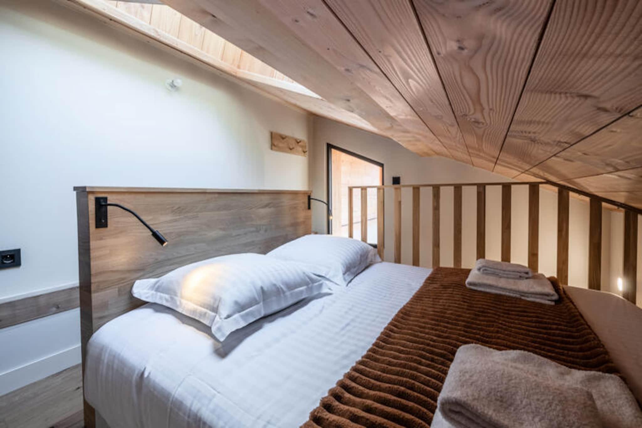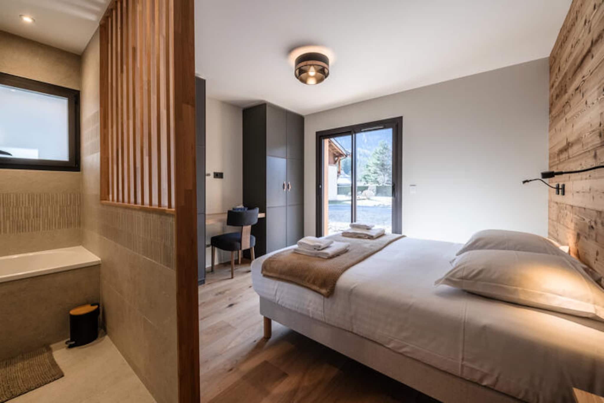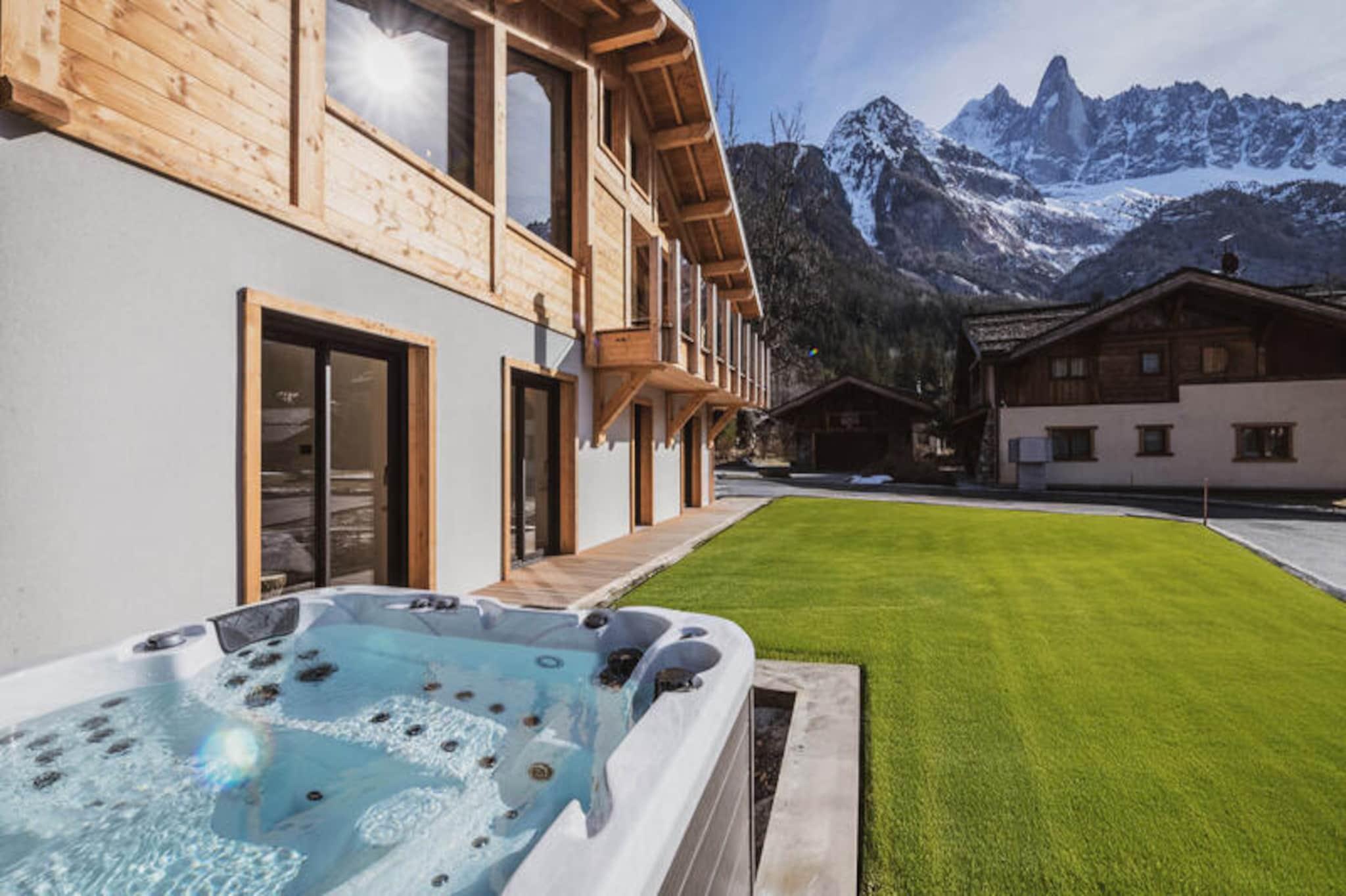 Midt i Les Tines' fredfyldte alpine skønhed tilbyder denne storslåede hytte på 150 m² et uforglemmeligt tilflugtssted for op til 10 gæster. Med en betagende udsigt over Mont Blanc-massivet og Drus-bjergene føles hvert øjeblik her som et postkort, der kommer til live. Uanset om du søger eventyr eller ro, tilbyder denne hytte de perfekte rammer for at fordybe dig i magien i de franske alper. Kun 1,8 km fra skiområdet Flégère og 4,6 km fra de livlige butikker i Chamonix kombinerer den bekvemmelighed med uovertruffen naturlig pragt. Nærliggende bus- og togstoppesteder, kun 350 meter væk, sikrer nem adgang til regionens vidundere. \n\nChaleten er designet med komfort og elegance i tankerne og strækker sig over tre etager. I stueetagen finder du tre dobbeltværelser med eget badeværelse, et familieværelse med køjesenge og en dobbeltseng samt et skirum til opbevaring af dit udstyr efter en dag på pisterne. Første sal er hjemmets hjerte med et fuldt udstyret køkken, en hyggelig stue med pejs og en spiseplads, der åbner ud til en terrasse med en fantastisk udsigt over bjergene. Mezzaninen på anden sal tilbyder et roligt kontorlokale, perfekt til dem, der søger et øjeblik med ro eller inspiration. Moderne faciliteter såsom vaskerum, vinkøleskab og Nespresso-kaffemaskine sikrer et problemfrit ophold.\n\nTræd udenfor for at opdage hyttens udendørs jacuzzi, hvor du kan slappe af under stjernerne efter en dag på ski eller vandreture. Med en dobbeltgarage, tre udendørs parkeringspladser og kæledyrsvenlig indkvartering imødekommer denne ejendom ethvert behov. De inkluderede tjenester, såsom sengetøj, badeværelsesprodukter og slutrengøring, sikrer en problemfri oplevelse, mens valgfri ekstrafunktioner som ekstra rengøring og skift af sengetøj er tilgængelige efter anmodning.\n\nUanset om du udforsker Flégères pister, vandrer i Chamonix' charmerende gader eller blot nyder panoramaudsigten, er denne hytte din indgang til den ultimative alpine flugt. Lad det majestætiske Mont Blanc-massiv være baggrunden for din uforglemmelige ferie.