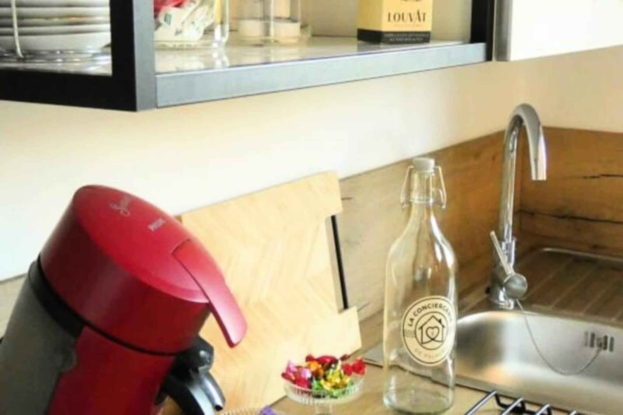Forestil dig at vågne op til den fredfyldte skønhed ved Paladru-søen, hvor turkisblåt vand møder frodige grønne omgivelser. L'Escapade du Lac, der ligger i hjertet af landsbyen Charavines, tilbyder et fredfyldt tilflugtssted for dem, der søger en blanding af natur, historie og afslapning. Denne charmerende pied-à-terre ligger kun få skridt fra en privat strand, der deles med medejerne, og tilbyder en eksklusiv oplevelse ved søen langt væk fra folkemængderne. På den anden side af søen inviterer det arkæologiske sted fra år 1000, hvor bondeknægtene boede, dig til at dykke ned i historien, og det fascinerende Paladru Lake Museum ligger kun en kort gåtur derfra. Den nyrenoverede lejlighed på 29 m² er omhyggeligt designet med henblik på komfort og bekvemmelighed. Hovedrummet kombinerer en hyggelig stue, spiseplads og et fuldt udstyret åbent køkken med induktionskomfur, ovn, mikroovn, køleskab med fryser og endda en Senseo-kaffemaskine. Træd ud på din private terrasse, en skjult perle, der er perfekt til at nyde en aperitif i det fri. Soveværelset har en komfortabel dobbeltseng og rigelig opbevaringsplads, mens det moderne badeværelse fuldender rummet. Vendbar aircondition sikrer et behageligt ophold året rundt, så du kan holde dig kølig om sommeren og varm om vinteren. Charavines er et centrum for aktiviteter med søndagsmarkeder, restauranter ved søen og butikker kun en kort gåtur væk. Lej en cykel for at udforske de naturskønne cykelstier eller begiv dig ud på vandre- og mountainbikestier, der starter fra landsbyen. Vandaktiviteter som sejlads, paddleboarding og fiskeri venter ved søen, mens nærliggende attraktioner inkluderer Chartreuse Cellars i Voiron, trætop-eventyrparker og den familievenlige forlystelsespark Walibi. Om vinteren ligger skisportsstederne kun en times kørsel væk, hvilket gør dette til et perfekt rejsemål året rundt. Uanset om du er her for at slappe af ved vandet, udforske den rige historie eller nyde udendørs eventyr, lover L'Escapade du Lac en mindeværdig ferie i hjertet af det franske landskab.