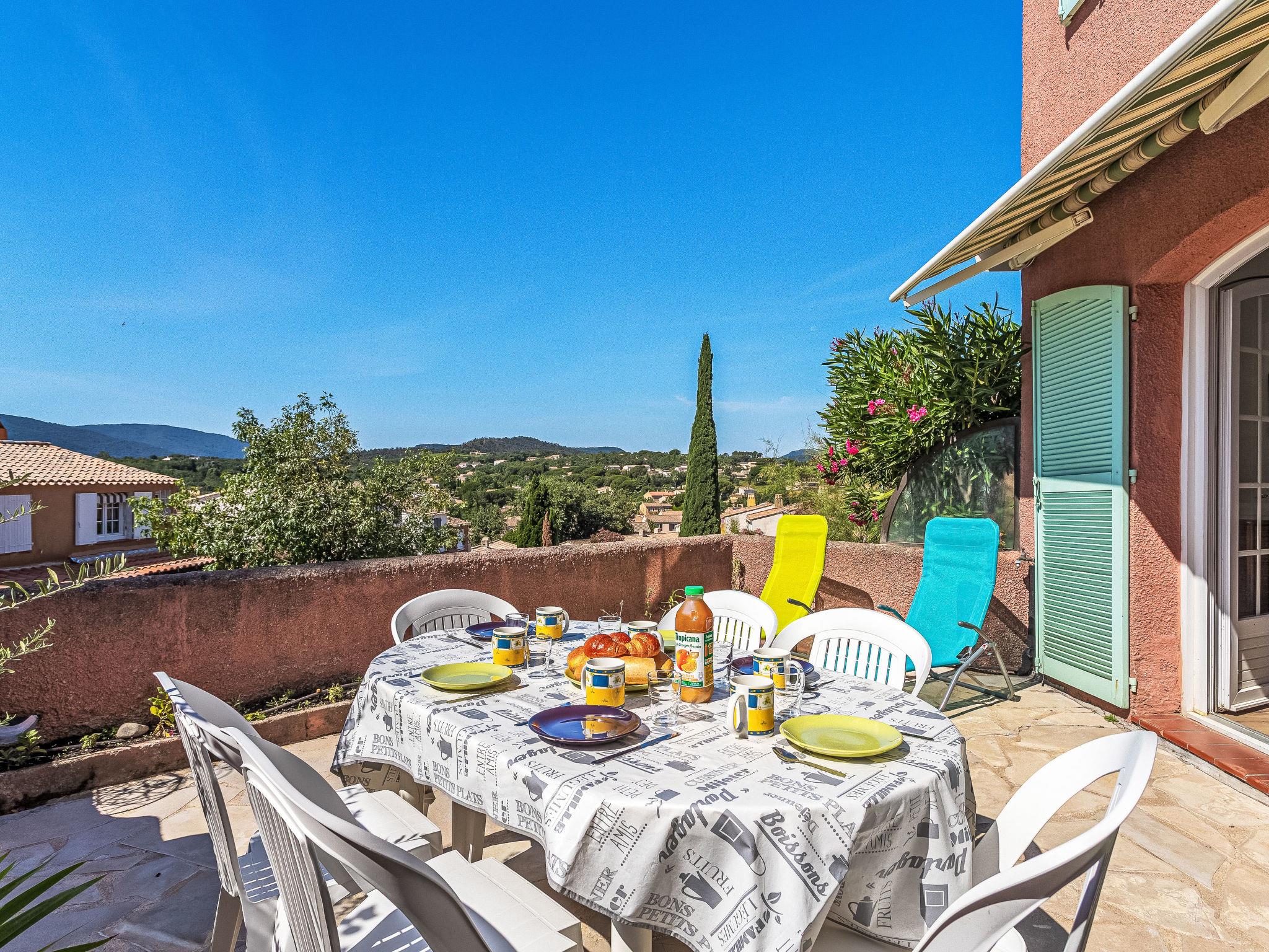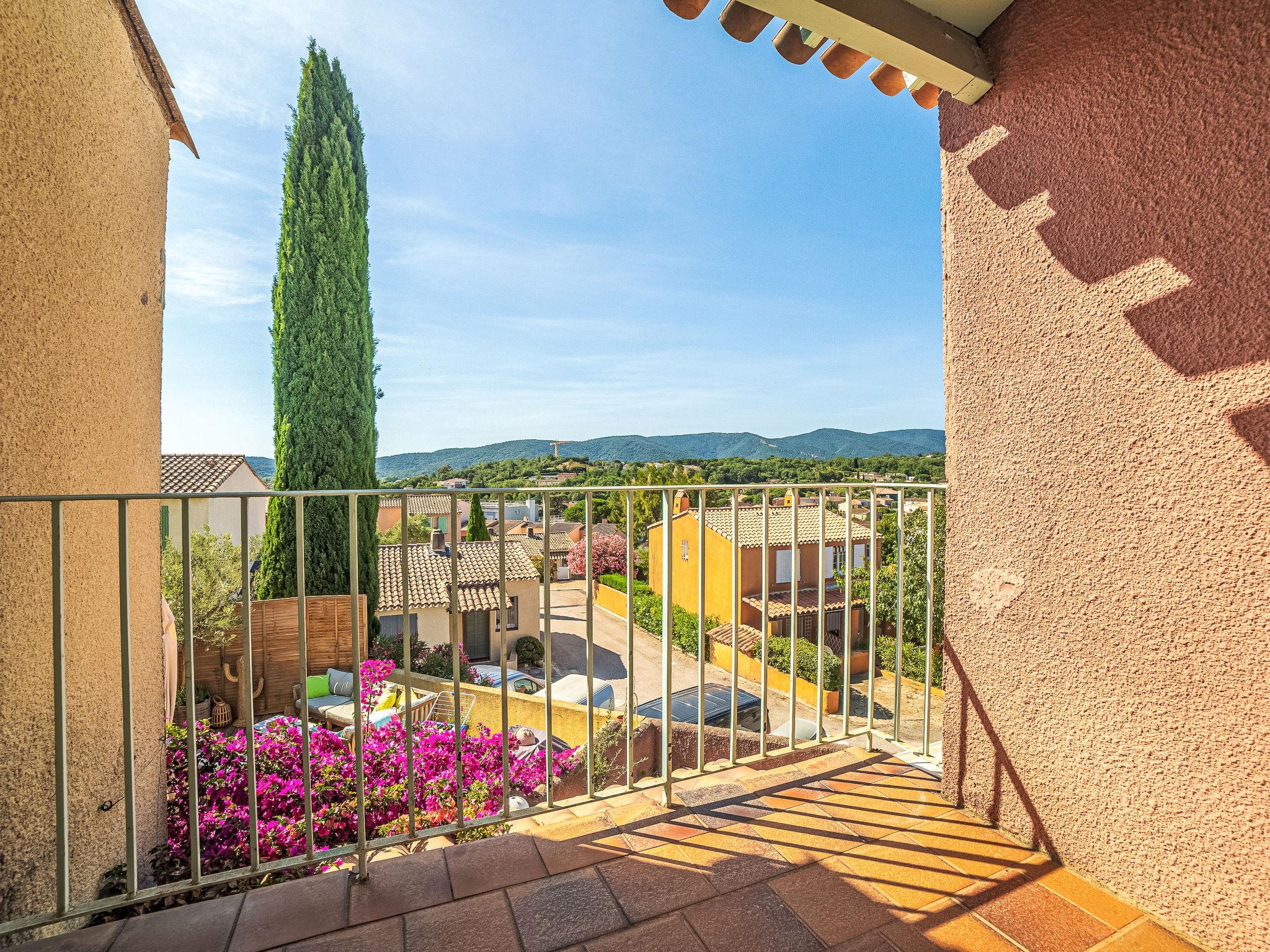 "Les Mas de Cogolin 3", 4-room terraced house 66 m2 on 2 levels. Partly renovated in 2024, cosy furnishings: living/dining room with TV (flat screen). Exit to the terrace. Open kitchen (oven, dishwasher, 3 induction hot plates, toaster, kettle, microwave, freezer, electric coffee machine, Capsules for coffee machine (Senseo) extra). Shower/WC. Upper floor: 1 room with 1 french bed (140 cm, length 190 cm). Exit to the balcony. 2 rooms, each room with 1 french bed (140 cm, length 190 cm). Shower/WC. Air-conditioning. Small balcony 3 m2, south-east facing position, terrace 15 m2 partly roofed, south-east facing position. Terrace furniture, electric barbecue. View of the countryside. Facilities: washing machine. Parking space n 4. Please note: non-smoking house. 1 small pet/ dog allowed. Smoke alarm. Offer by a private individual according to Art. 155, IV of CGI.