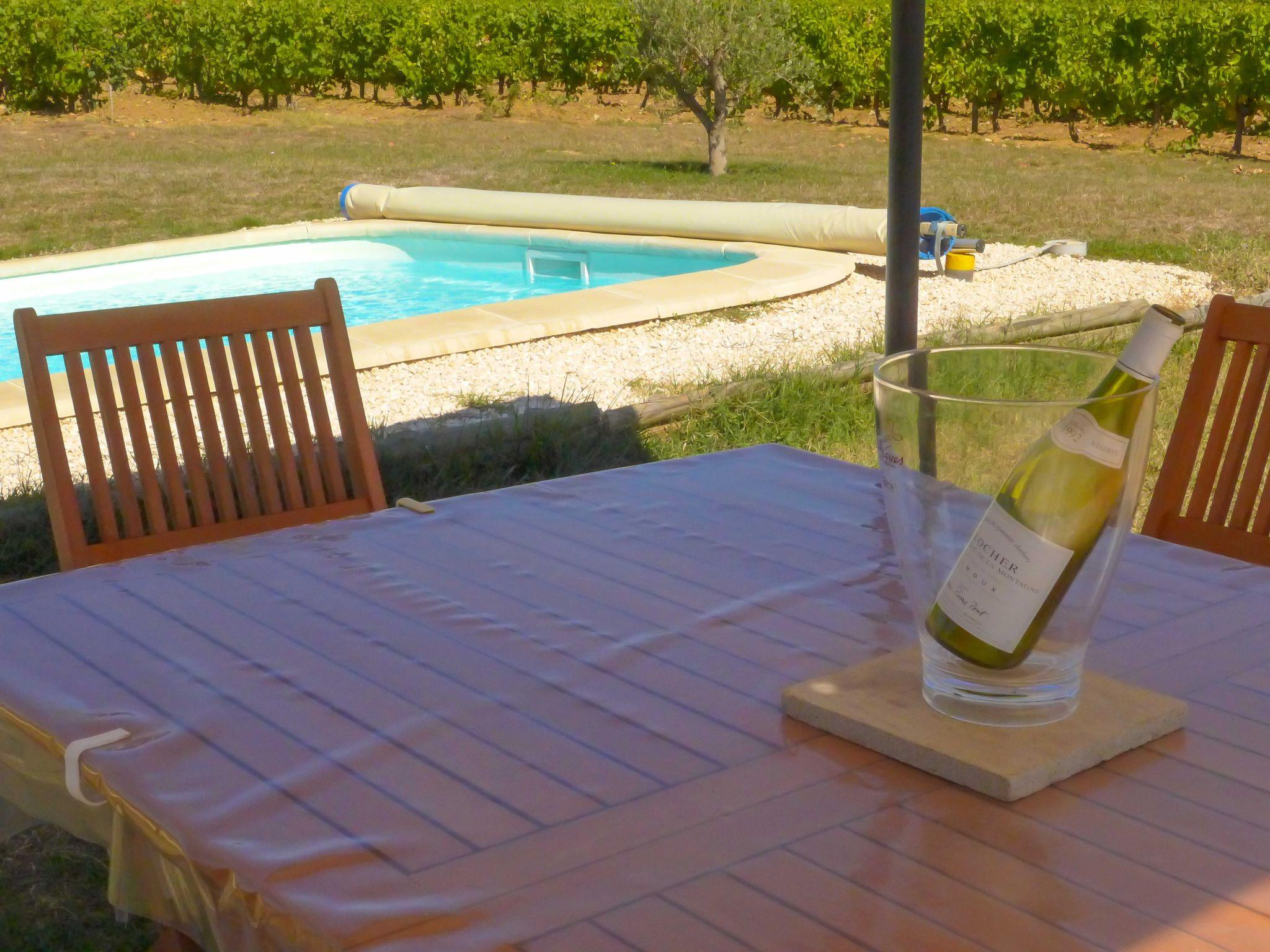 The 100 m² gîte sleeps 6 comfortably and has its own private swimming pool. It adjoins an unused cellar and is set in an estate of over 5 hectares. There is a private area of around 1000 m² at the rear of the gîte and around the private swimming pool. This 7.30 m x 3.50 m pool is set in the vines and is secured by an alarm. The private swimming pool measures 7.30m x 3.50m with a depth of between 1.10m and 1.60m and is protected by an alarm.