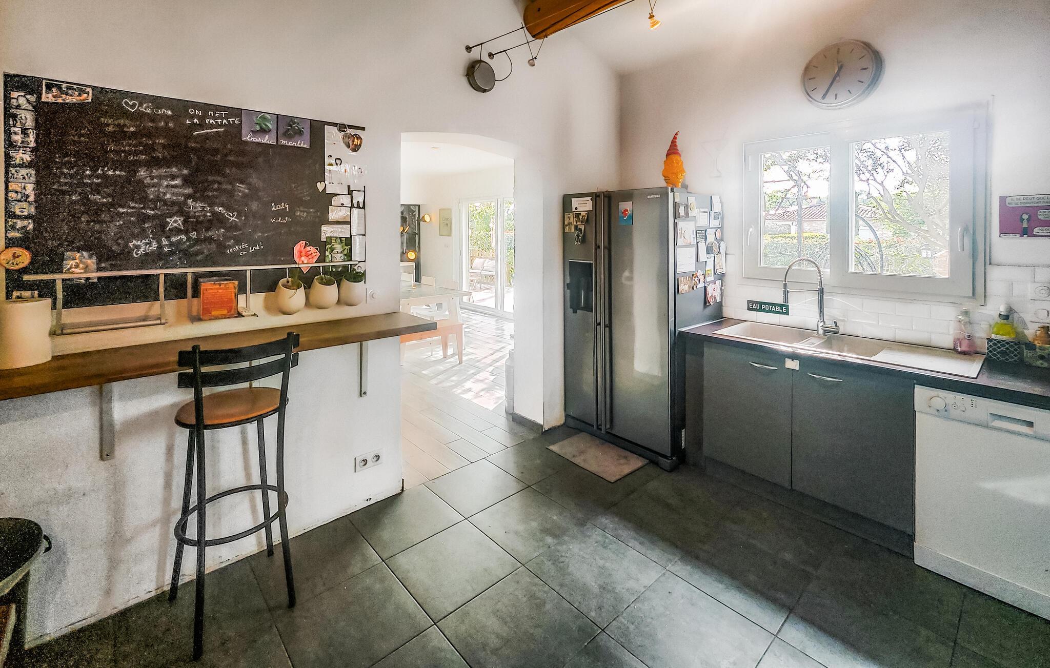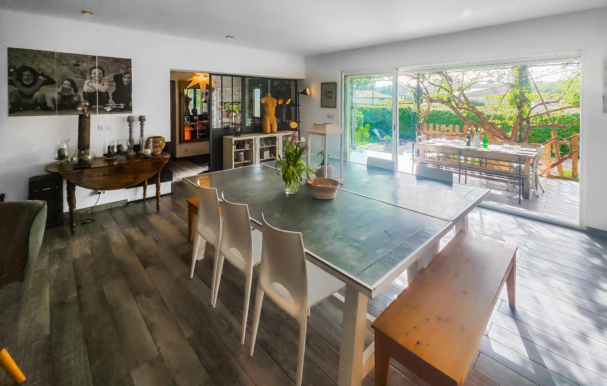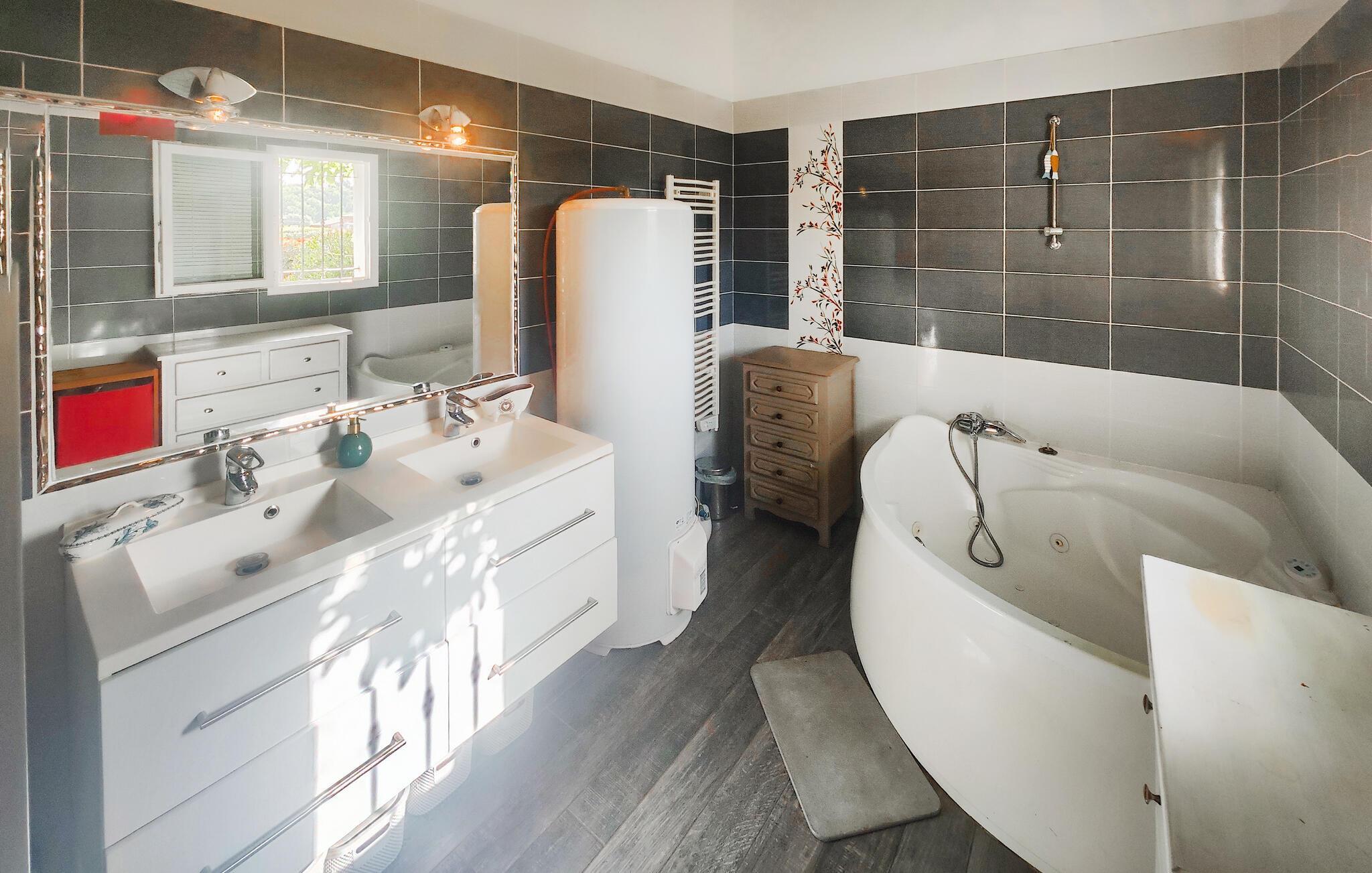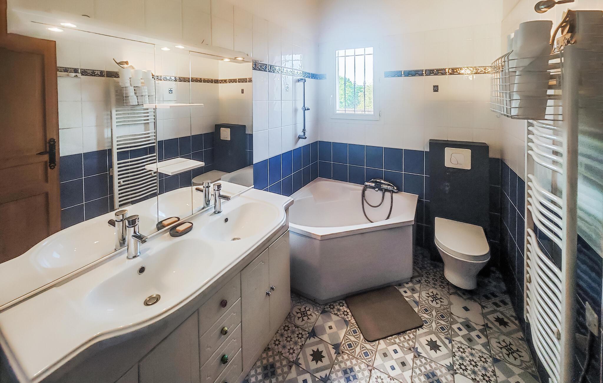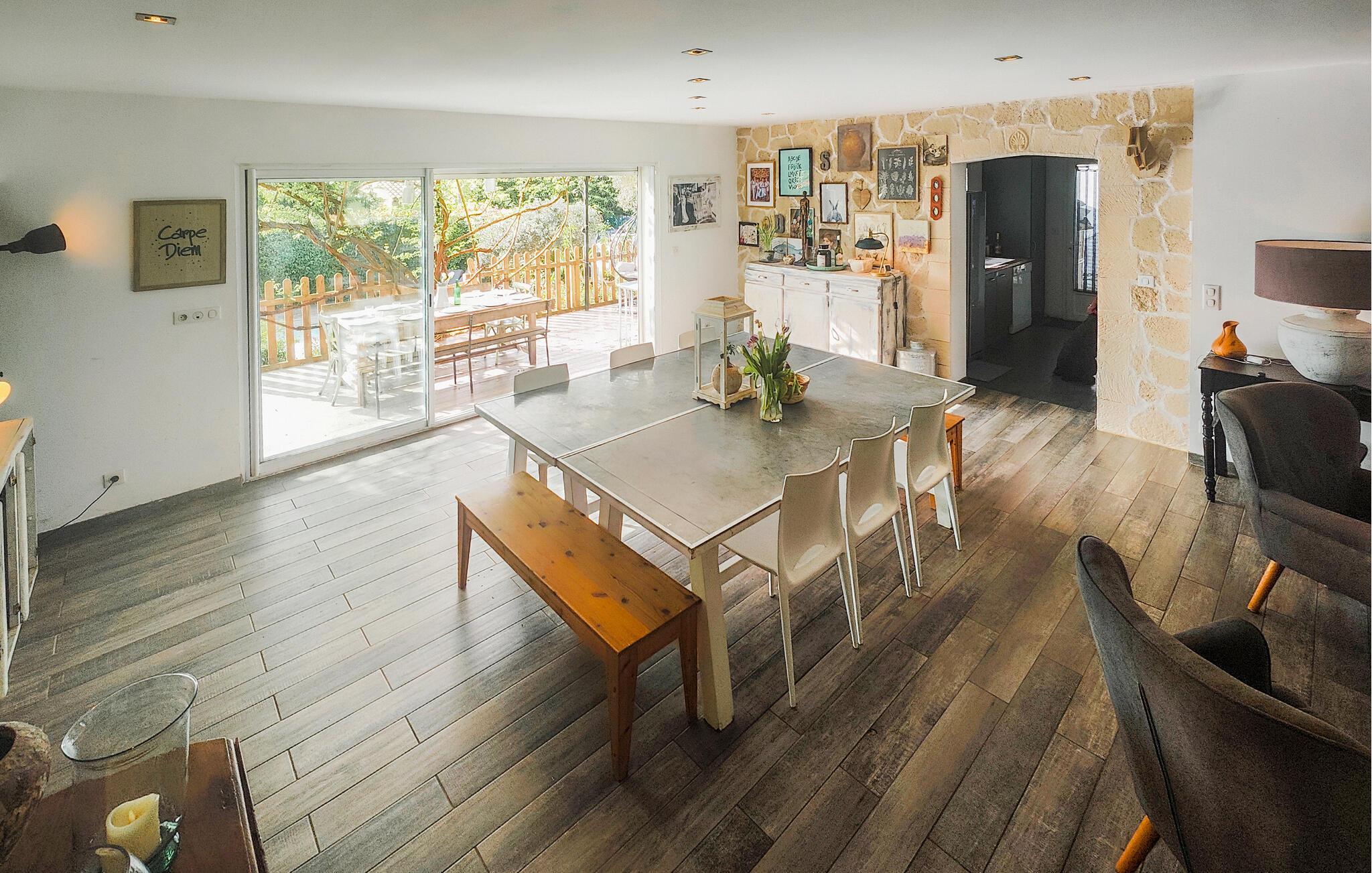 Dette feriehus med middelhavscharme tilbyder masser af plads til familien eller venner. Lad jer betage af de smukke møbler og den fredfyldte beliggenhed. Den lyse opholds- og spisestue med store glasflader tilbyder direkte adgang til terrassen. Nyd måltider sammen ved det lange spisebord, slap af i det hyggelige siddeområde eller tilbered lækre retter i det praktiske køkken med køkkenbordplade. Interiøret kombinerer smart moderne design med rustikke accenter og skaber en indbydende atmosfære.