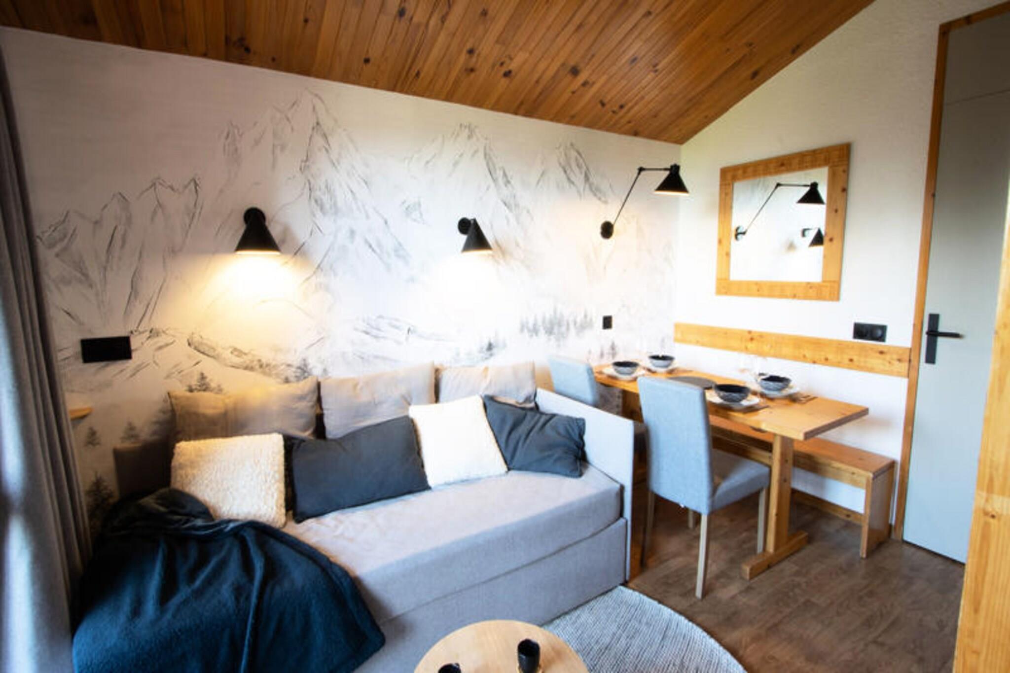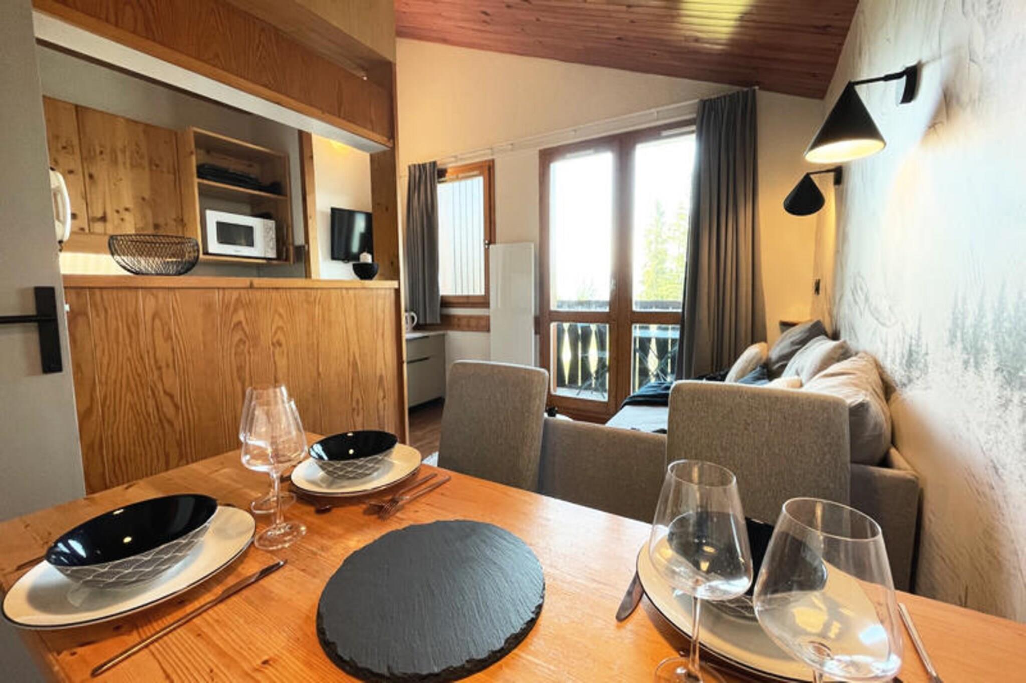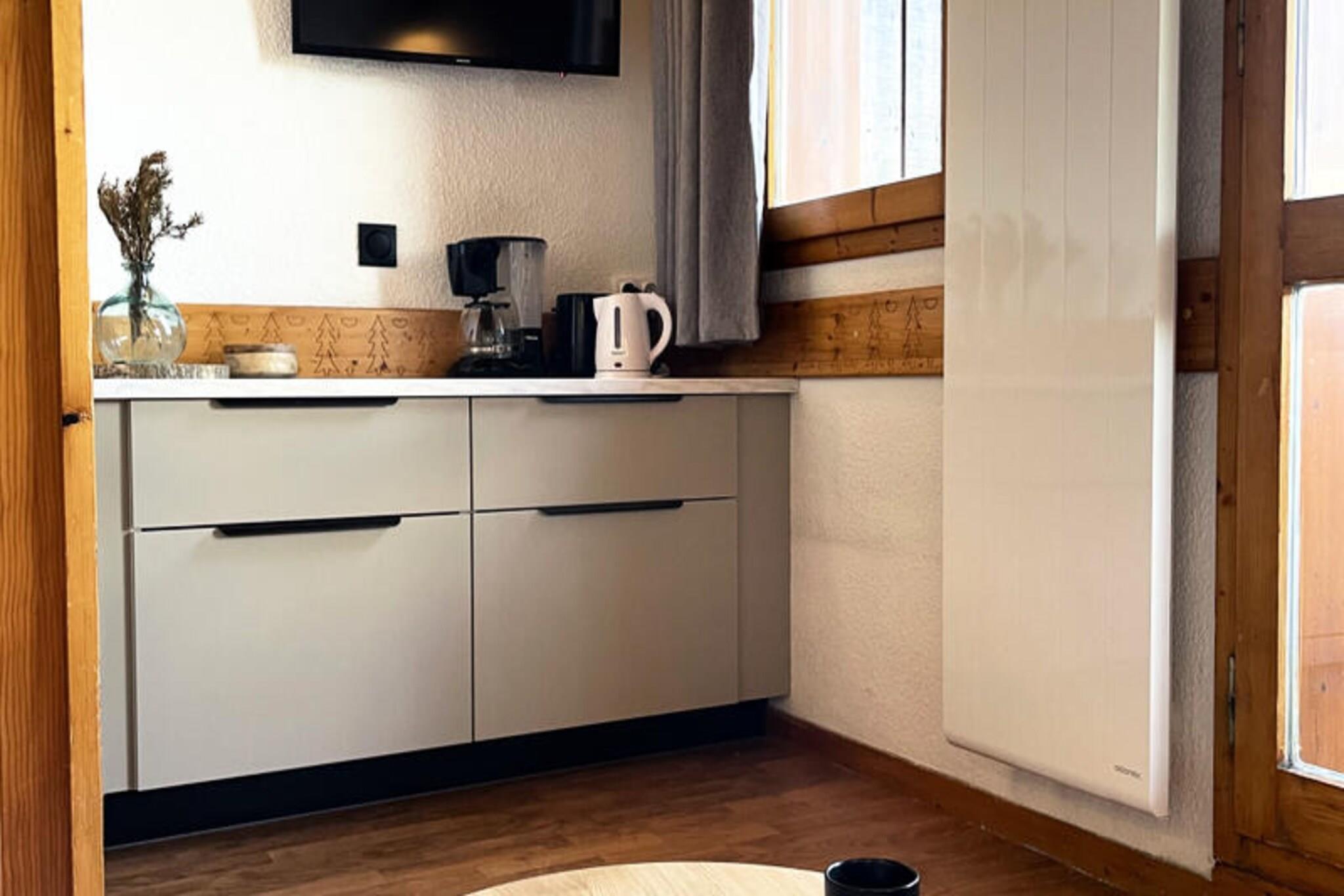 Su alquiler de vacaciones se encuentra en la Résidence Les Brigues. Situado en Courchevel 1550, se compone de dos chalets comunicados, cuya arquitectura se integra perfectamente en el paisaje circundante. En invierno, la Residencia ofrece salida directa a las pistas de esquí, con una pista roja accesible desde la Residencia en conexión directa con el dominio esquiable de los 3 Vallées. También puedes incorporarte a una pendiente fácil que te llevará al frente de nieve y a la Escuela de Esquí (2 minutos andando). Se puede acceder al centro acuático y de bienestar Aquamotion a pie o en autobús. Se puede acceder directamente a la pista de trineo y a Courchevel 1850 mediante teleférico. En verano, tendrá la oportunidad de descubrir muchos lugares excepcionales: el Vallon des Avals, el lago Rosière, el Petit Mont Blanc, la ruta ciclista Col de la Loze. Numerosos eventos y fiestas tradicionales se suceden y marcan la vida del Valle, como el Festival Madlon o el Festival Tovets, los concursos de saltos de esquí o de patinaje. La Residencia es accesible a todos los viajeros; Quienes no dispongan de vehículo pueden tomar un autobús desde Moutiers (a unos 30 km), donde se encuentra la estación de TGV más cercana. Su alquiler vacacional incluye: 1 salón, 1 zona de cabaña, 1 cocina, 1 dormitorio, 1 baño, 1 aseo independiente, balcón. Ubicación: 5to piso Composición del salón: 1 sofá cama (2 personas). 1 área de cabina: 2 literas individuales. Comedor: 1 mesa con 1 banco, 3 sillas y 1 taburete. Cocina abierta al salón. Composición de las habitaciones: Dormitorio 1: 2 camas individuales, espacio de almacenamiento. Composición de los baños: Baño 1: bañera 1 aseo independiente. Se admiten mascotas - Cargo adicional - consultar tarifas en recepción. Dependiendo de su alojamiento, es posible que no se admitan animales. Ropa de cama - Además, bajo petición (paquete de ropa de cama a reservar) hasta el 30/09/24 Ropa de baño - Bajo petición, con cargo adicional Limpieza de final de estancia - Servicio de limpieza obligatorio a pagar al realizar el check-in. Limpieza diaria - Disponible con coste adicional, consultar tarifas en recepción. Tasa turística (cargo adicional) - A pagar desde tu área de cliente, el importe varía según la ubicación. Gratis para menores de 18 años. Televisión - Dependiendo de tu alojamiento Depósito (en euros) - 500