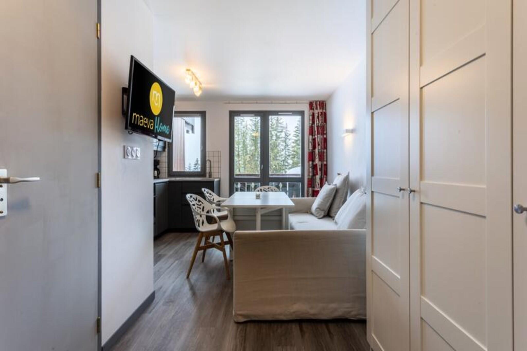 Denne hyggelige lejlighed i chalet-stil i Courchevel 1550 tilbyder komfortabel indkvartering for op til 6 personer. Det har en stue med en sovesofa til to, et soveværelse med en dobbeltseng og et kabineområde med køjesenge til to. Et separat toilet og badeværelse med badekar giver bekvemmelighed for alle gæster. Lejligheden har også balkon og er kæledyrsvenlig mod et tillægsgebyr. Sengelinned og håndklæder er tilgængelige efter anmodning og mod et ekstra gebyr, og slutrengøring er obligatorisk. Daglig rengøring kan arrangeres mod et tillægsgebyr. Ejendommen er ideelt beliggende til vinter- og sommeraktiviteter. Om vinteren kan gæsterne nyde ski-in/ski-out-adgang til 3 Vallées-skiområdet, med direkte forbindelse til en rød pist. Skiskoler og lette pister er kun en kort gåtur væk. Om sommeren byder regionen på betagende natursteder som Vallon des Avals, Rosière-søen og Petit Mont Blanc. Begivenheder såsom Madlon-festivalen og skihopkonkurrencer er også i nærheden, som giver underholdning året rundt. Lejligheden har et åbent køkken, udstyret til at tilberede måltider, og en spiseplads med plads til 6. Den hyggelige opholdsstue er ideel til at slappe af efter en dag med aktiviteter. Gæster har også adgang til nærliggende attraktioner såsom Aquamotion-vandcentret, og der er shuttleservice til rådighed fra Moutiers for dem uden køretøj.