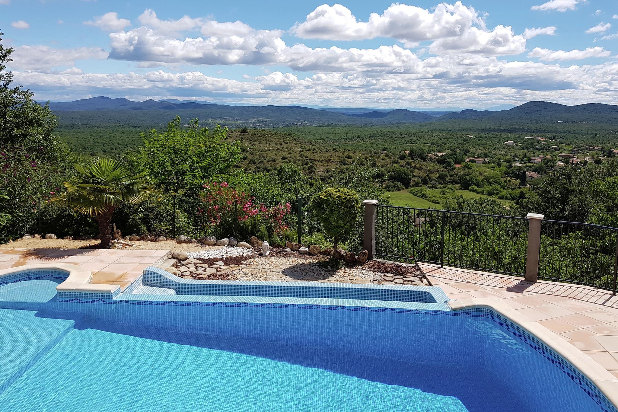 Gemt væk i de frodige skove nær Courry, tilbyder dette charmerende feriehus en flot udsigt over grønne bakker og landsbyen nedenfor. Beliggende på rummelig privat grund med adgang via en skrånende indkørsel, det er et ideelt tilflugtssted for familier eller venner, der søger fred og natur. Den store balkon og terrasse inviterer dig til at nyde solen, mens den private swimmingpool - opvarmet efter anmodning - tilføjer et strejf af luksus til dit ophold. Beliggende kun 1,5 km fra Courry og tæt på byer som Alès, Aubenas og middelalderlige Saint-Ambroix, er hjemmet perfekt placeret til at udforske Cevennerne og Ardèche-regionerne. Oplev naturskønne køreture langs Corniche des Cévennes eller nyd kanosejlads, vandreture og svømning i Gorges-de-l'Ardèche. Gå ikke glip af den magiske underjordiske tur i La Cocalière-grotten, komplet med krystalformationer og en togtur tilbage til overfladen. Ejendommen har en skrånende have, grill og rigelig udendørs plads til afslappende sommeraftener. Elforbruget inkluderer 150 kWh om ugen, med et ekstra forbrug på EURO 0,25/kWh. Bemærk venligst: opladning af el- eller hybridbiler er ikke tilladt på grund af begrænset kapacitet. Dette prisvindende hjem lover en mindeværdig flugt i det sydlige Frankrig.