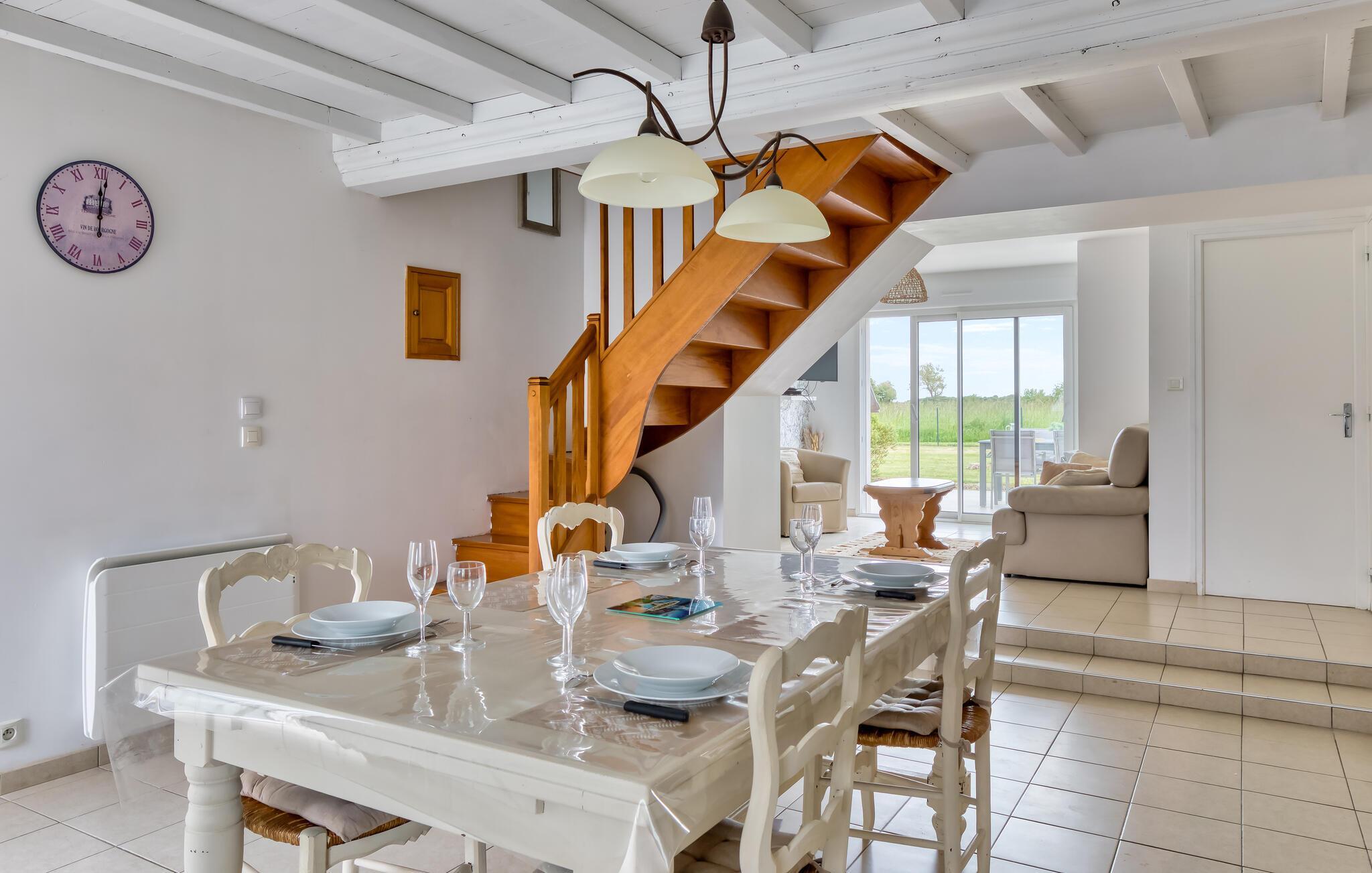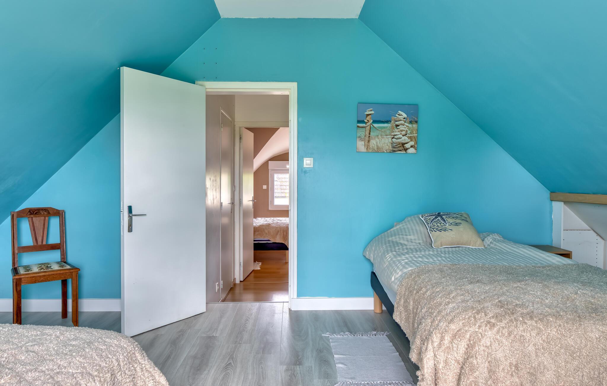 Dette lyse og rolige feriehus byder jer velkommen ikke langt fra de fine sandstrande på Cotentin-halvøen og tilbyder jer et hyggeligt hjem væk fra hjemmet, mens I udforsker seværdighederne i Normandiet. Server jer selv regionale specialiteter ved det stilfulde spisebord, og læn jer tilbage med en god bog i den hyggelige stue efter en begivenhedsrig dag.