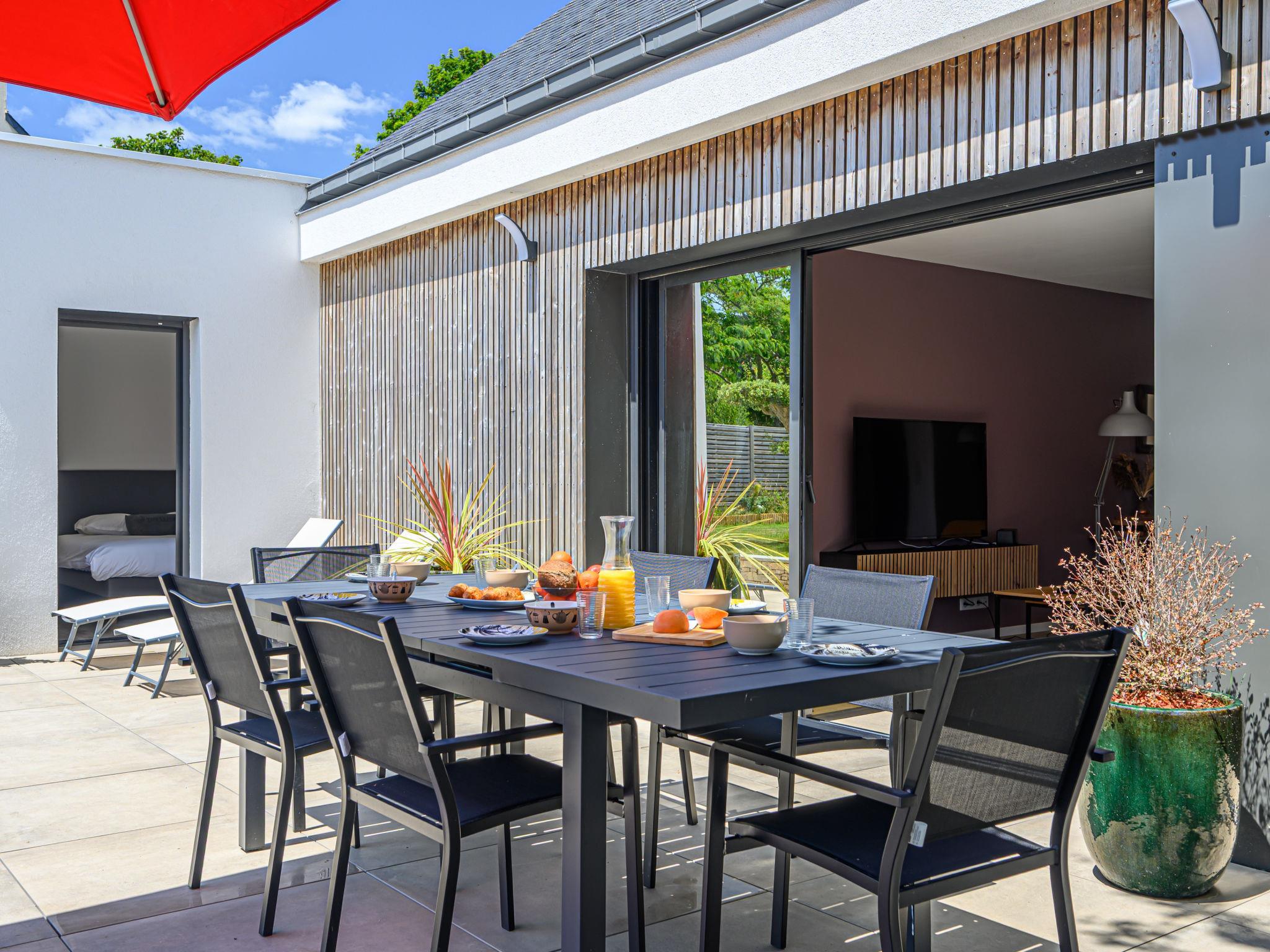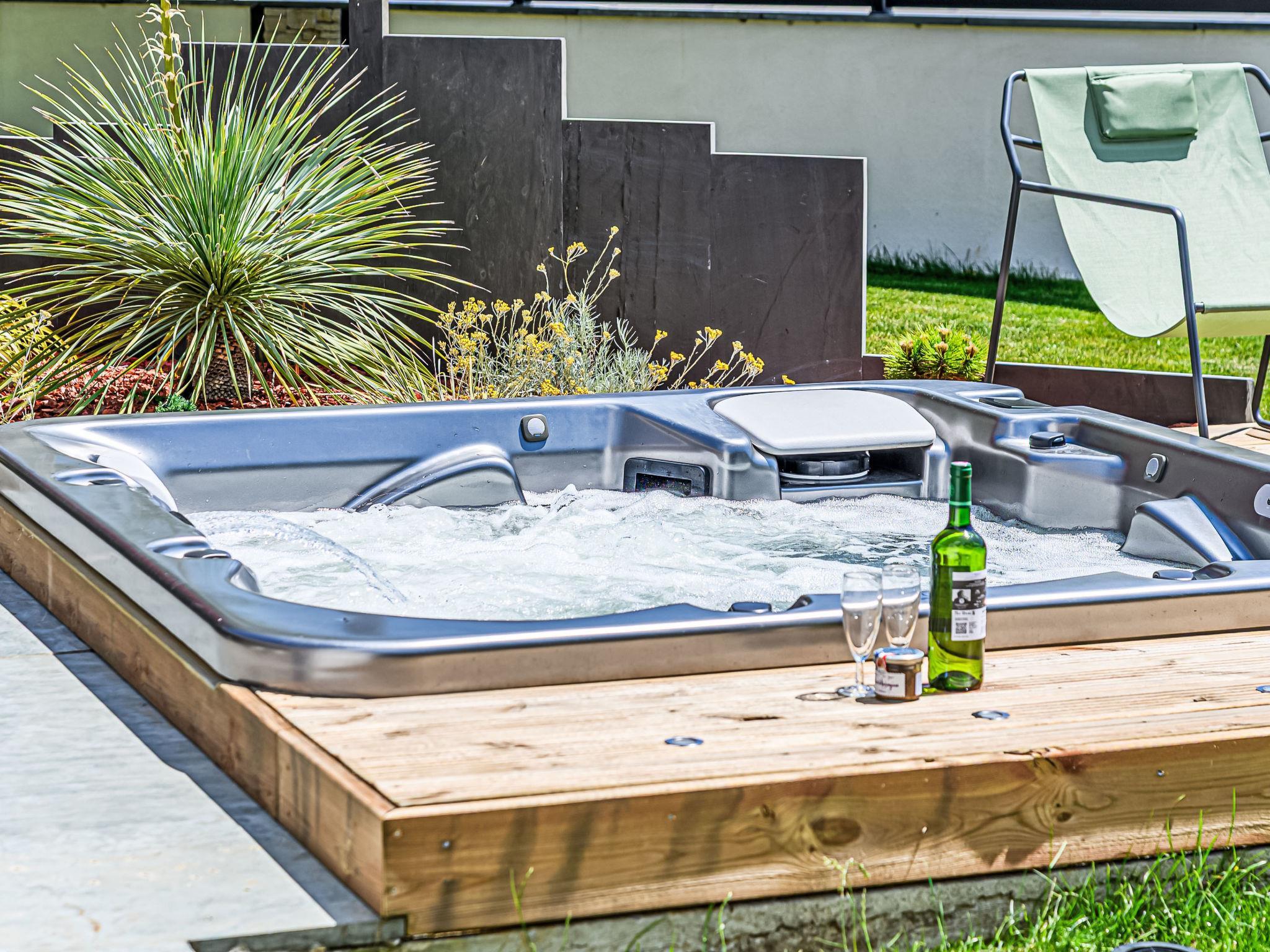 Crac'h 9 km from Carnac: Beautiful house "Villa du Fort Espagnol", built in 2024. In the centre of Crac'h, 3 km from the sea, 6 km from the beach. Private: hot tub, parking. Supermarket 4 km, restaurant 500 m, bar 300 m, bakery 500 m, café 300 m, bus stop "Centre de Crac'h" 400 m, sandy beach "Plage de Saint-Phillibert" 6 km, outdoor swimming pool 10 km. Tennis 6 km. Nearby attractions: Grande plage de Carnac 10 km, La Trinité sur Mer 6 km, Auray et le Port de St Goustan 10 km, Quiberon 28 km, Belle Ile en Mer, Les iles du Golfe du Morbihan.
