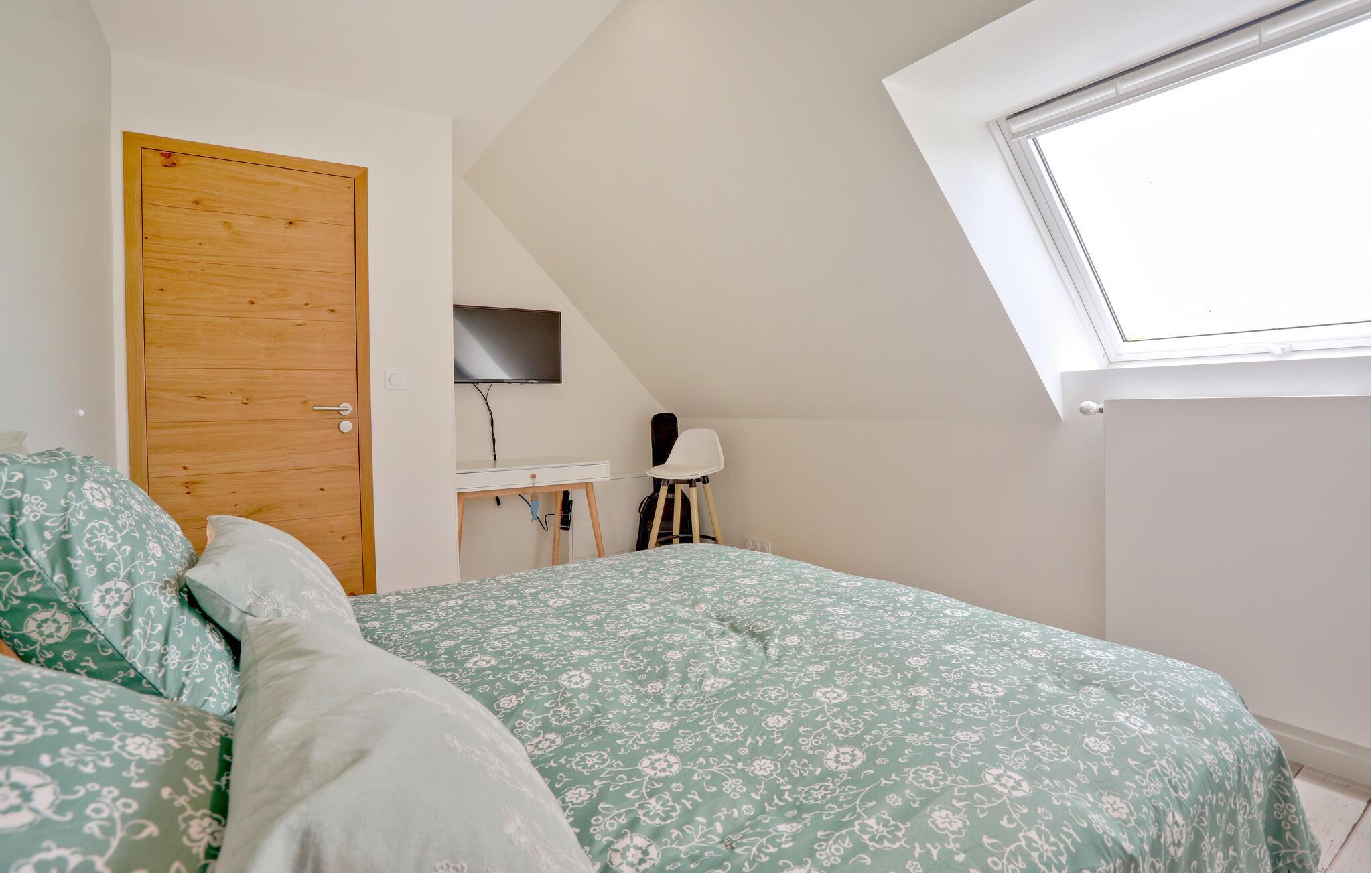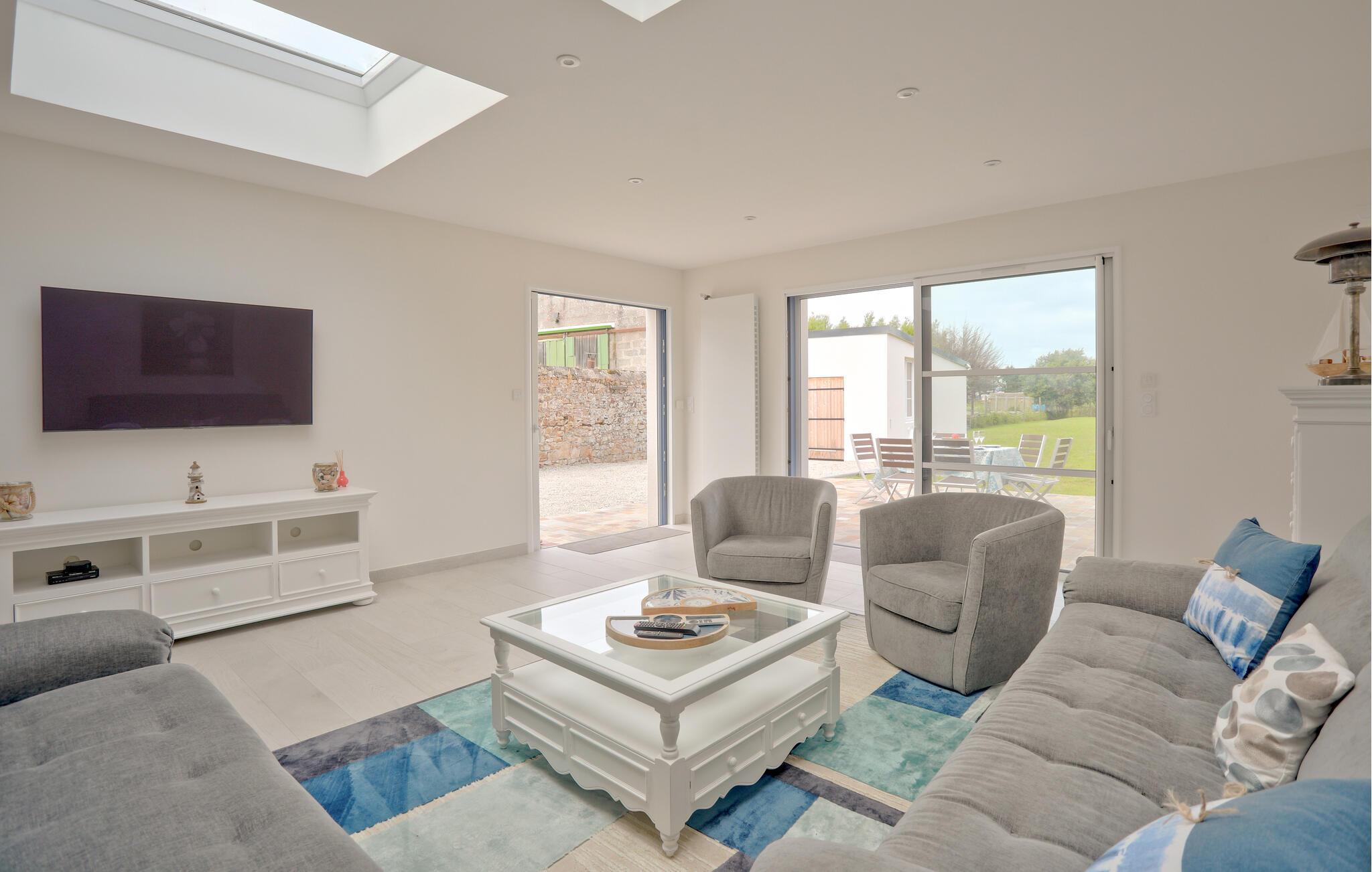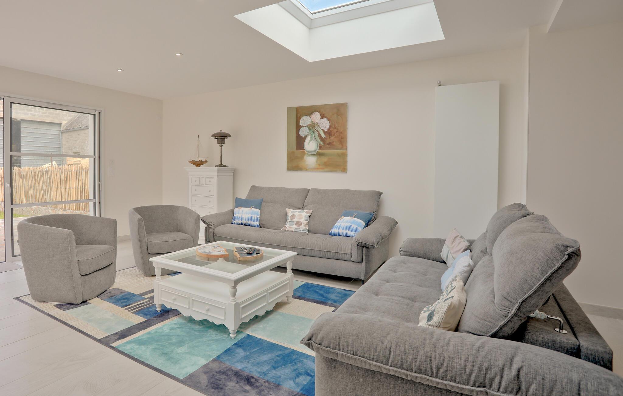 Nyd en uforglemmelig ferie i dette komfortable feriehus med en stor have, ikke langt fra smukke strande. Dette omhyggeligt restaurerede stenhus fra det 19. århundrede kan prale af et lyst og rummeligt interiør og en hyggelig atmosfære. Skab kulinariske lækkerier sammen, glæd jer til lange måltider ved det stilfulde spisebord, og sæt jer til rette i de komfortable sofaer efter en lang dag. Start dagen med en morgenmad under åben himmel på den indbydende terrasse. Lad jeres børn løbe rundt på den rummelige græsplæne i den beskyttede have og nyde stemningsfulde grillfester med vin og stearinlys. Cykl til stranden langs den sikre cykelsti eller udforsk de nærliggende butikker. Vandr gennem Cotentin-halvøens natur og fordyb jer i D-dagens historie i Utah Beach eller Sainte-Mère-Église. Besøg Cherbourg med dens kunstige havn og Cité de la Mer, eller Granville med dens kasino og Maison Dior. Nyd vandsport, og gå ikke glip af den imponerende Mont Saint-Michel.
