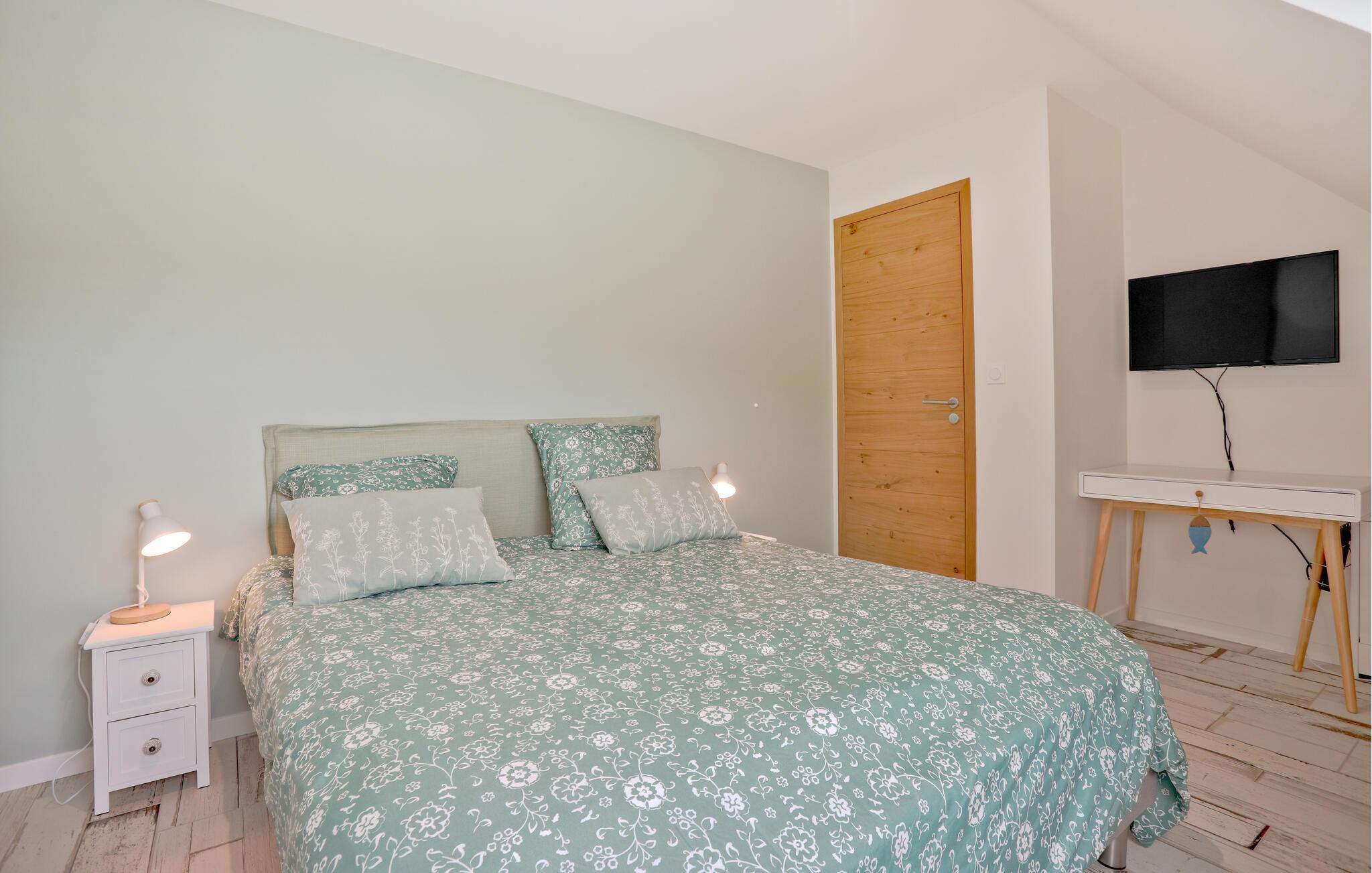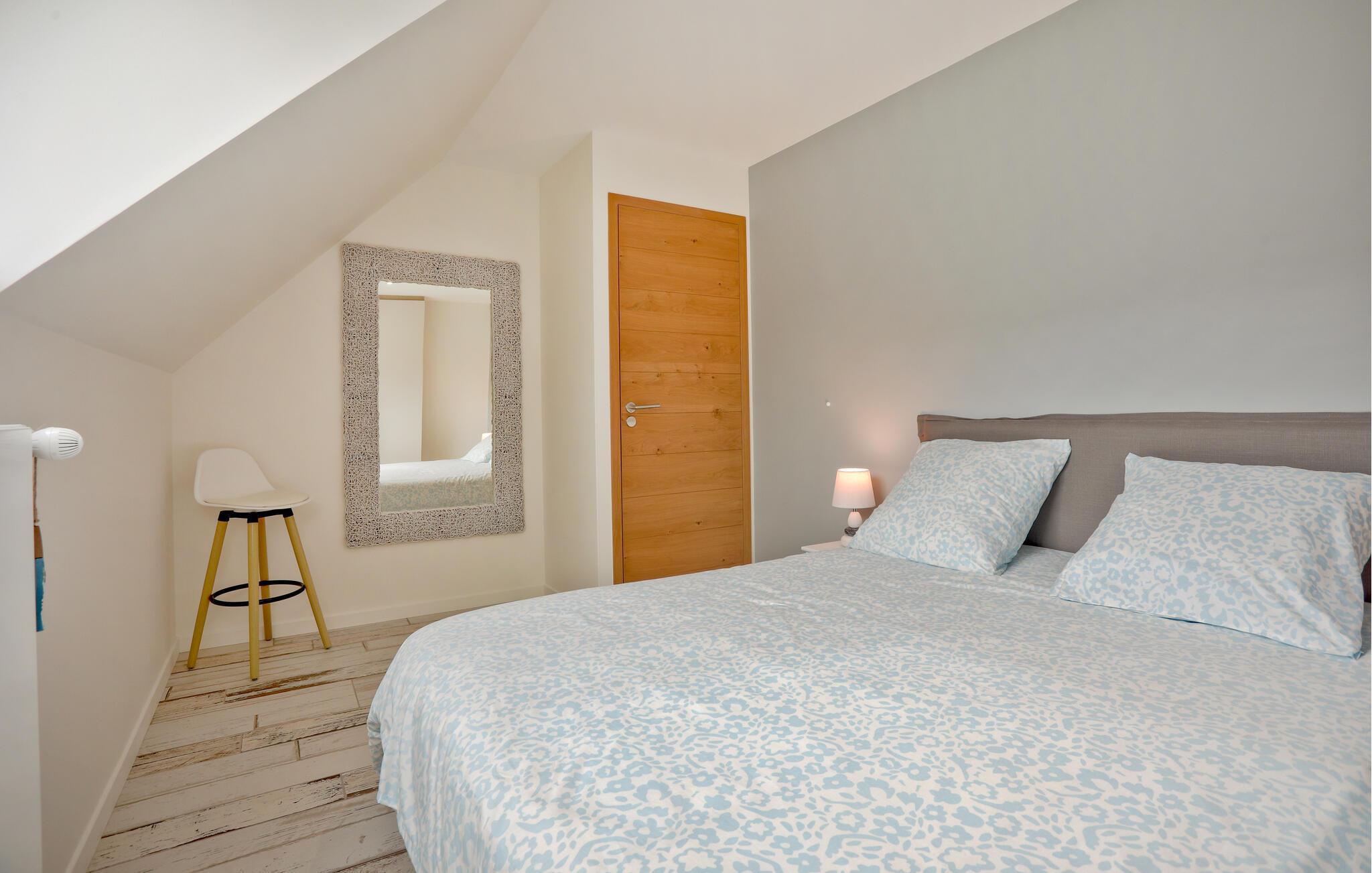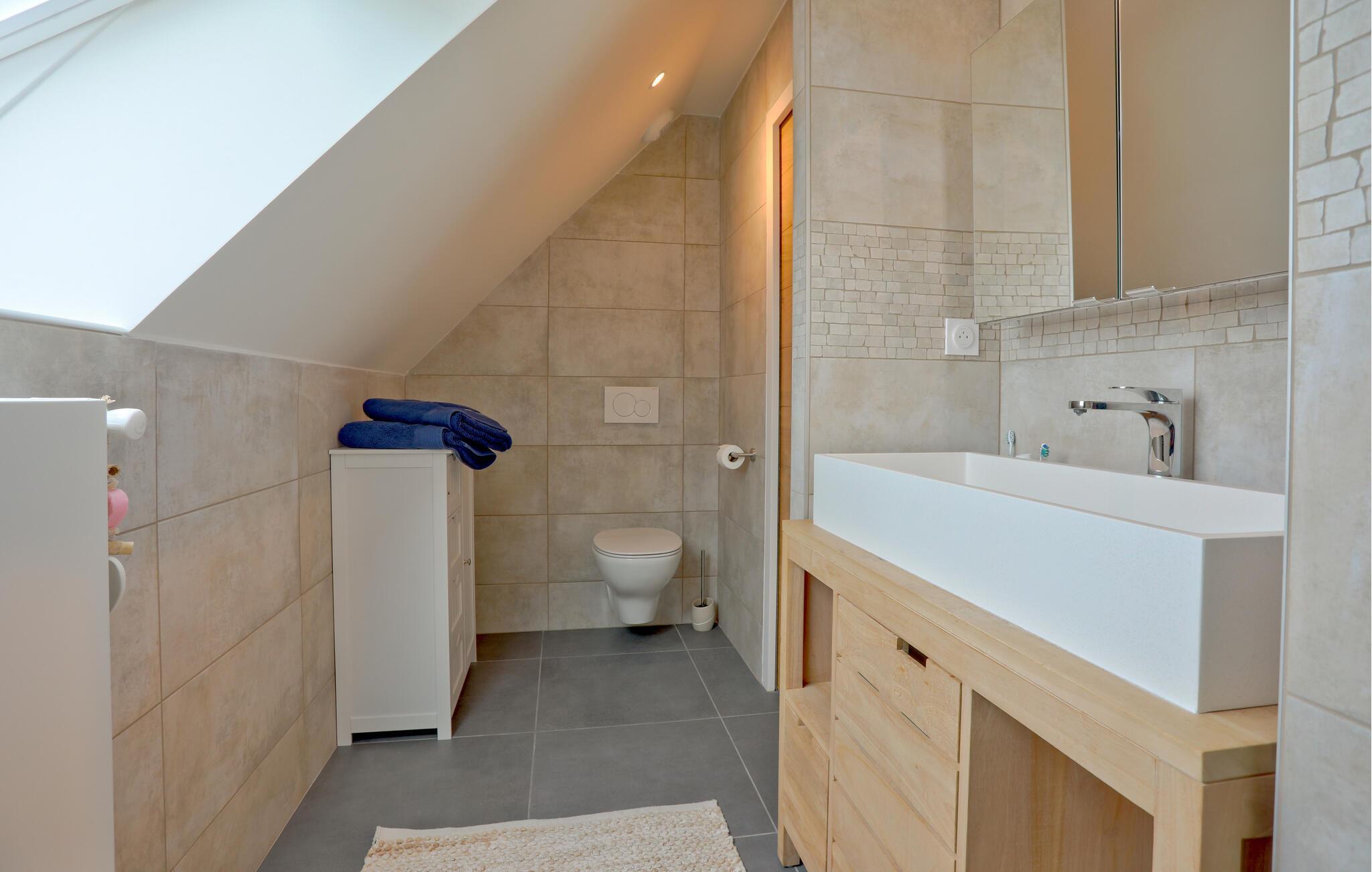 Nyd en uforglemmelig ferie i dette komfortable feriehus med en stor have, ikke langt fra smukke strande. Dette omhyggeligt restaurerede stenhus fra det 19. århundrede kan prale af et lyst og rummeligt interiør og en hyggelig atmosfære. Skab kulinariske lækkerier sammen, glæd jer til lange måltider ved det stilfulde spisebord, og sæt jer til rette i de komfortable sofaer efter en lang dag. Start dagen med en morgenmad under åben himmel på den indbydende terrasse. Lad jeres børn løbe rundt på den rummelige græsplæne i den beskyttede have og nyde stemningsfulde grillfester med vin og stearinlys. Cykl til stranden langs den sikre cykelsti eller udforsk de nærliggende butikker. Vandr gennem Cotentin-halvøens natur og fordyb jer i D-dagens historie i Utah Beach eller Sainte-Mère-Église. Besøg Cherbourg med dens kunstige havn og Cité de la Mer, eller Granville med dens kasino og Maison Dior. Nyd vandsport, og gå ikke glip af den imponerende Mont Saint-Michel.
