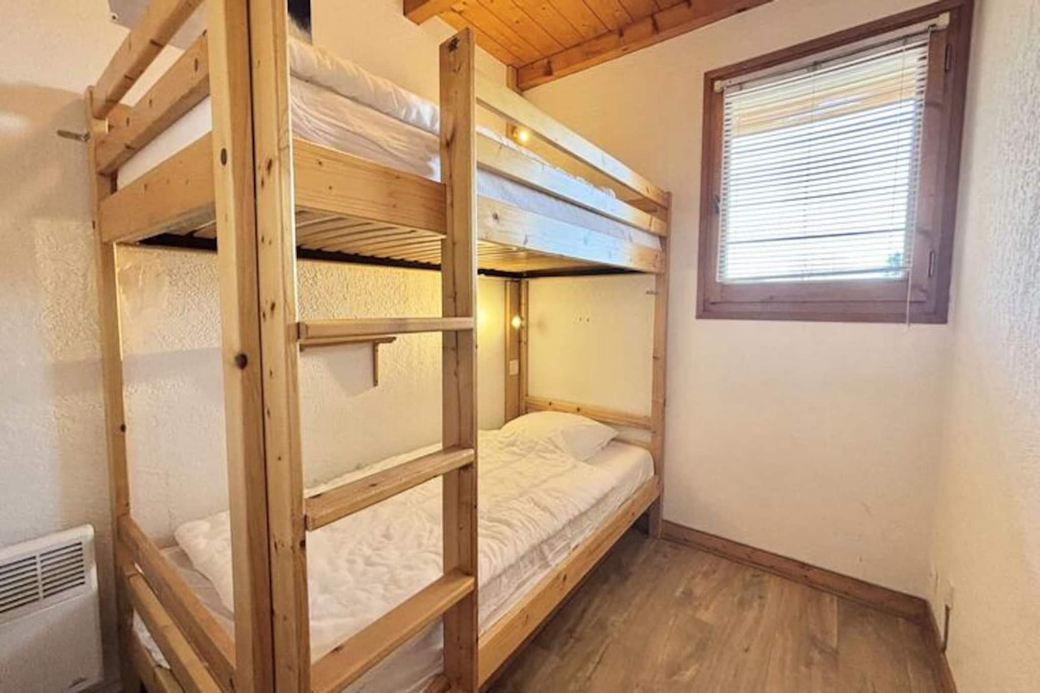Ved foden af ??de majestætiske franske alper tilbyder denne charmerende lejlighed i stueetagen et hyggeligt tilflugtssted til din næste bjergferie. Omgivet af fredfyldte landskaber og kun få skridt fra pisterne er det den perfekte base for både vintersportsentusiaster og sommereventyrere. Vågn op til frisk alpeluft og nyd roen i denne fredelige beliggenhed, hvor naturens skønhed møder komforten ved et moderne liv. Uanset om du er her for at stå på ski, vandre eller blot slappe af, lover denne bolig et mindeværdigt ophold. \n\nLejligheden er på 30 m² og er omhyggeligt designet til at maksimere plads og komfort. Den har en indbydende stue med en udtrækssovesofa, et tekøkken udstyret til at tilberede solide måltider, et soveværelse med en dobbeltseng og en sovealkove med to køjesenge. Bemærk venligst, at den øverste køjeseng ikke er egnet til børn under seks år. Et brusebad, separat toilet og en privat balkon fuldender planløsningen og tilbyder et praktisk, men indbydende rum til op til fem gæster. Yderligere faciliteter inkluderer et skiskab og en privat overdækket parkeringsplads, der sikrer bekvemmelighed under hele dit ophold. \n\nBeliggende i et roligt område tilbyder boligen nem adgang til pisterne, hvilket gør den ideel for skientusiaster. Den nærliggende kælkebane tilføjer et strejf af sjov for familier, mens de omkringliggende stier indbyder til udforskning i de varmere måneder. For ekstra bekvemmelighed er valgfrie tjenester såsom sengelinned, håndklæder og slutrengøring tilgængelige efter anmodning. Kæledyr er velkomne mod et mindre gebyr, så du kan tage dine pelsede venner med på eventyret. \n\nUanset om du søger spændende alpine aktiviteter eller fredelige øjeblikke i naturen, tilbyder denne lejlighed en indbydende flugt i hjertet af de franske alper. Book dit ophold og skab uforglemmelige minder i denne maleriske bjergparadis.