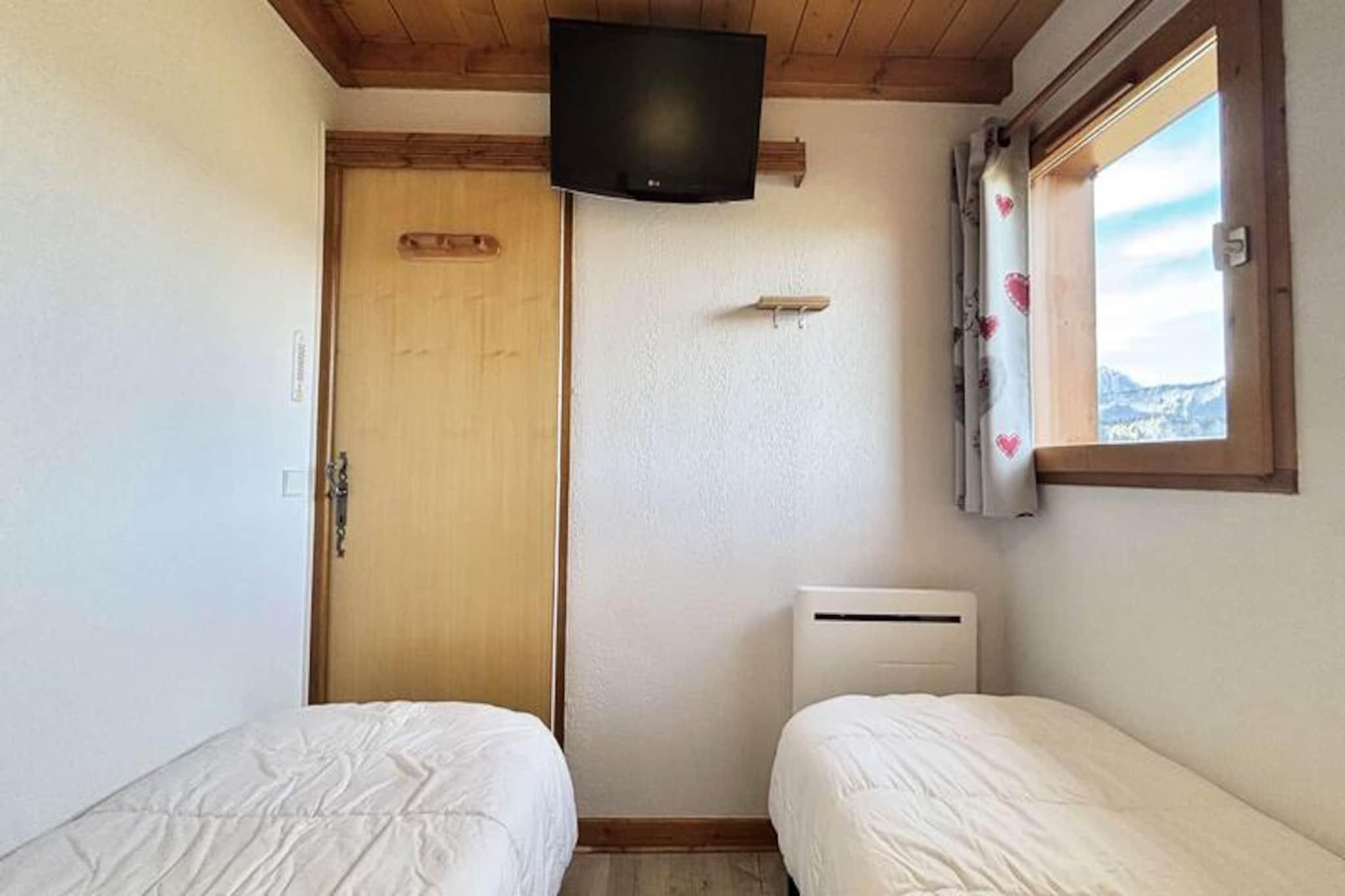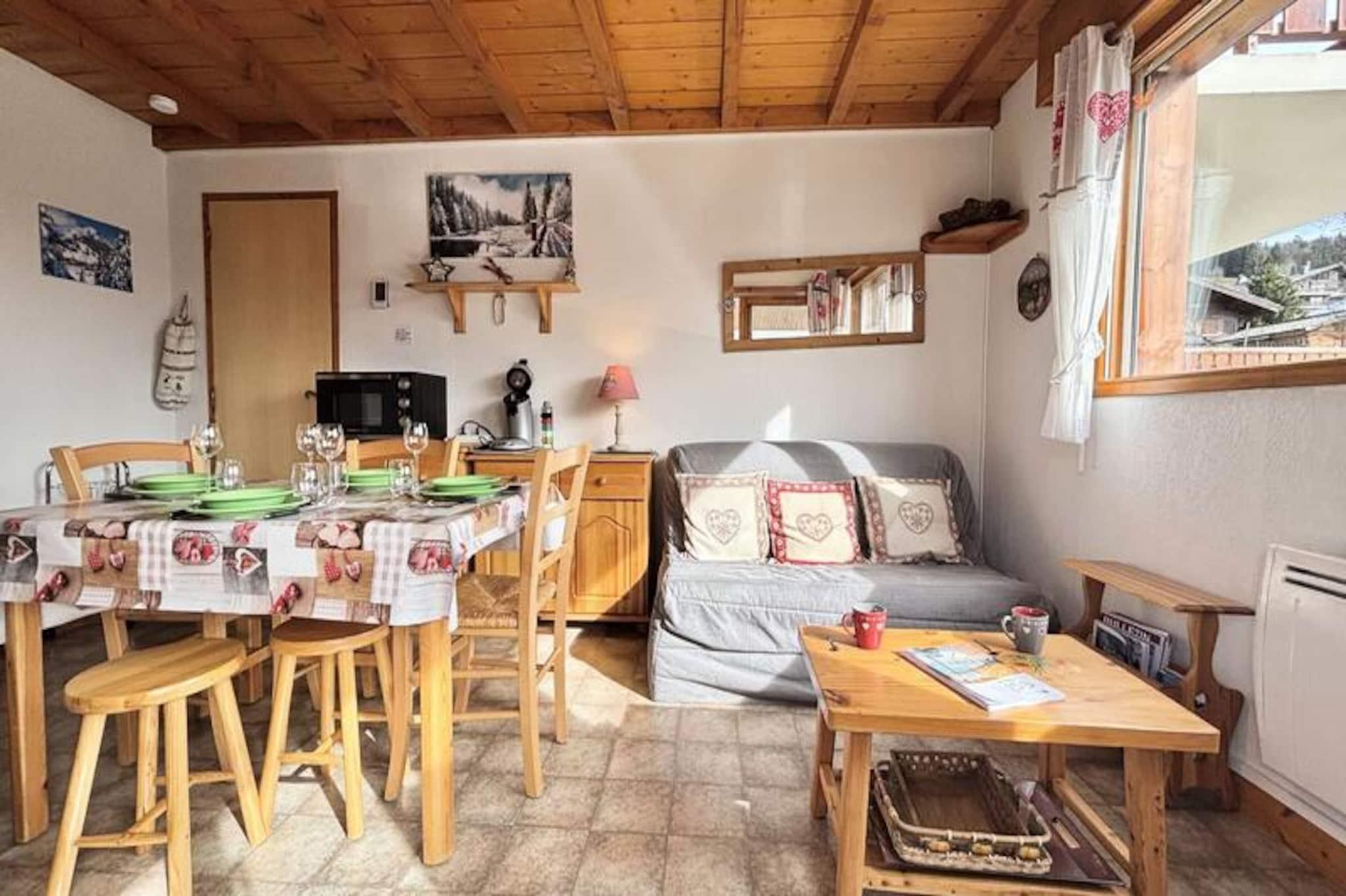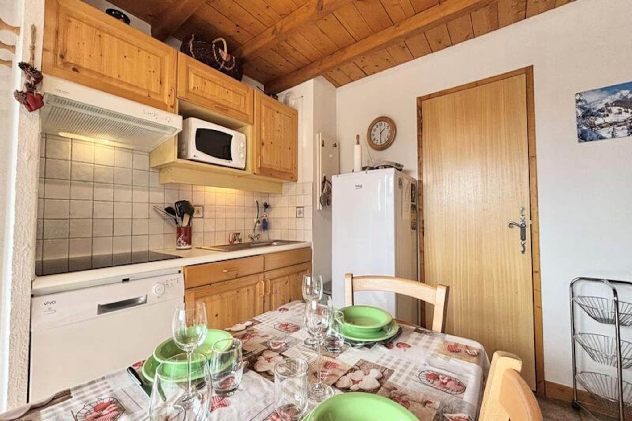 Under de tårnhøje tinder i de franske alper tilbyder denne charmerende ferielejlighed i stueetagen et hyggeligt tilflugtssted for både eventyrere og afslapningssøgende. Uanset om du er her for at kæmpe dig gennem uberørte pister eller blot nyde den alpine ro, sikrer denne ejendoms uovertrufne beliggenhed ved foden af ??pisterne, at hvert øjeblik er gennemsyret af bjergmagi. Den nærliggende kælkebane tilføjer et legende præg til vinterdagene, mens de bekvemmeligheder ved butikker kun 50 meter væk gør dit ophold ubesværet og behageligt. \n\nIndenfor er den 29 m² store lejlighed omhyggeligt designet til at maksimere komfort og funktionalitet. Stuen og køkkenet skaber et indbydende rum til fælles måltider og rolige aftener, mens soveværelset med en dobbeltseng og sovealkoven med to enkeltsenge tilbyder afslappende oaser efter en dag med udforskning. Et moderne brusebad og separat toilet bidrager til det praktiske, og balkonen inviterer dig til at indånde den friske alpine luft, mens du beundrer det omkringliggende landskab. Yderligere fordele inkluderer en privat parkeringsplads reserveret til beboere og et skirum til dit udstyr. \n\nBeliggenheden er ideel til at fordybe dig i den pulserende alpine livsstil. Fra spændende skiløjper til afslappende gåture gennem landsbyen er alt hvad du behøver inden for rækkevidde. I de varmere måneder forvandles området til et paradis for vandrere og naturelskere med stier, der snor sig gennem betagende landskaber. \n\nUanset om du planlægger en vinterferie eller et sommereventyr, lover denne lejlighed et mindeværdigt ophold i hjertet af de franske alper. Skab varige minder i omgivelser, der kombinerer komfort, bekvemmelighed og bjergenes tidløse skønhed.