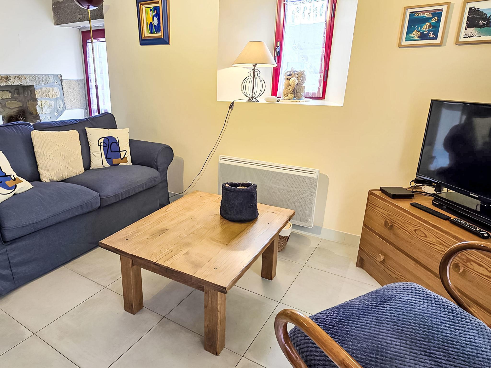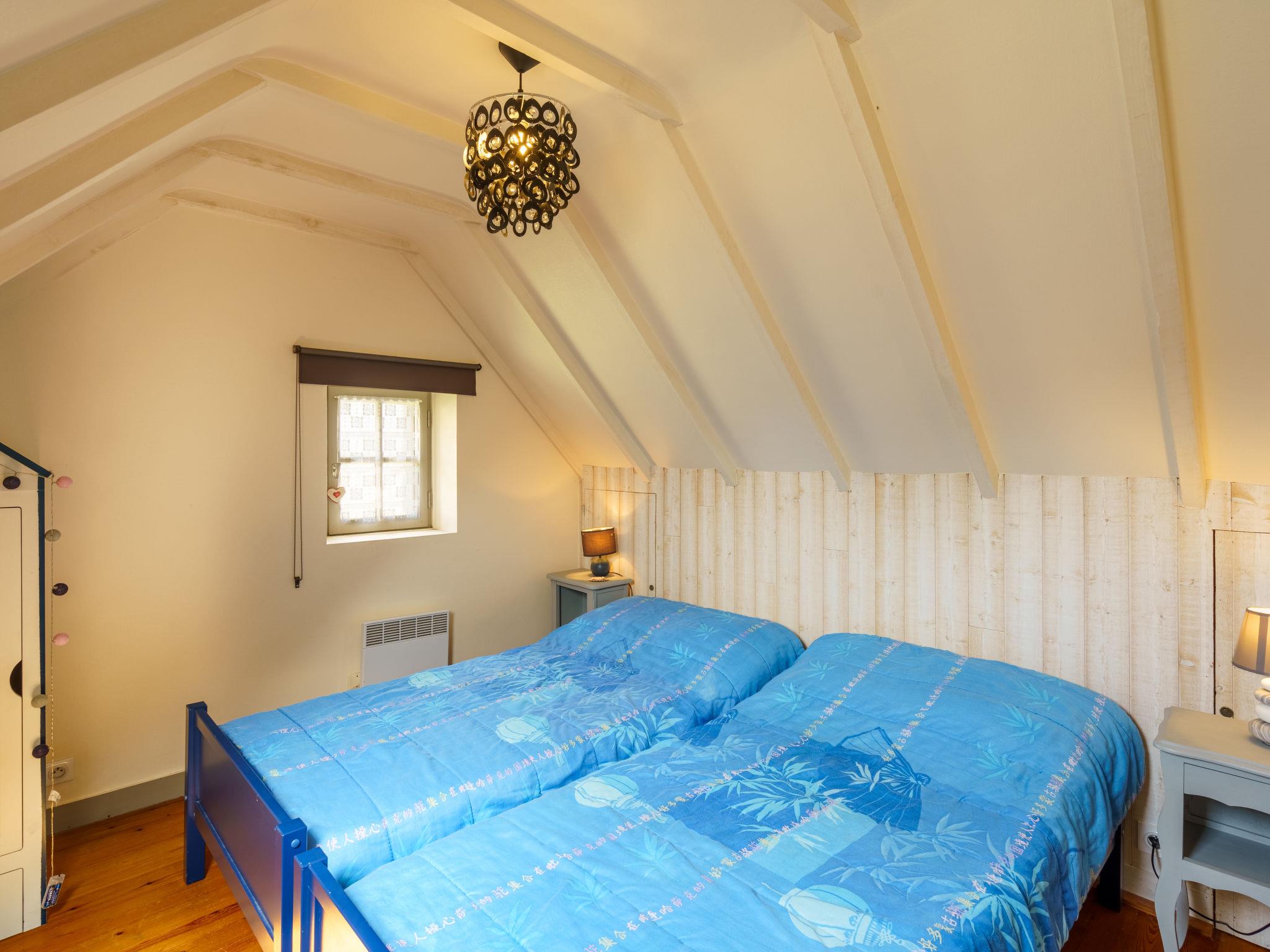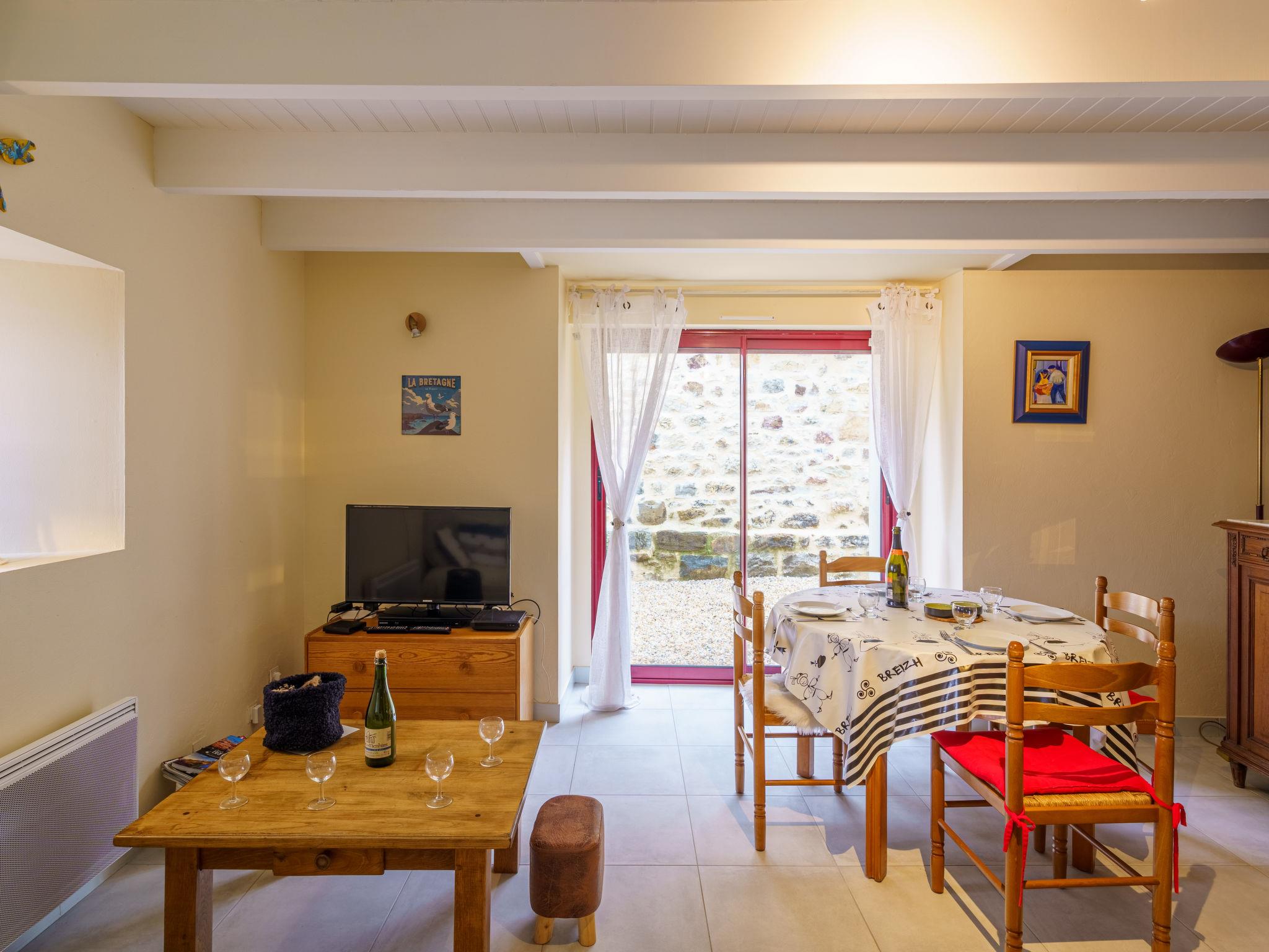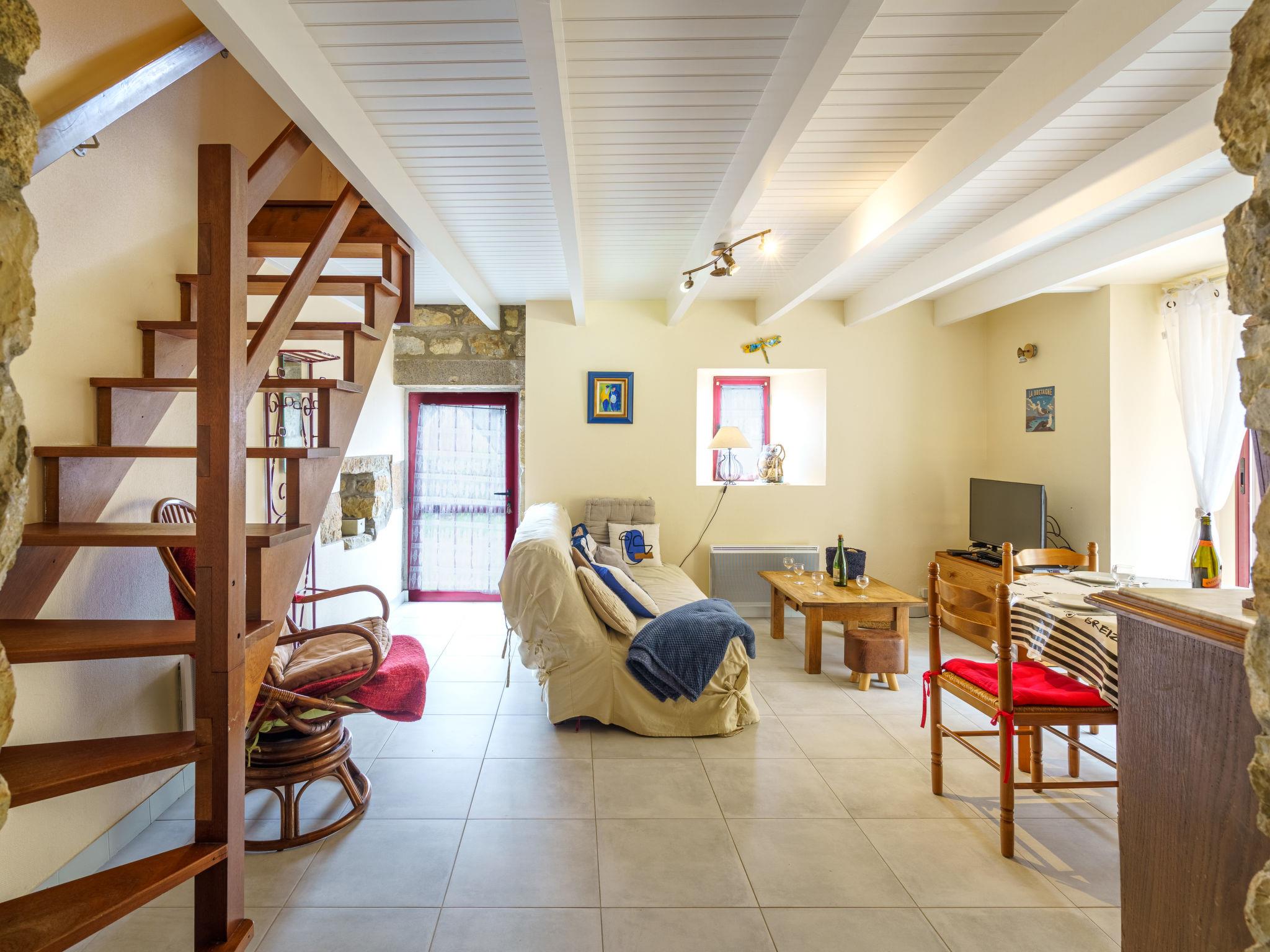 "Penty Landromiou", 3-room house 50 m2 on 2 levels. Practical and beautiful furnishings: living/dining room with dining table and TV (flat screen). Open kitchen (dishwasher, 3 induction hot plates, toaster, kettle, microwave, electric coffee machine). Exit to the garden. Shower, sep. WC. Electric heating. Upper floor: walk-through room with 1 french bed (160 cm, length 190 cm). 1 room with 2 beds (90 cm, length 190 cm). Terrace furniture, barbecue, deck chairs (2). Facilities: washing machine, dryer, baby cot, hair dryer. Internet (WiFi, free). Please note: non-smoking house. Maximum 1 pet/ dog allowed. Smoke alarm. Offer by a private individual according to Art. 155, IV of CGI.