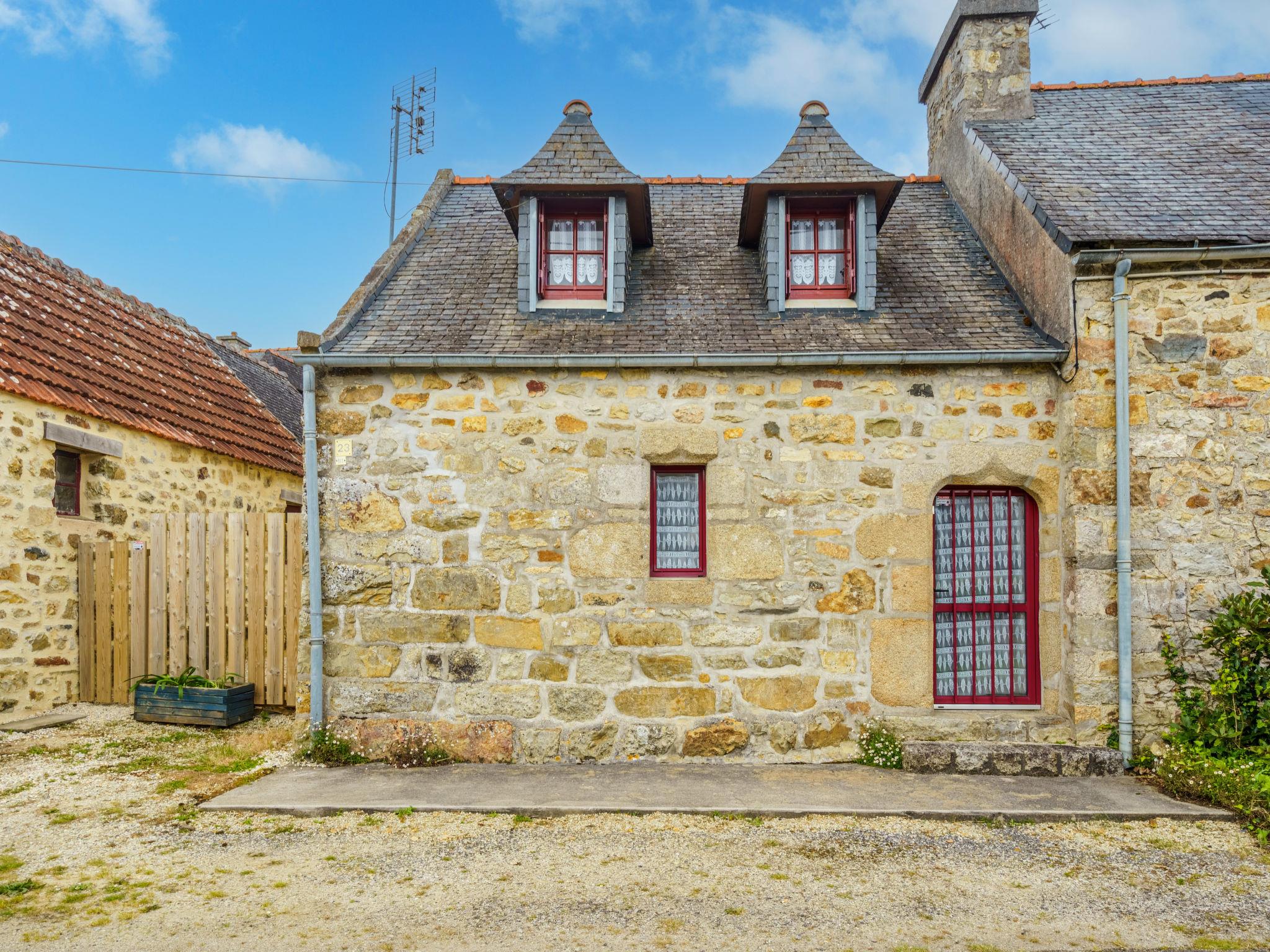 Terraced house "Penty Landromiou". In the resort 800 m from the centre of Crozon - Morgat, 1 km from the sea, 1.3 km from the beach. Private: property 250 m2 (fenced), garden with lawn. Parking space or garage only for small to medium-sized cars. Shop, supermarket, restaurant 800 m, bus stop 1 km, sandy beach "Plage du Porzic" 1.3 km. Sports harbour 3 km, sailing school 3 km. Nearby attractions: Cap de la Chèvre 10 km, Pointe de Pen Hir 11 km, Camaret 10 km, Roscanvel 11 km, Locronan 35 km, Quimper 52 km. Hiking paths: GR34.