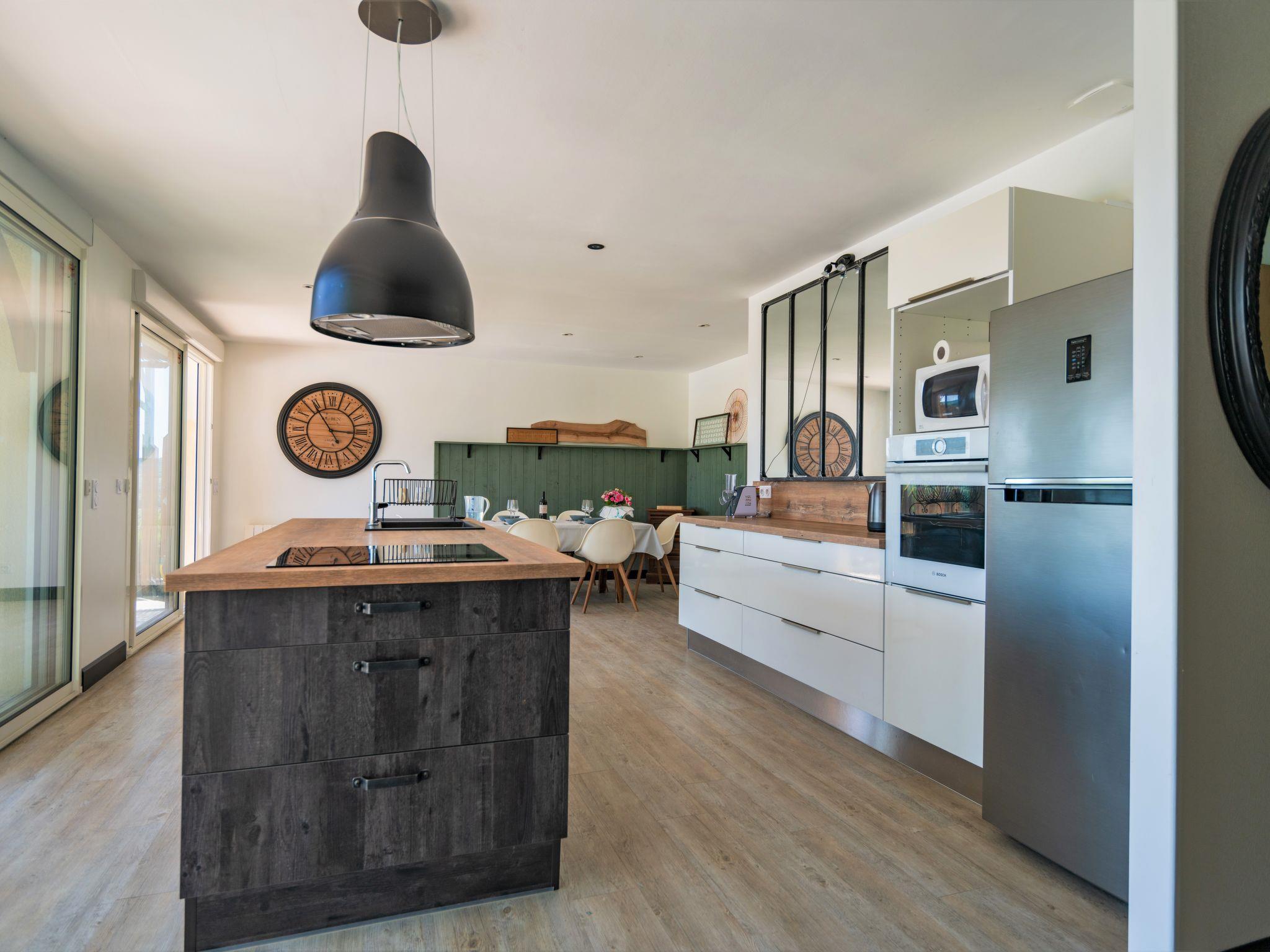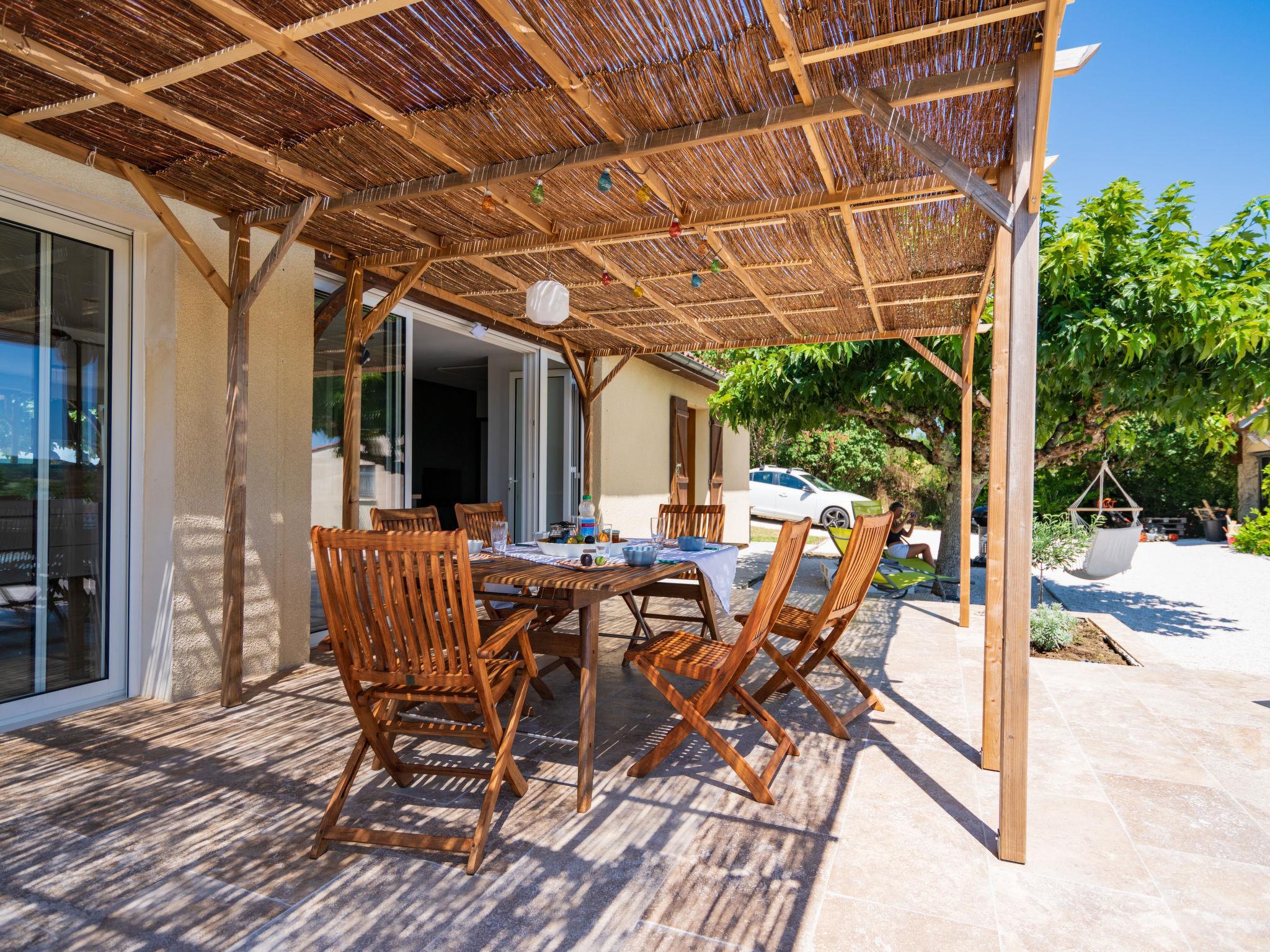 4-room house 100 m2. Object suitable for 4 adults + 2 children. Bright, fully renovated in 2023, beautiful and cosy furnishings: living/dining room with panoramic window with dining table. Exit to the terrace. Small lounge with TV (flat screen). 1 room with 1 french bed (160 cm, length 200 cm). Exit to the garden. 1 room with 1 french bed (140 cm, length 200 cm). 1 room with 2 beds (90 cm, length 200 cm). Open kitchen (oven, dishwasher, 3 induction hot plates, toaster, kettle, microwave, freezer, electric coffee machine). Shower, sep. WC, double hand-basin. Electric heating. Large terrace 90 m2, south-east facing position. Terrace furniture, barbecue (portable), deck chairs (6). Beautiful view of the countryside. Facilities: washing machine, iron, baby cot, hair dryer. Internet (WiFi, free). Please note: suitable for families. Non-smoking house. Smoke alarm. Offer by a private individual according to Art. 155, IV of CGI.