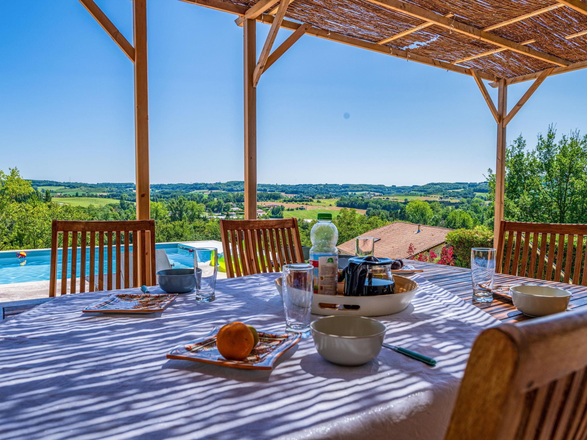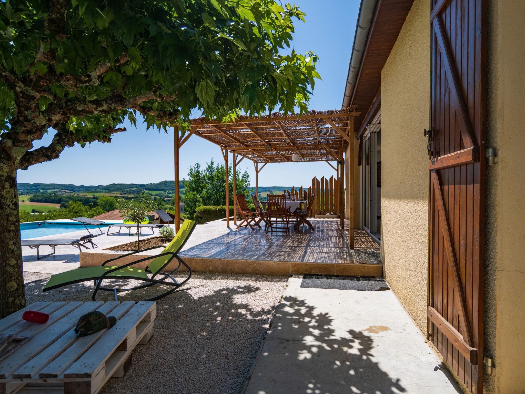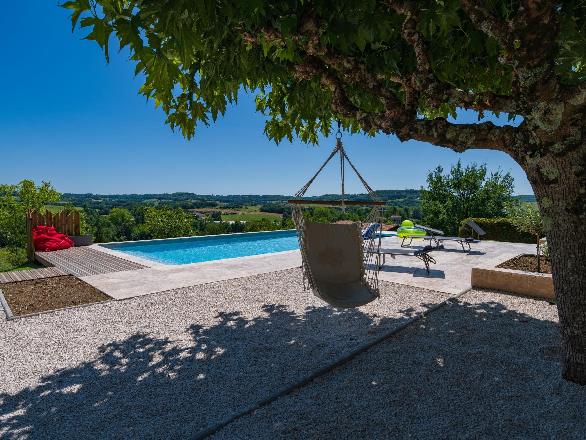 Single-family house "Bourgat". 250 m from the centre of Dausse, 6 km from the centre of Penne-d'Agenais, 10 km from the centre of Tournon-d'Agenais, on top of a hill. Private: natural state property 2'800 m2, swimming pool angular (11 x 6 m, depth 140 cm, seasonal availability: 01.May. - 30.Sep.) with internal staircase and shutter cover. Outdoor shower, terrace, parking (for 2 cars) at the house on the premises. Shop, grocery 300 m, supermarket 10 km, bus stop "St Sylvestre" 8 km. Golf course (18 hole) 24 km, riding stable 9 km. Nearby attractions: Villeneuve-sur-Lot 17 km, Montflanquin 26 km, Agen (centre parachutisme) 35 km, Cahors 53 km, Montauban 65 km, Non adapté pers à mobilité réduite.