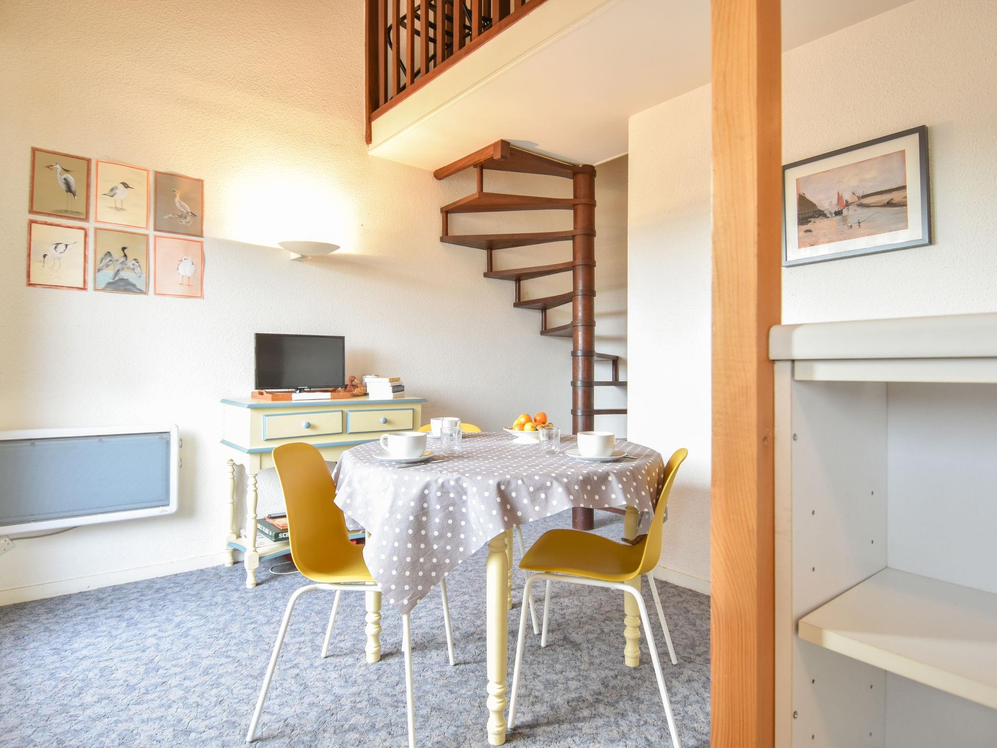 2-room maisonette 36 m2 on 4th floor. Partly with sloping ceilings: entrance hall. Living/dining room with TV (flat screen). Exit to the balcony. Kitchenette (2 hot plates, oven, dishwasher, toaster, kettle, microwave, electric coffee machine). Shower/WC. Electric heating. Upper floor: (spiral staircase), 1 room with 1 bed (90 cm, length 190 cm), 1 french bed (140 cm, length 190 cm). Exit to the balcony. Bath/WC. Small balcony 3 m2, east facing position, small balcony 2 m2, west facing position. Beautiful view of the resort. Facilities: Internet (WiFi, extra). Please note: non-smokers only, no parking. Smoke alarm. 14220 000112 RV