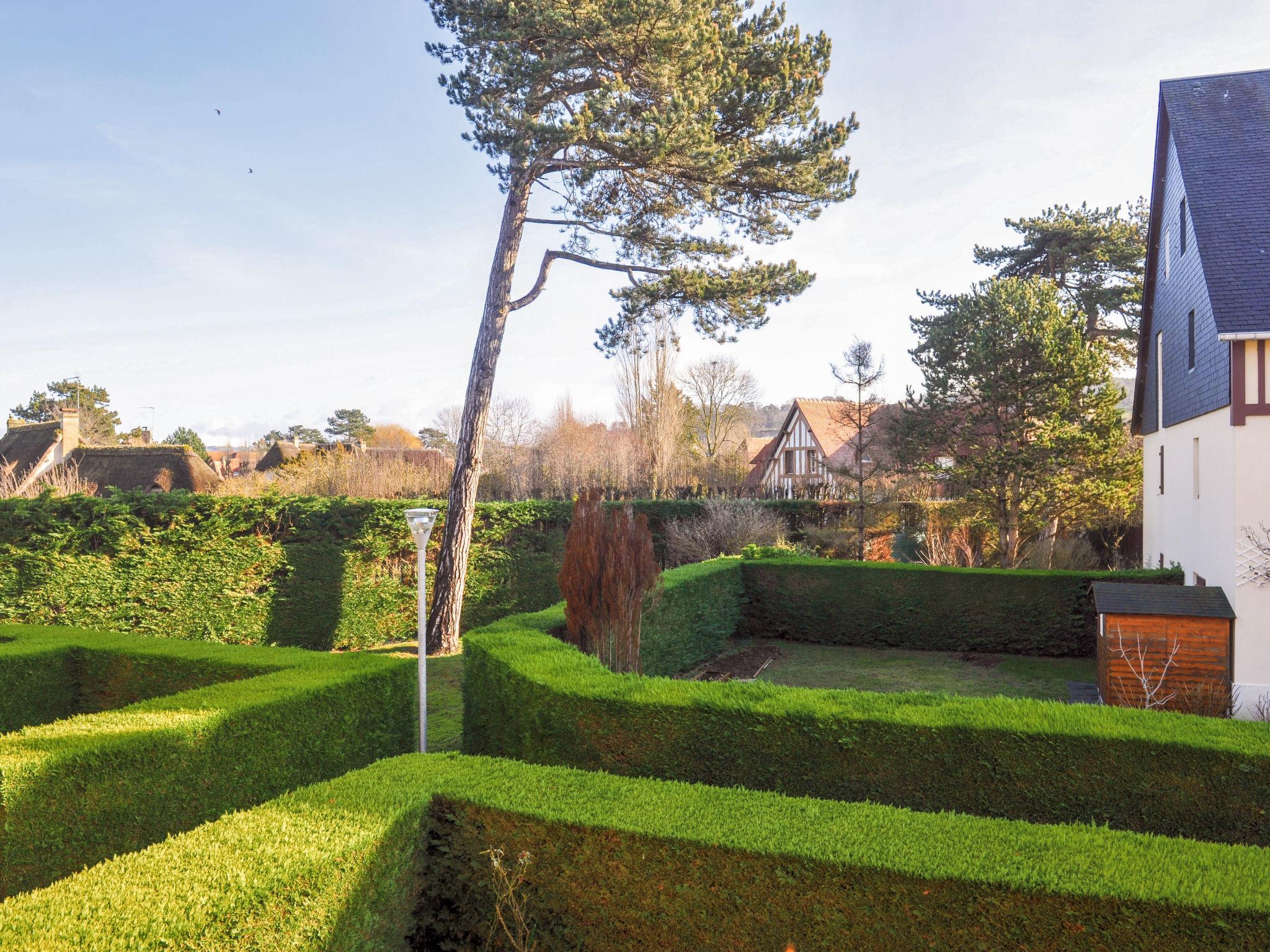 Tourgeville: Residence "L'Orée de Deauville", 2 storeys, surrounded by trees. On the outskirts, 2 km from the centre of Deauville, in the residential district, 450 m from the sea, 450 m from the beach. Supermarket 450 m, bakery 600 m, bus stop "Carrefour Tourgéville" 400 m, railway station "Deauville-Trouville" 2.5 km, indoor swimming pool 1.8 km, thermal baths "thalasso de Deauville" 1.8 km. Golf course (18 hole) 3.8 km, tennis 2 km, riding stable 2 km. Nearby attractions: Hippodrome de Deauville-La Touque 2 km, Casino 1.6 km, Honfleur 18 km, Mémorial de Caen 48 km, Plage du débarquement d'Arromanches 76 km. The keys‘ handover takes place by the agency Interhome in Deauville.