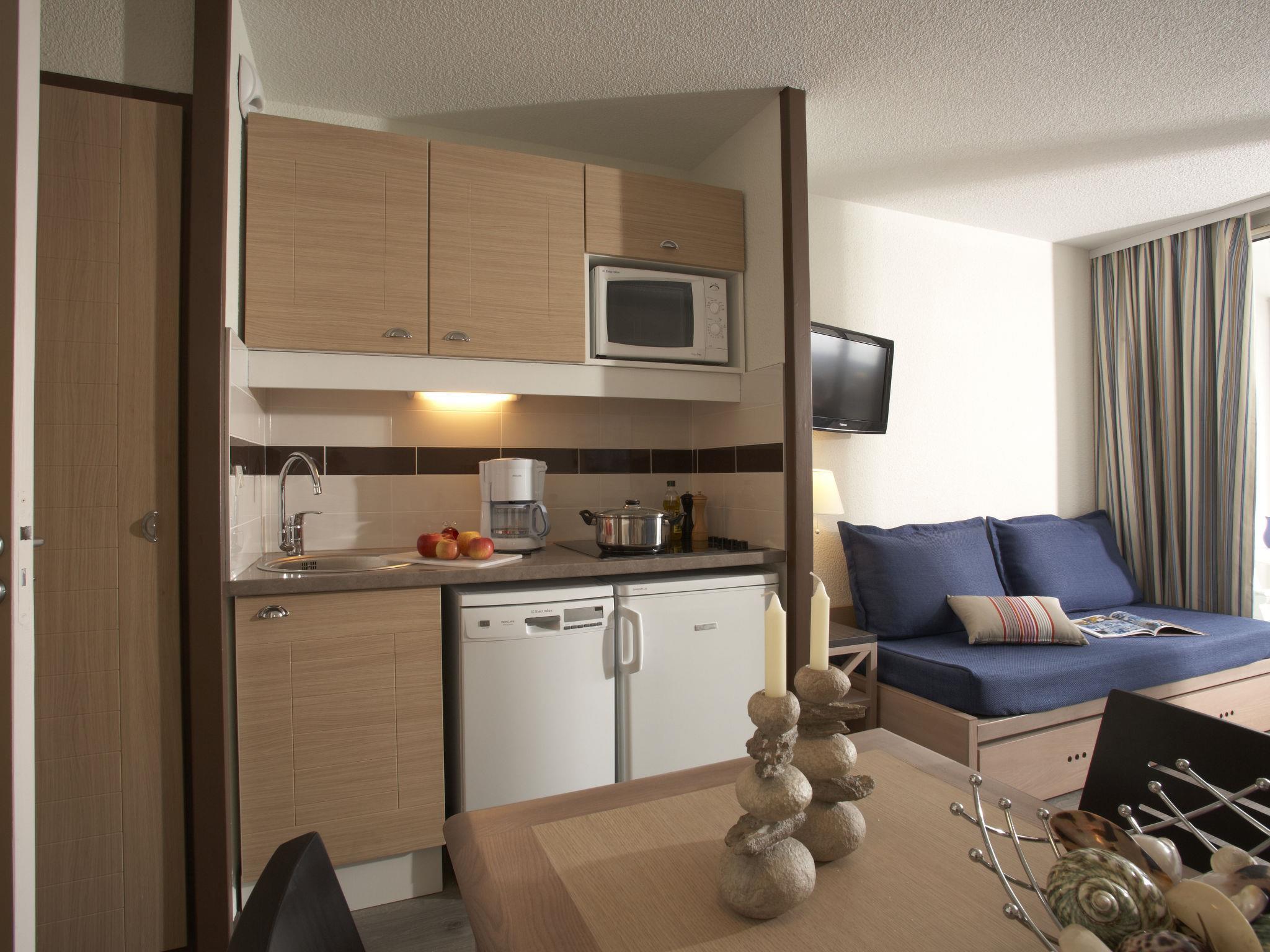 "Le Port", 3-room maisonette 44 m2. Beautiful furnishings: living/sleeping room with 2 sofabeds (80 cm, length 190 cm), TV (flat screen). Exit to the balcony. Sleeping alcove with (80 cm, length 190 cm), 1 x 2 bunk beds. Kitchenette (dishwasher, 2 ceramic glass hob hotplates, toaster, kettle, microwave, electric coffee machine, combination microwave). Sep. WC, bath or shower. Upper floor: 1 room with 1 double bed (190 cm, length 200 cm). Electric heating. Small balcony. View of the port. Facilities: children's high chair, baby cot. Internet (WiFi, free). Please note: maximum 1 pet/ dog allowed. Smoke alarm. Offer by a commercial proprietor according to Art. 155, IV, CGI