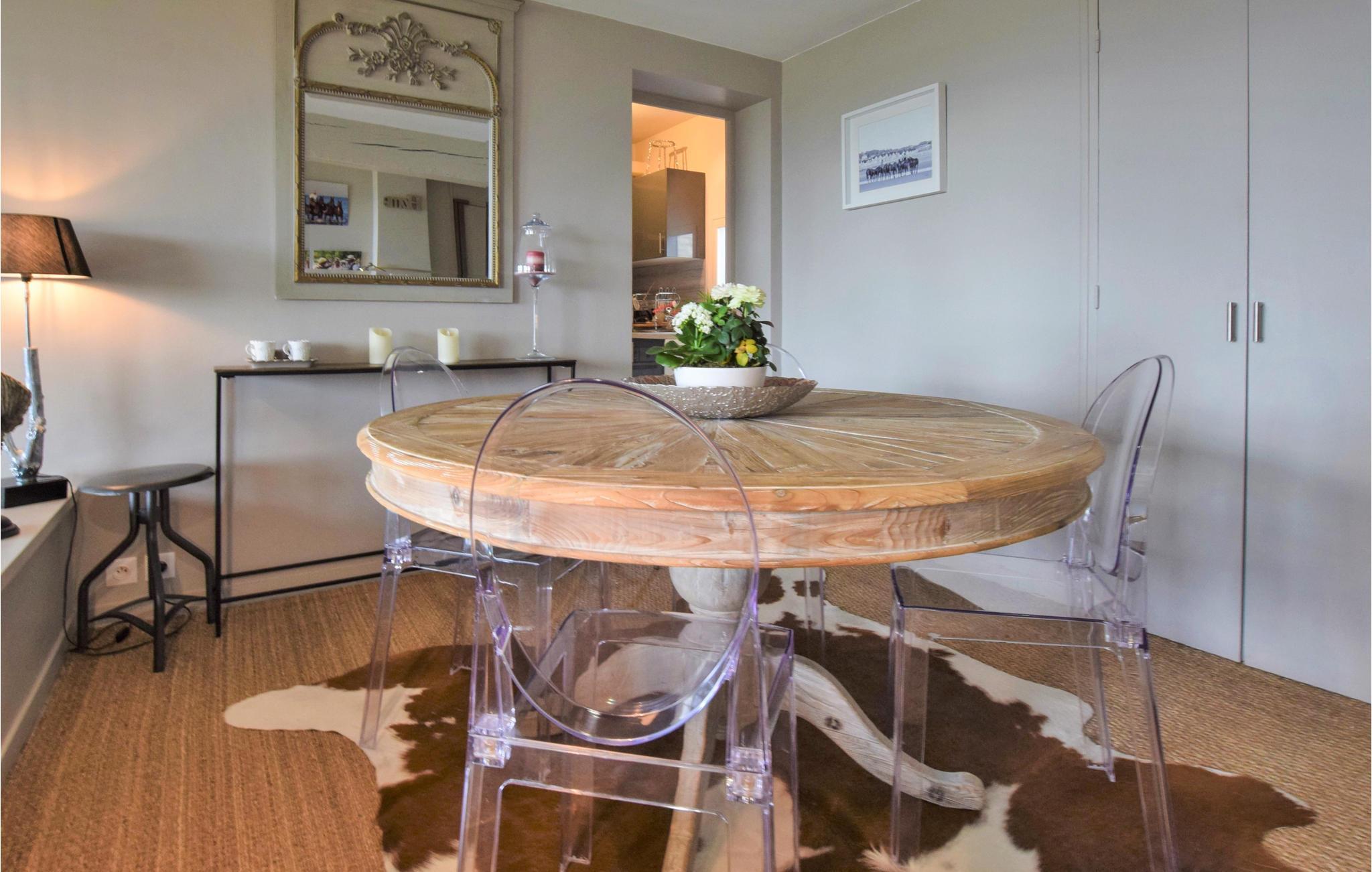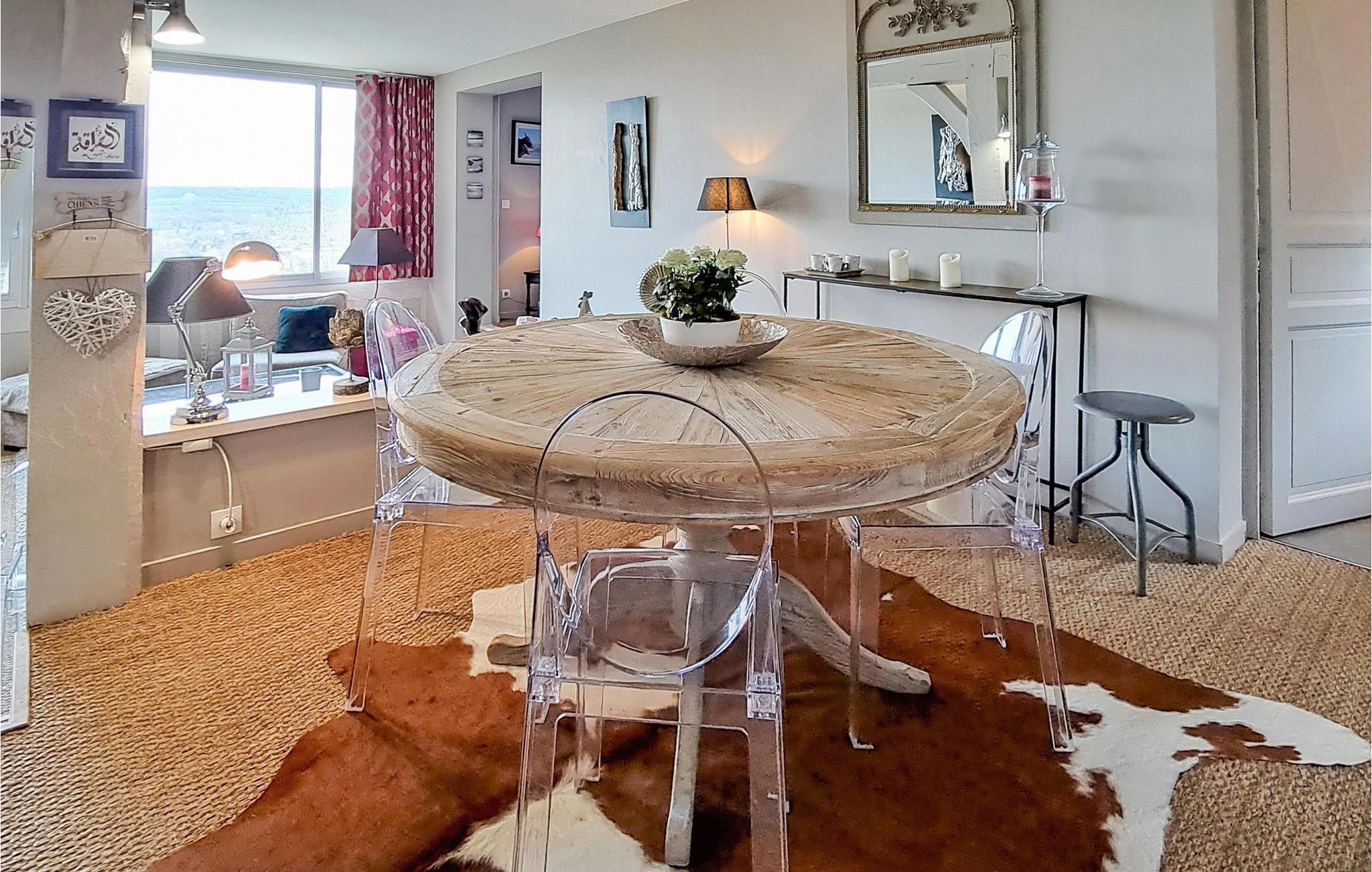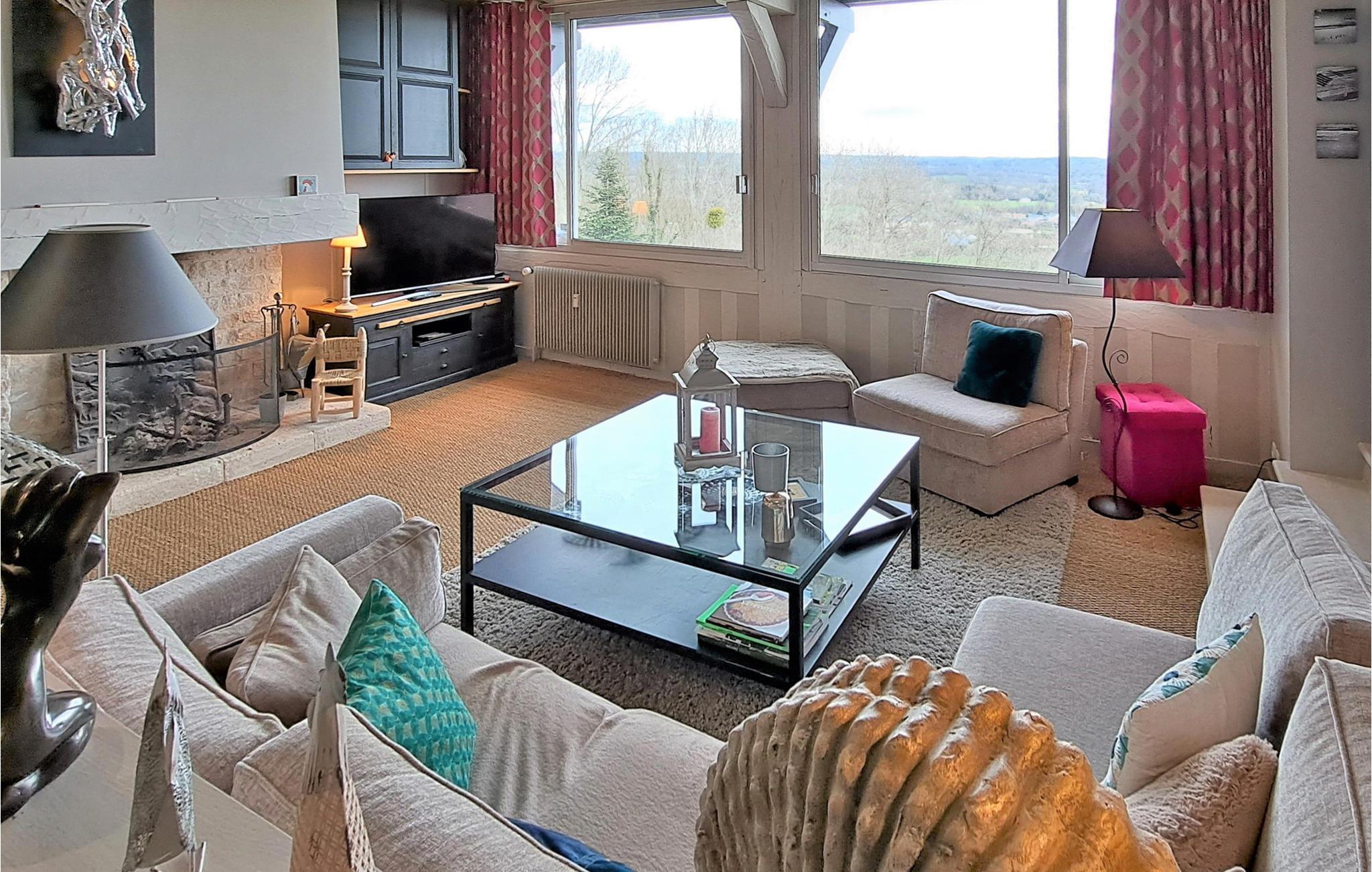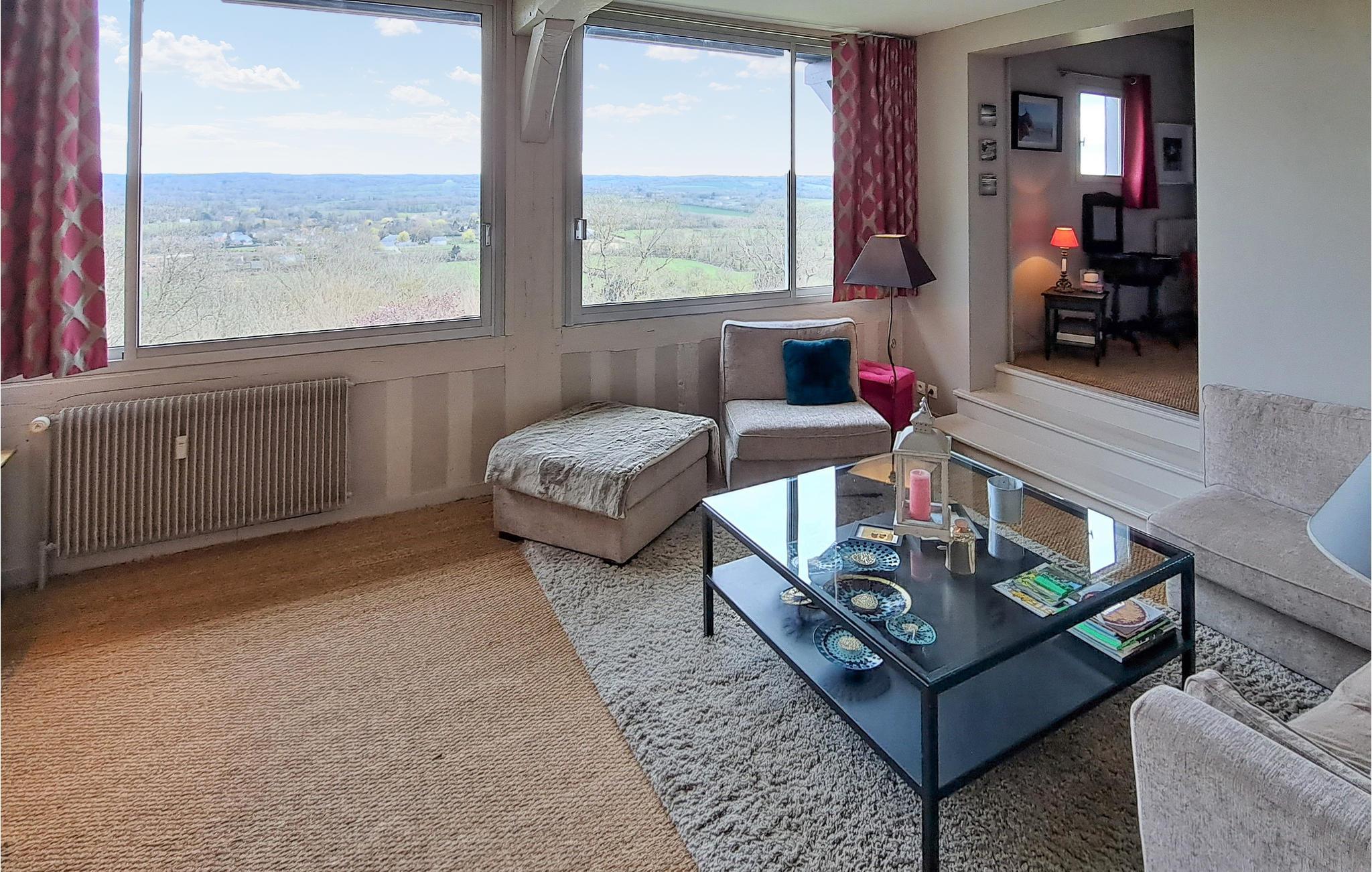 Den indbydende lejlighed har en smuk beliggenhed og byder på en fantastisk udsigt over det maleriske landskab i Normandiet. Det er ideelt til en ferie med spændende udflugter og uforglemmelige naturoplevelser, her vil både de, der søger fred og ro og aktive feriegæster, få noget for pengene. Med sine lyse værelser og den komfortable, moderne indretning er lejligheden den optimale ramme for en afslappende pause. Efter en aktiv dag kan I finde jer godt tilpas i den indbydende sofa, se en film sammen og snakke om dagens oplevelser.