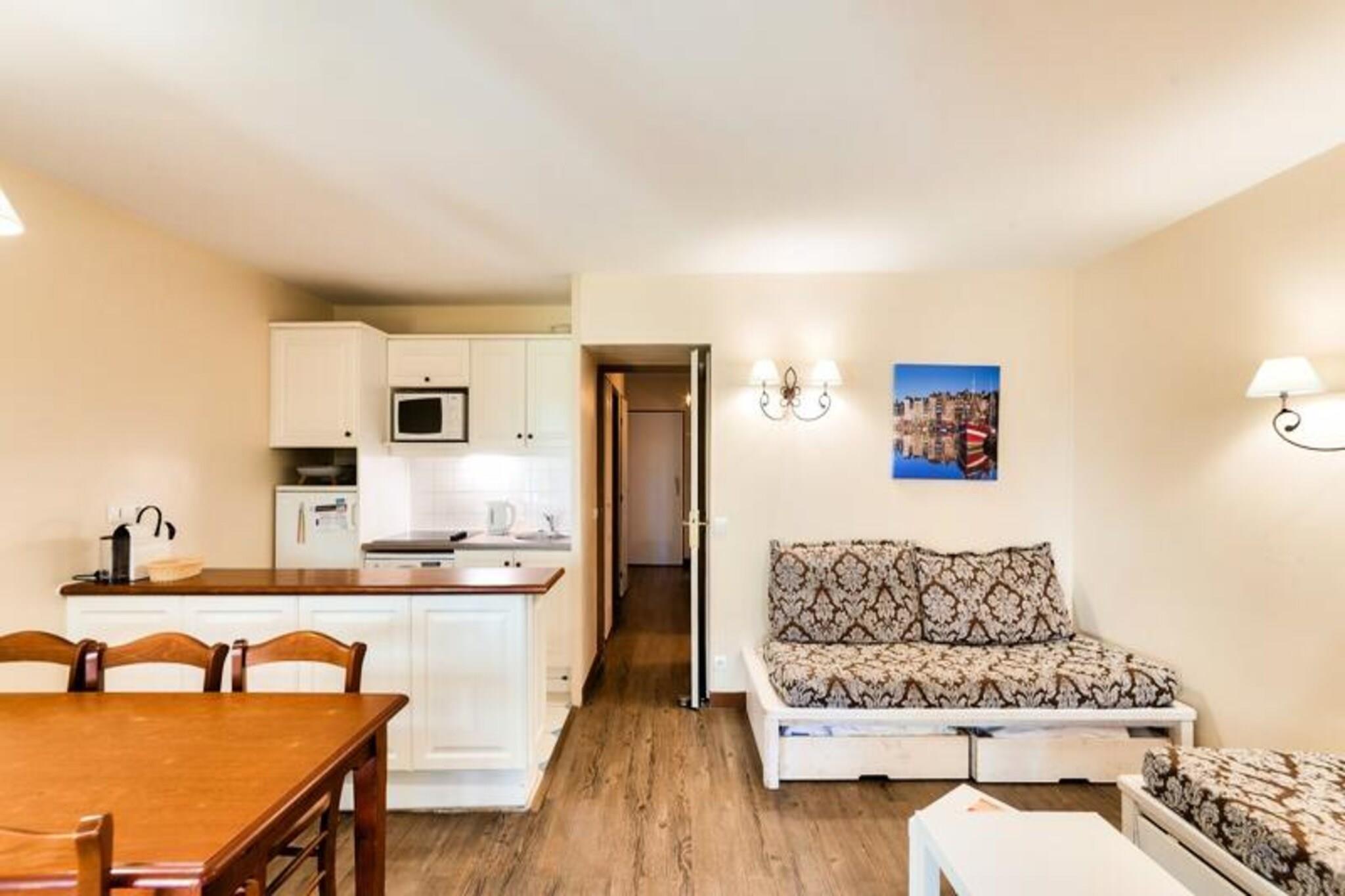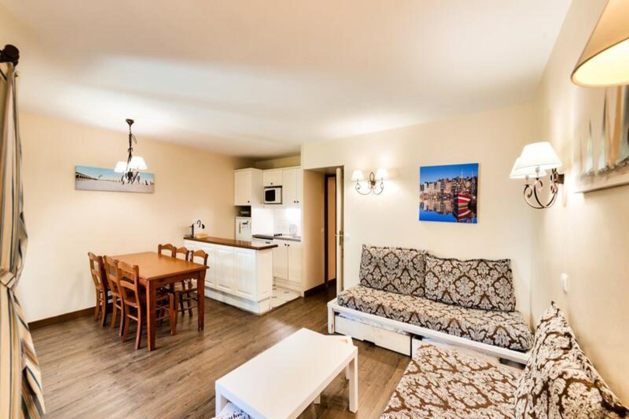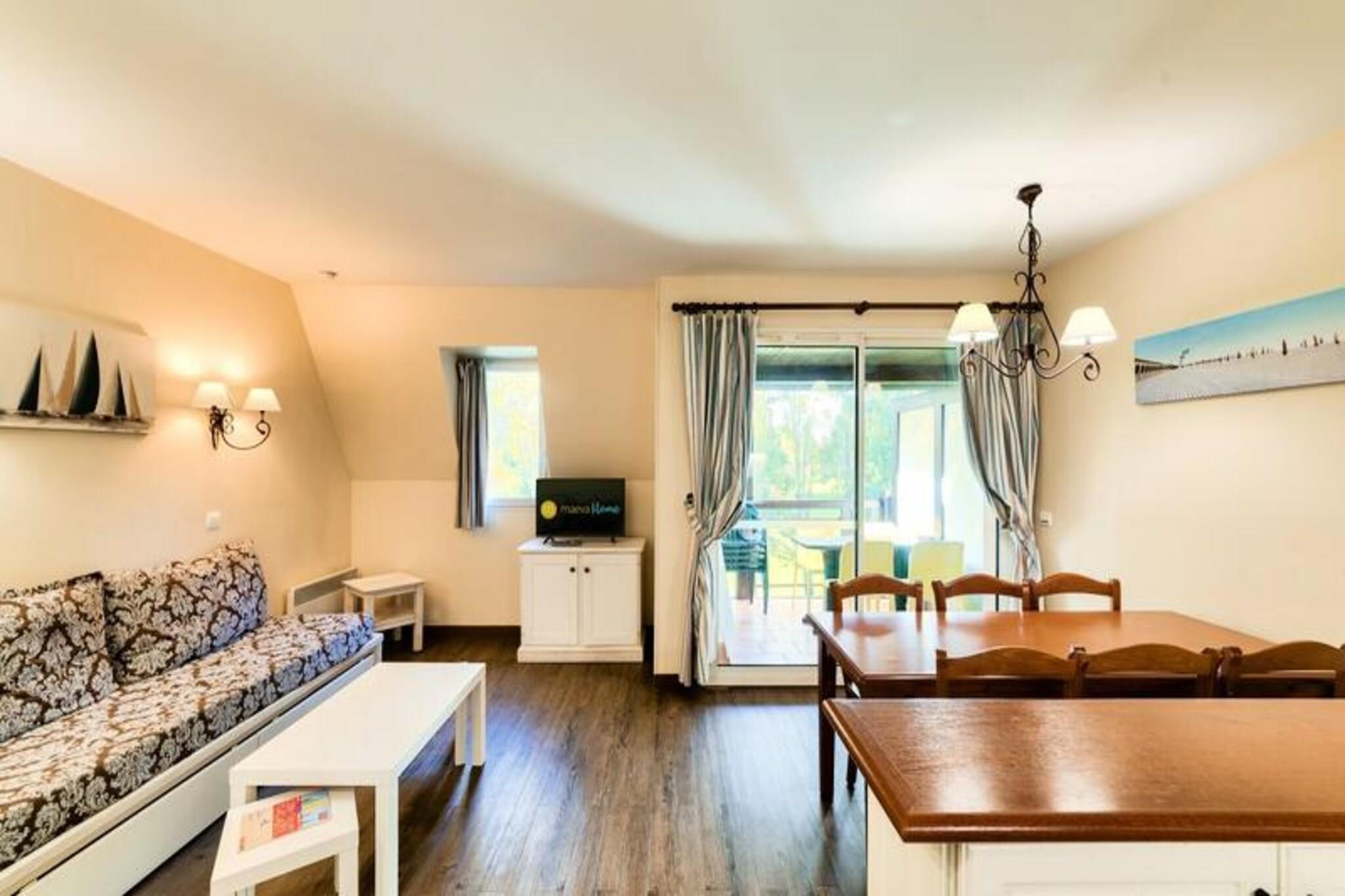 Denne charmerende lejlighed er beliggende i et fredeligt, grønt miljø, og tilbyder et hyggeligt oase med moderne bekvemmeligheder. Det har en komfortabel stue med en sovesofa og en udtræksseng, perfekt til at rumme yderligere gæster. Soveværelset har en dobbeltseng, og der er to badeværelser for ekstra bekvemmelighed. Gæsterne kan nyde den dejlige sydvestvendte altan med en smuk udsigt over den omkringliggende golfbane. Kæledyr er tilladt efter forespørgsel, hvilket gør det til et godt valg for dem, der rejser med lodne ledsagere. Gratis overdækket parkering sikrer et problemfrit ophold. Ejendommen er ideelt beliggende kun 2,5 km fra Deauvilles berømte "Planches"-strand og tæt på Deauville-La Touques Hippodrome, Casino Barrière og forskellige udendørs aktiviteter såsom tennis, golf og ridning. Det er perfekt til dem, der søger både afslapning og eventyr. Lejligheden er udstyret med et fuldt funktionelt køkken i amerikansk stil, komplet med et spisebord og stole til seks. Badeværelserne har moderne indretning, hvoraf det ene har badekar og det andet har bruser. Til afslapning kan gæsterne nyde den opvarmede udendørs swimmingpool (tilgængelig fra maj til september) samt saunaen. Valgfri tjenester som Wi-Fi, sengelinned og slutrengøring er tilgængelige mod et ekstra gebyr.