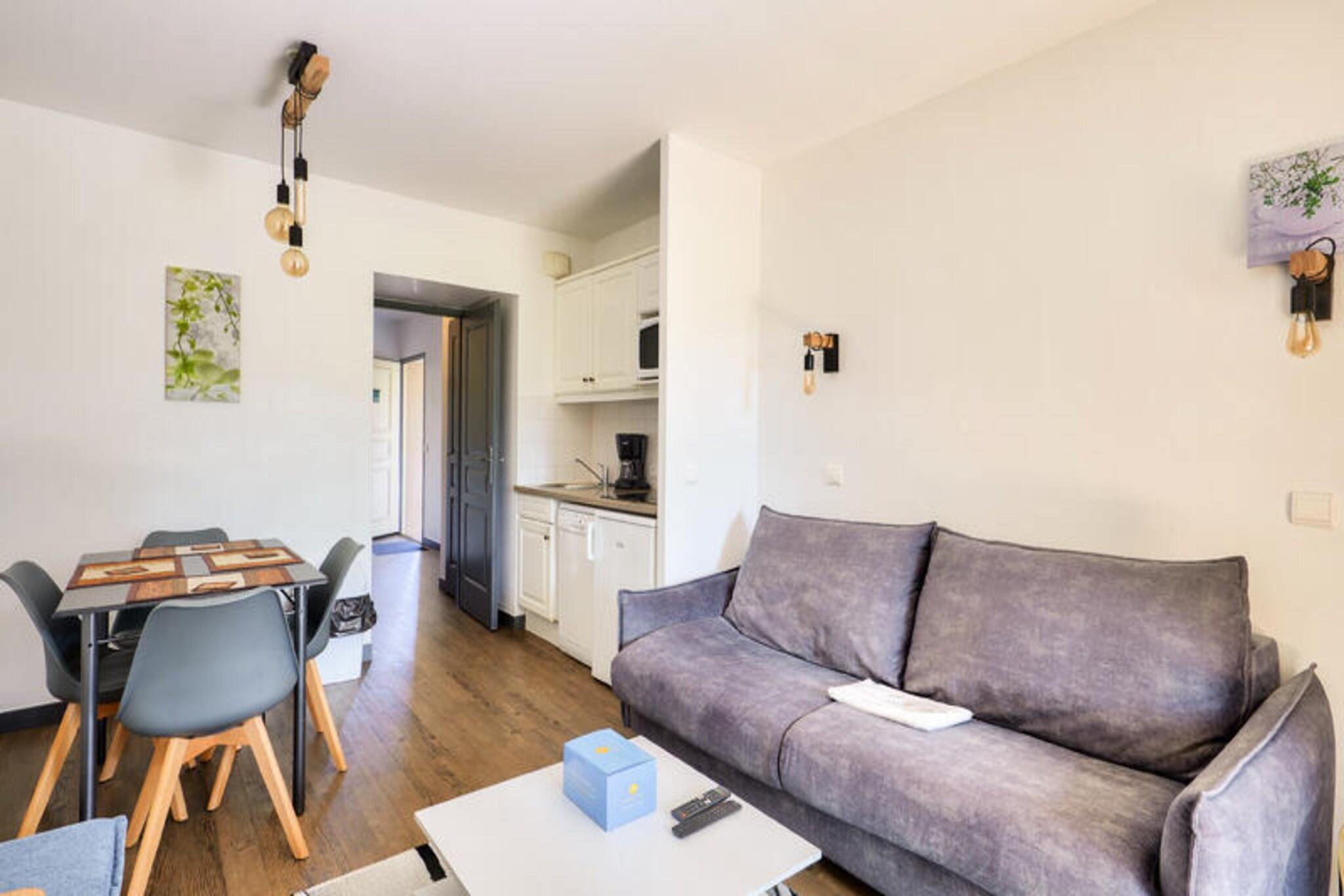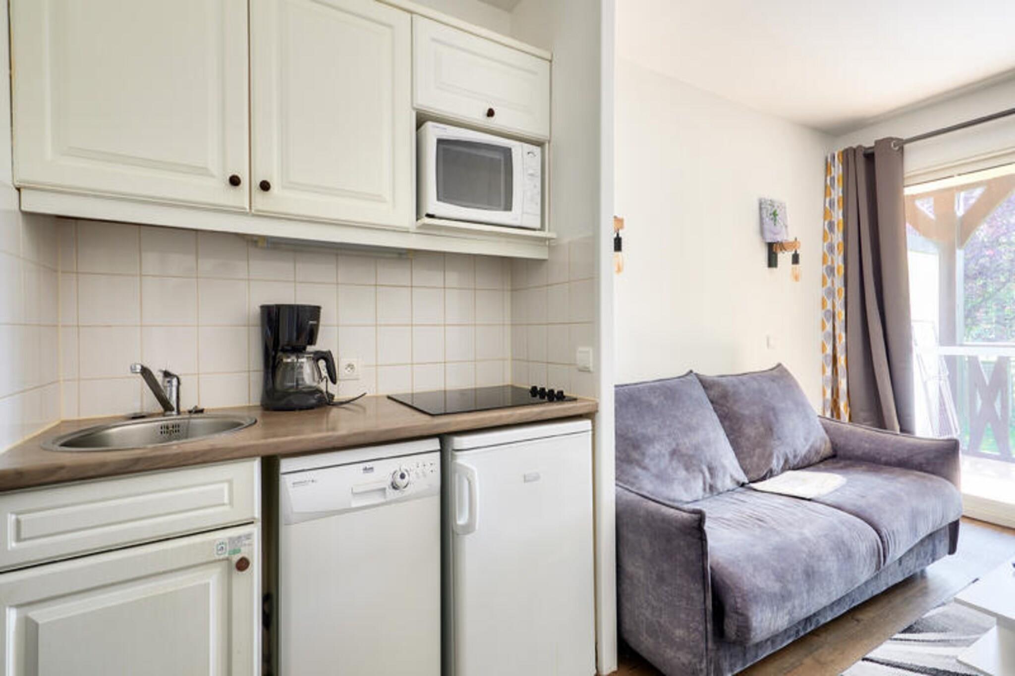 Denne charmerende lejlighed, beliggende i en bolig med traditionel normannisk arkitektur, tilbyder et fredeligt og behageligt tilflugtssted. Det har en stue med en sovesofa, der kan rumme op til 3 g?ster, og et sovev?relse med to enkeltsenge. Lejligheden er k?ledyrsvenlig (mod et till?gsgebyr) og inkluderer v?sentlige faciliteter s?som et fladsk?rms-tv og gratis tr?dl?s internetadgang. Lejen inkluderer ogs? en privat parkeringsplads, der sikrer bekvem adgang for g?ster med et k?ret?j. Boligen er ideelt beliggende i Deauville, kun 2,5 km fra den ber?mte "Planches"-promenade og t?t p? det ber?mte Casino Barri?re. G?sterne kan ogs? bes?ge Deauville-La Touques Hippodrome for sp?ndende hestev?ddel?b eller udforske det omkringliggende gr?nne milj?. Golfbanen, tennisbanerne og ridecentret tilbyder en r?kke udend?rs aktiviteter, hvilket g?r det til det perfekte sted for fritid og afslapning. Lejligheden har et veludstyret k?kken i amerikansk stil, ideelt til at tilberede m?ltider, og et badev?relse med badekar og elektrisk h?ndkl?det?rrer. Et separat toilet tilf?jer bekvemmelighed, og altanen byder p? en dejlig udsigt over golfbanen, perfekt til at nyde solnedgangen. Boligen har ogs? en opvarmet swimmingpool, der er tilg?ngelig fra maj til september.