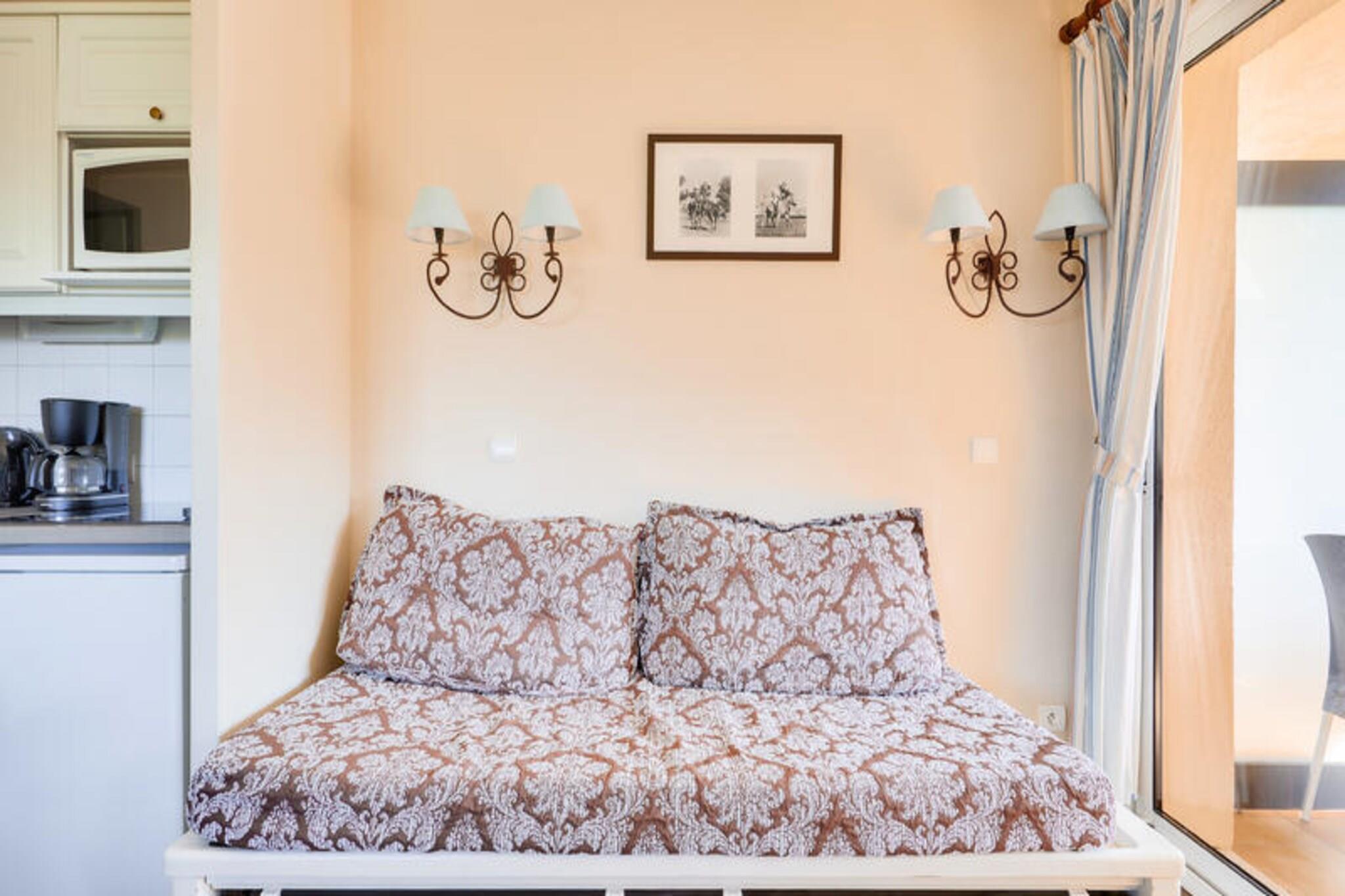 Denne 35 m² østvendte lejlighed tilbyder budgetvenlig indkvartering i en charmerende bolig med en swimmingpool (opvarmet og åben fra 1. maj til 15. september). Lejligheden har en balkon, en stue med en sovesofa, der kan sove tre gæster, et køkken (uden bord), et soveværelse med en dobbeltseng, et badeværelse og et separat toilet. Kæledyr kan tillades mod et ekstra gebyr (forespørgsel påkrævet). Beliggende på højderne af Deauville, i udkanten af ??Lucien Barrière-golfbanen, tilbyder denne bolig et roligt og grønt miljø. Deauville-La Touques Hippodrome (hestevæddeløbsbane) og den berømte Deauville "Planches" (strandpromenade) er begge inden for en 2,5 km afstand. Tilbring en aften på Casino Barrière, et af Frankrigs mest berømte kasinoer, som ligger i nærheden. Yderligere faciliteter til rådighed mod et ekstra gebyr omfatter Wi-Fi-adgang, sengetøj, håndklæder og slutrengøring. Der er gratis overdækket parkering på stedet. Bemærk, at denne Maeva Home Budget-ejendom tilbyder grundlæggende faciliteter og møbler til et budgetvenligt ophold.