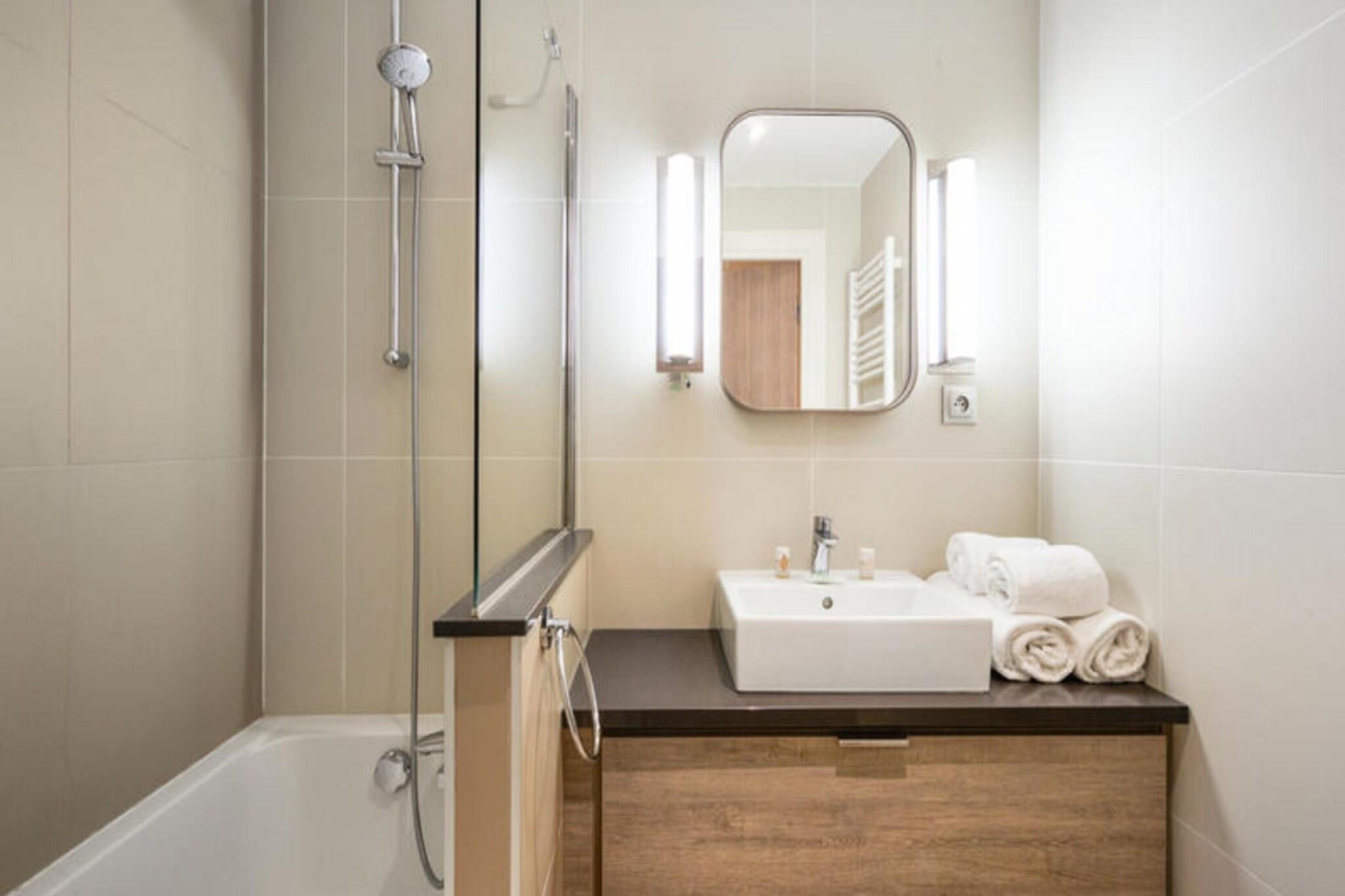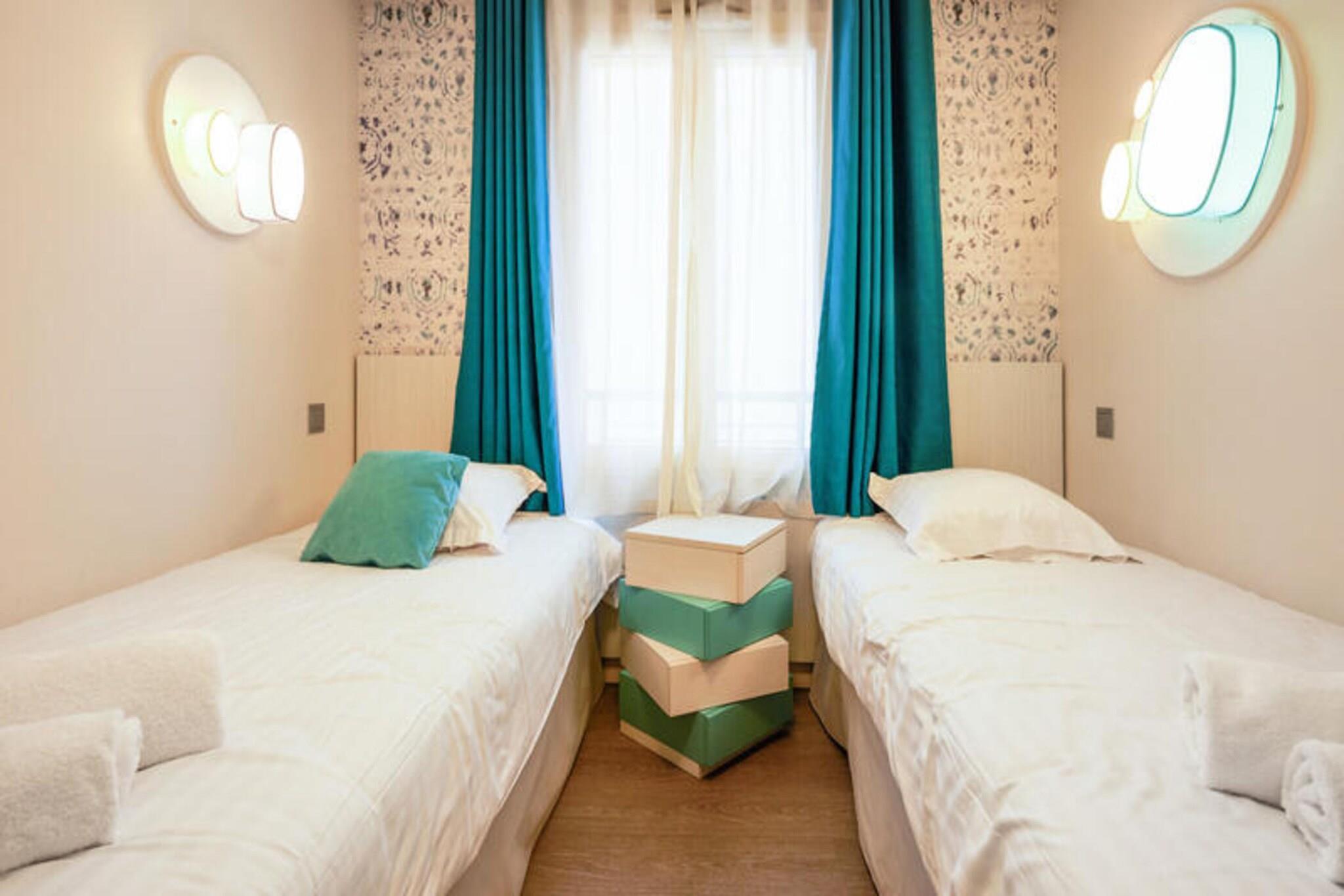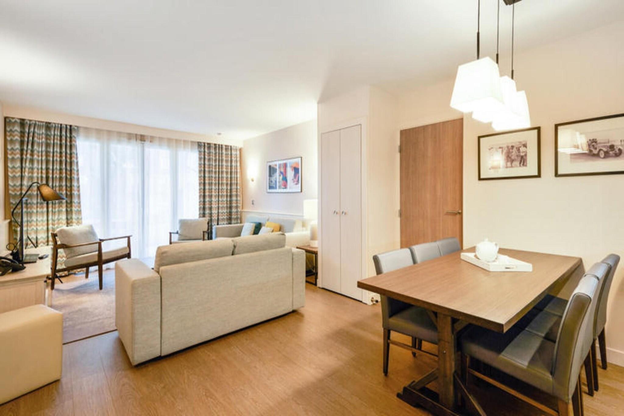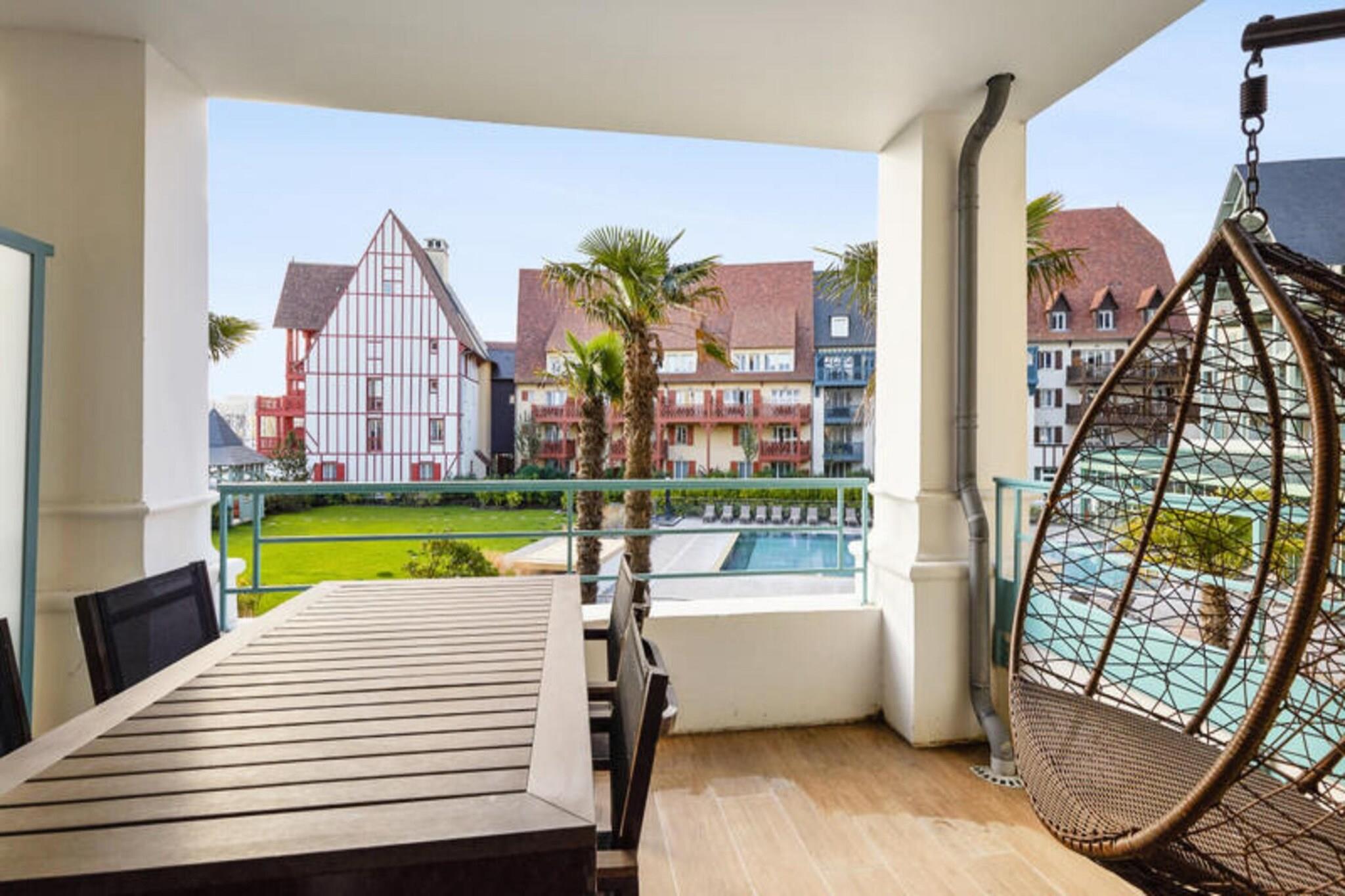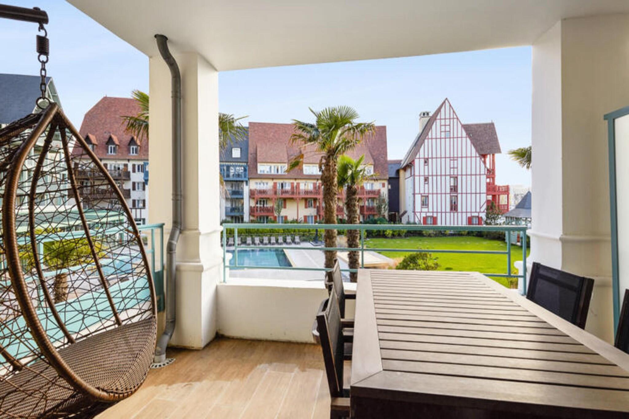 Denne rummelige lejlighed, beliggende mellem Deauville og Trouville, tilbyder et komfortabelt tilflugtssted for op til seks gæster. Opholdsområdet omfatter en sovesofa, mens de to soveværelser har en dobbeltseng og to enkeltsenge, hvilket sikrer en afslappende nat for alle. Lejligheden er kæledyrsvenlig, med et ekstra gebyr for at medbringe dine lodne ledsagere. Nyd moderne bekvemmeligheder såsom Wi-Fi, sengelinned og håndklæder, med slutrengøring tilgængelig mod et ekstra gebyr. En balkon eller terrasse giver et fredeligt udendørsområde til at slappe af og nyde udsigten. Ejendommen ligger 300 meter fra togstationen og tilbyder nem adgang til nærliggende attraktioner. Deauville resort, med golf, ridning og tennis, er en kort gåtur væk. Området byder på caféer, markeder og lokale retter, mens Deep Nature wellness-center, strand og kasino er også i nærheden. Lejligheden har et fuldt udstyret køkken med alt det nødvendige, såsom køleskab, komfur og opvaskemaskine, hvilket gør det nemt at tilberede dine egne måltider. Der er to badeværelser, det ene med badekar og det andet med bruser og toilet, plus et separat toilet for ekstra bekvemmelighed. Gæster kan også nyde adgang til faciliteterne på stedet, herunder en udendørs og indendørs swimmingpool, sauna og fitnessrum, perfekt til at slappe af efter en dag med sightseeing. Overdækket parkering er tilgængelig inden for boligen for dem, der rejser i bil.