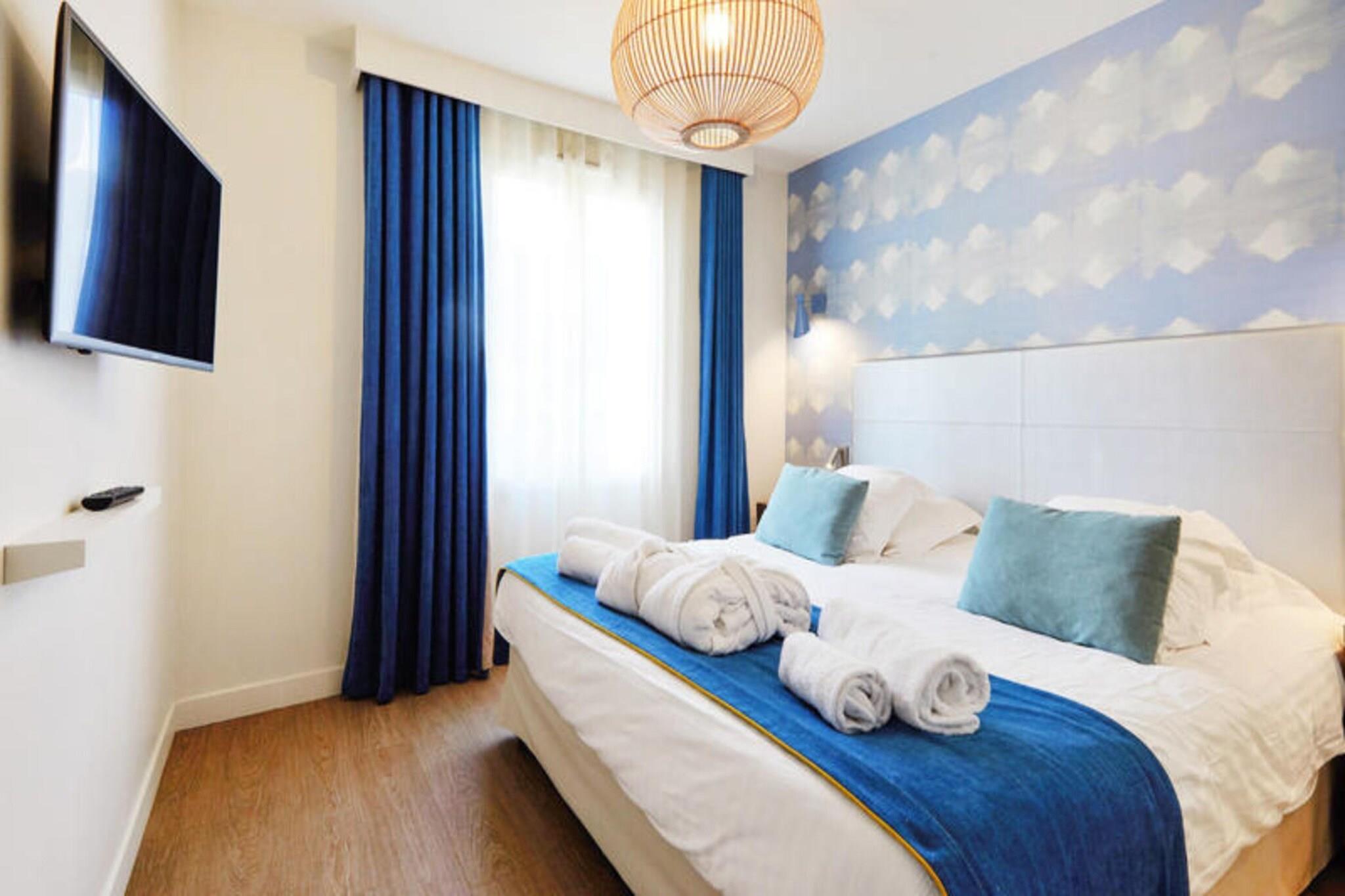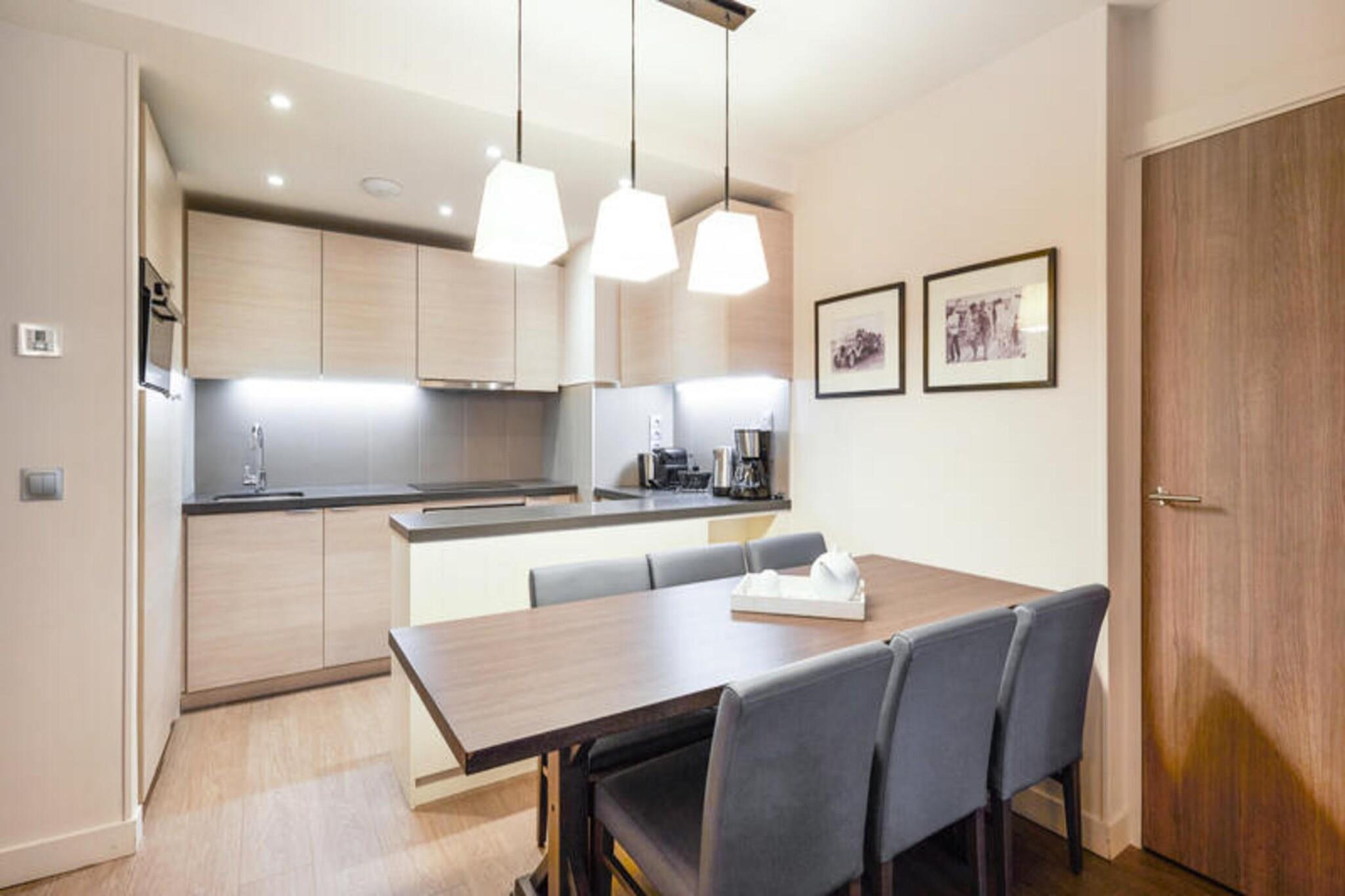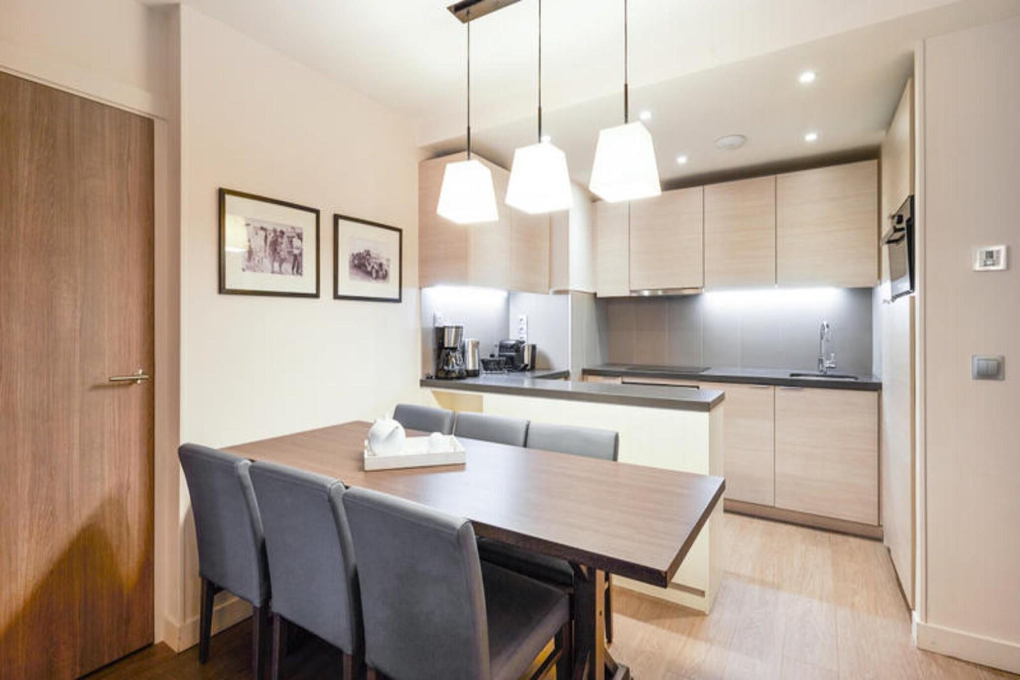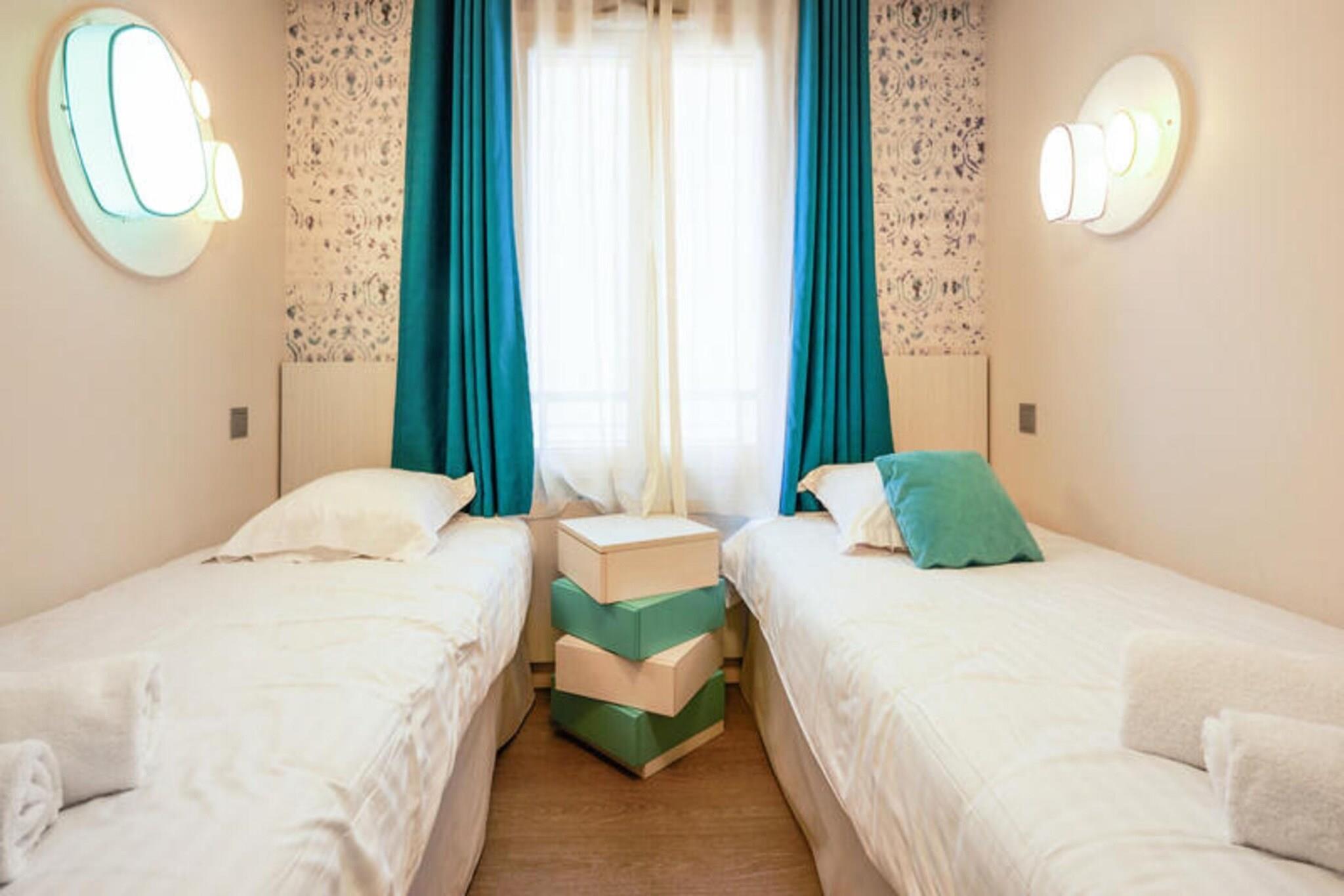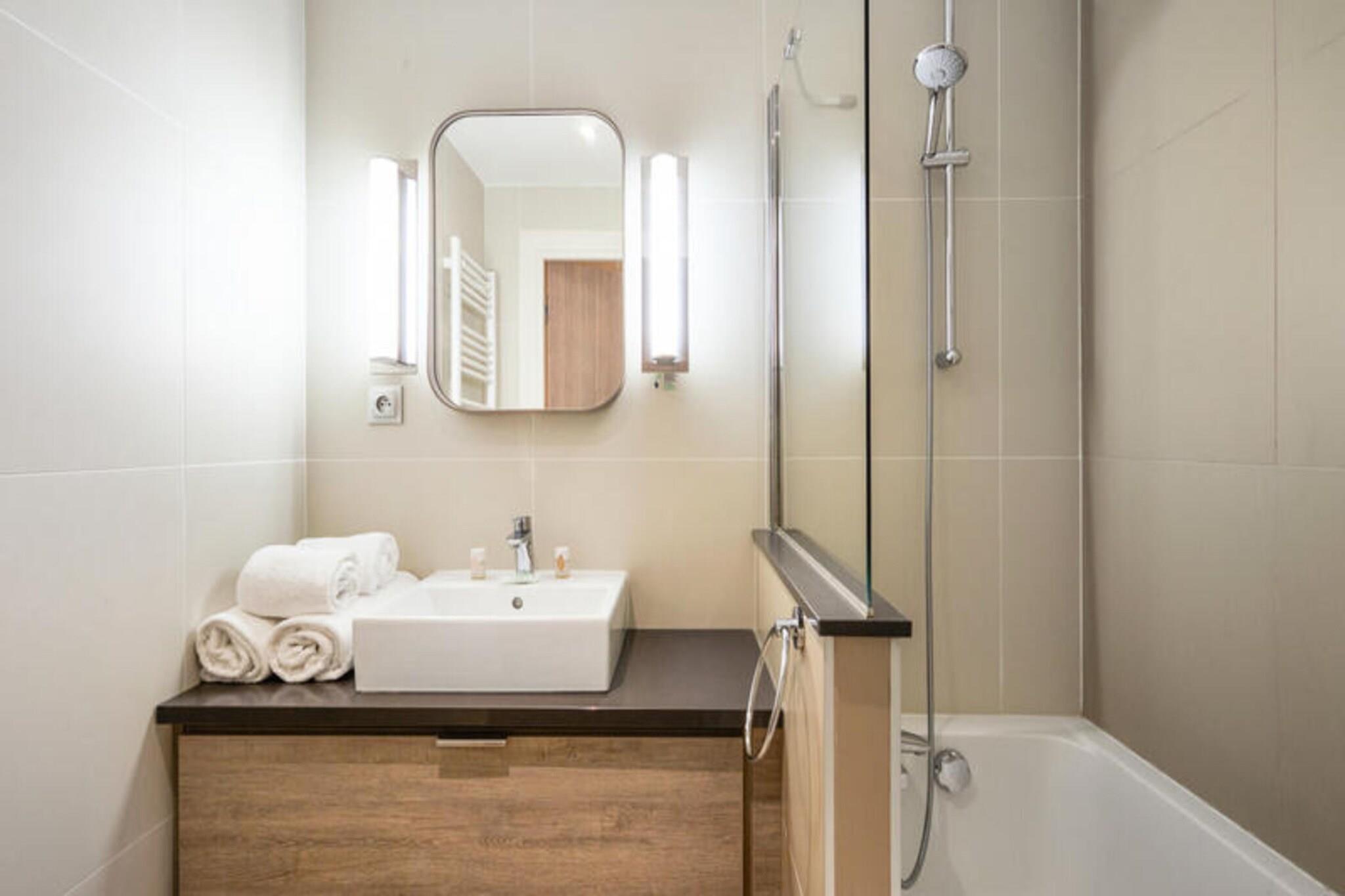 Denne rummelige lejlighed, beliggende mellem Deauville og Trouville, tilbyder et komfortabelt tilflugtssted for op til seks gæster. Opholdsområdet omfatter en sovesofa, mens de to soveværelser har en dobbeltseng og to enkeltsenge, hvilket sikrer en afslappende nat for alle. Lejligheden er kæledyrsvenlig, med et ekstra gebyr for at medbringe dine lodne ledsagere. Nyd moderne bekvemmeligheder såsom Wi-Fi, sengelinned og håndklæder, med slutrengøring tilgængelig mod et ekstra gebyr. En balkon eller terrasse giver et fredeligt udendørsområde til at slappe af og nyde udsigten. Ejendommen ligger 300 meter fra togstationen og tilbyder nem adgang til nærliggende attraktioner. Deauville resort, med golf, ridning og tennis, er en kort gåtur væk. Området byder på caféer, markeder og lokale retter, mens Deep Nature wellness-center, strand og kasino er også i nærheden. Lejligheden har et fuldt udstyret køkken med alt det nødvendige, såsom køleskab, komfur og opvaskemaskine, hvilket gør det nemt at tilberede dine egne måltider. Der er to badeværelser, det ene med badekar og det andet med bruser og toilet, plus et separat toilet for ekstra bekvemmelighed. Gæster kan også nyde adgang til faciliteterne på stedet, herunder en udendørs og indendørs swimmingpool, sauna og fitnessrum, perfekt til at slappe af efter en dag med sightseeing. Overdækket parkering er tilgængelig inden for boligen for dem, der rejser i bil.