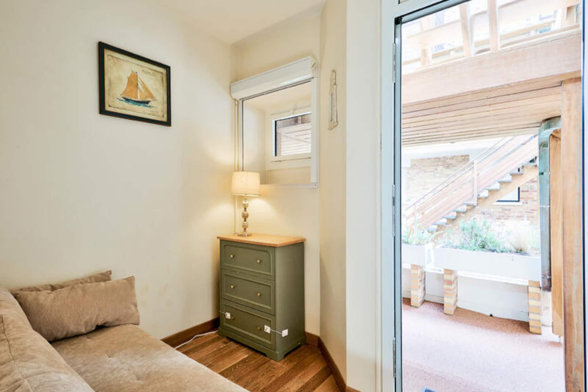 I det charmerende Port Deauville-distrikt tilbyder denne lejlighed i stueetagen et dejligt tilflugtssted, kun 500 meter fra sandstranden ved Deauville-stranden. Boligen er perfekt beliggende til en afslappende ferie ved havet og kombinerer bekvemmelighed med komfort, hvilket gør den til et ideelt valg for familier eller venner, der søger en afslappende ferie. Forestil dig at vågne op til den blide havbrise, træde ud på din private balkon og nyde den pulserende kystatmosfære, der omgiver dig. Med sin nærhed til byens centrum er du kun få øjeblikke fra Deauvilles berømte elegance og charme. \n\nLejligheden er designet til at rumme op til fem gæster og kan prale af en hyggelig stue med sovesofa, et fuldt udstyret køkken, et komfortabelt soveværelse med dobbeltseng og en sovealkove for ekstra privatliv. Moderne faciliteter såsom opvaskemaskine, mikrobølgeovn, kaffemaskine og Wi-Fi sikrer et stressfrit ophold, mens muligheden for yderligere tjenester som linned og rengøring giver fleksibilitet til dine ferieplaner. Offentlig parkering er tilgængelig, og boligen har en elevator og cykelopbevaring for ekstra bekvemmelighed. \n\nUdforsk de pulserende omgivelser med lethed. Stranden ligger en kort gåtur væk, mens nærliggende attraktioner omfatter Deauville International Centre, den berømte La Touques-væddeløbsbane og det termiske center, som alle ligger inden for gåafstand. For dem, der søger eventyr, tilbyder Caen Memorial og Arromanches Landing Beach fascinerende historiske udflugter kun en køretur væk. Golfentusiaster vil sætte pris på den nærliggende golfbane, mens tennis- og ridecentre tilbyder yderligere fritidsmuligheder. \n\nUanset om du er tiltrukket af Deauvilles sofistikerede charme, spændingen ved dens kulturelle og sportslige begivenheder eller blot roen ved havet, tilbyder denne lejlighed den perfekte base for at skabe uforglemmelige minder langs Normandiets kyst.