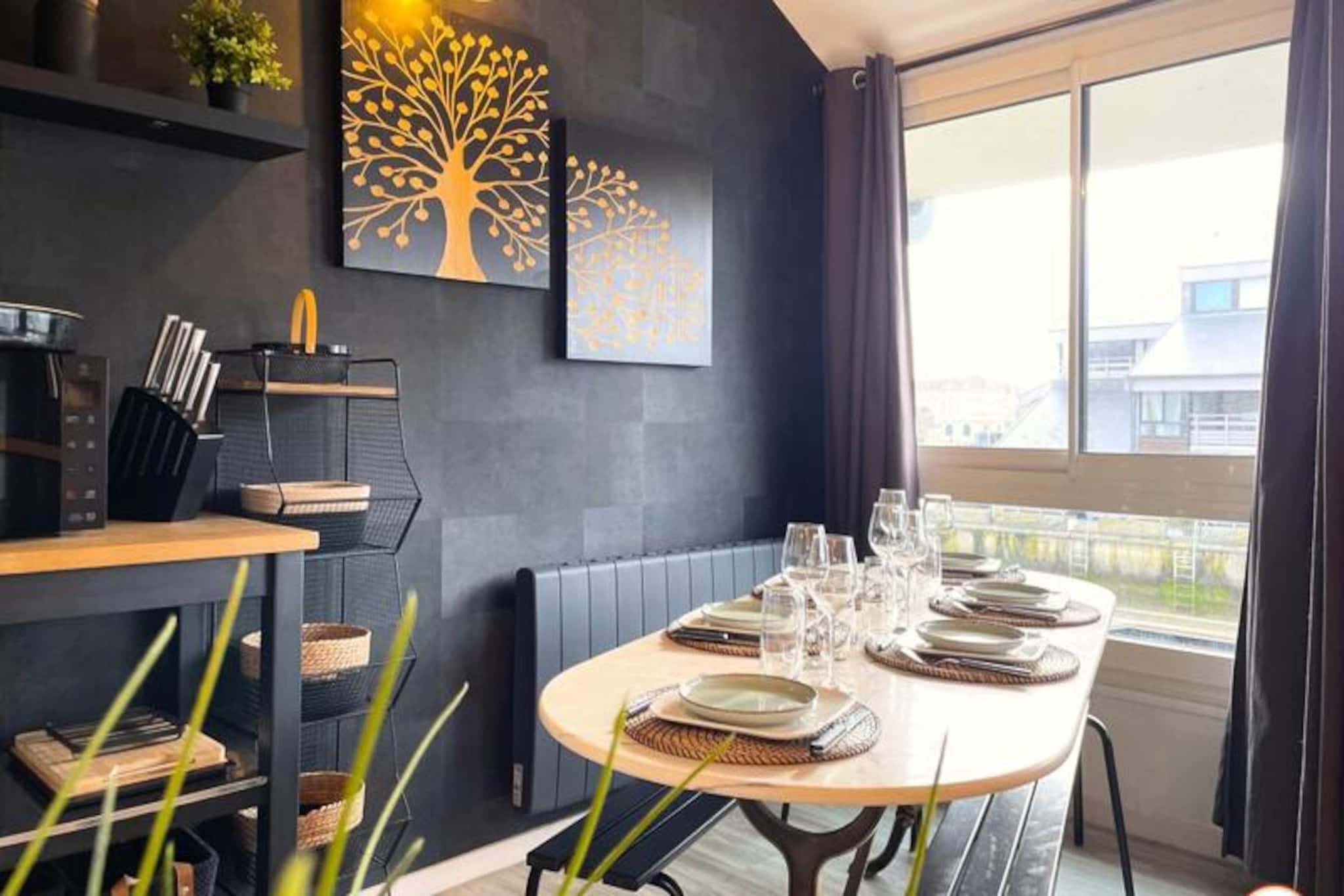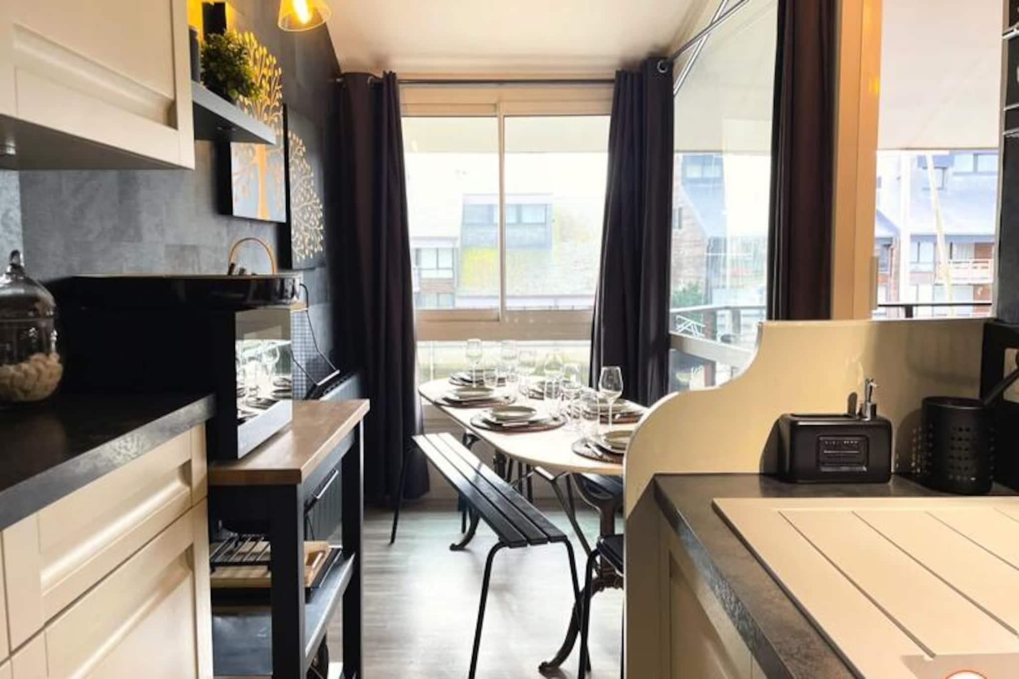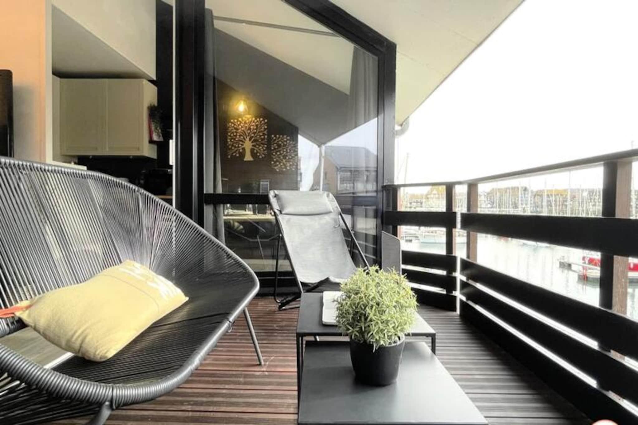 Med udsigt over det fredfyldte vand i Deauvilles ikoniske marina tilbyder 'The Black Pearl' en luksuriøs flugt i en af ??Normandiets mest fortryllende destinationer. Denne smukt renoverede triplex-lejlighed kombinerer moderne elegance med betagende udsigt og skaber en oase af ro kun få minutter fra det pulserende bycentrum og kasinoet. Forestil dig at nippe til kaffe på terrassen, mens marinaen vågner til live, eller slentre til den nærliggende strand for at sole dig i Deauvilles kystcharme. Denne ejendom har en perfekt beliggenhed og er ideel for dem, der søger både afslapning og eventyr. \n\nLejligheden er fordelt på tre etager og har komfortabel plads til op til seks gæster. I stueetagen åbner en rummelig stue med et Smart TV ud til en terrasse, der er møbleret til udendørs spisning og tilbyder panoramaudsigt over marinaen. Det fuldt udstyrede køkken, komplet med moderne apparater, flyder problemfrit over i en spisestue designet til hyggelige måltider. Første sal har et soveværelse med queensize-seng og udsigt over marinaens gårdhave, et åbent soveområde med en Murphy-seng af høj kvalitet og et elegant walk-in-brusebad. Loftsetagen kan prale af et soveværelse med kingsize-seng og eget bruseområde, der er tilgængeligt via en charmerende trappe. Hver eneste detalje er omhyggeligt udvalgt for at sikre komfort og stil. \n\nTræd udenfor, og du befinder dig kun fem minutters gang fra Deauvilles sandstrande, travle butikker og den livlige Place Morny. Togstationen og kasinoet er også inden for rækkevidde, hvilket gør denne beliggenhed lige så bekvem, som den er malerisk. Uanset om du udforsker lokale markeder, nyder udsøgte restauranter eller blot nyder kyststemningen, placerer 'The Black Pearl' dig i hjertet af det hele. \n\nVælg denne exceptionelle ejendom til din næste ferie, og oplev den perfekte blanding af luksus, beliggenhed og Normandiets tidløse charme.