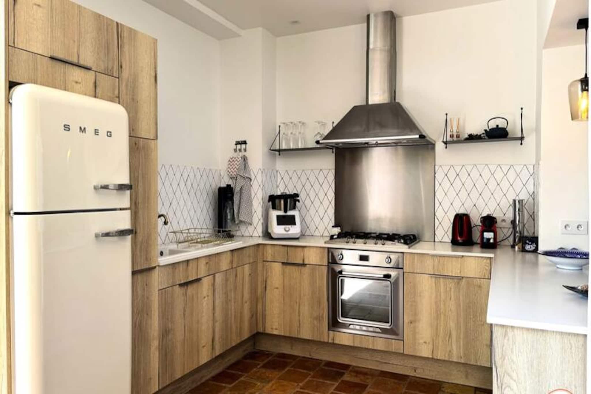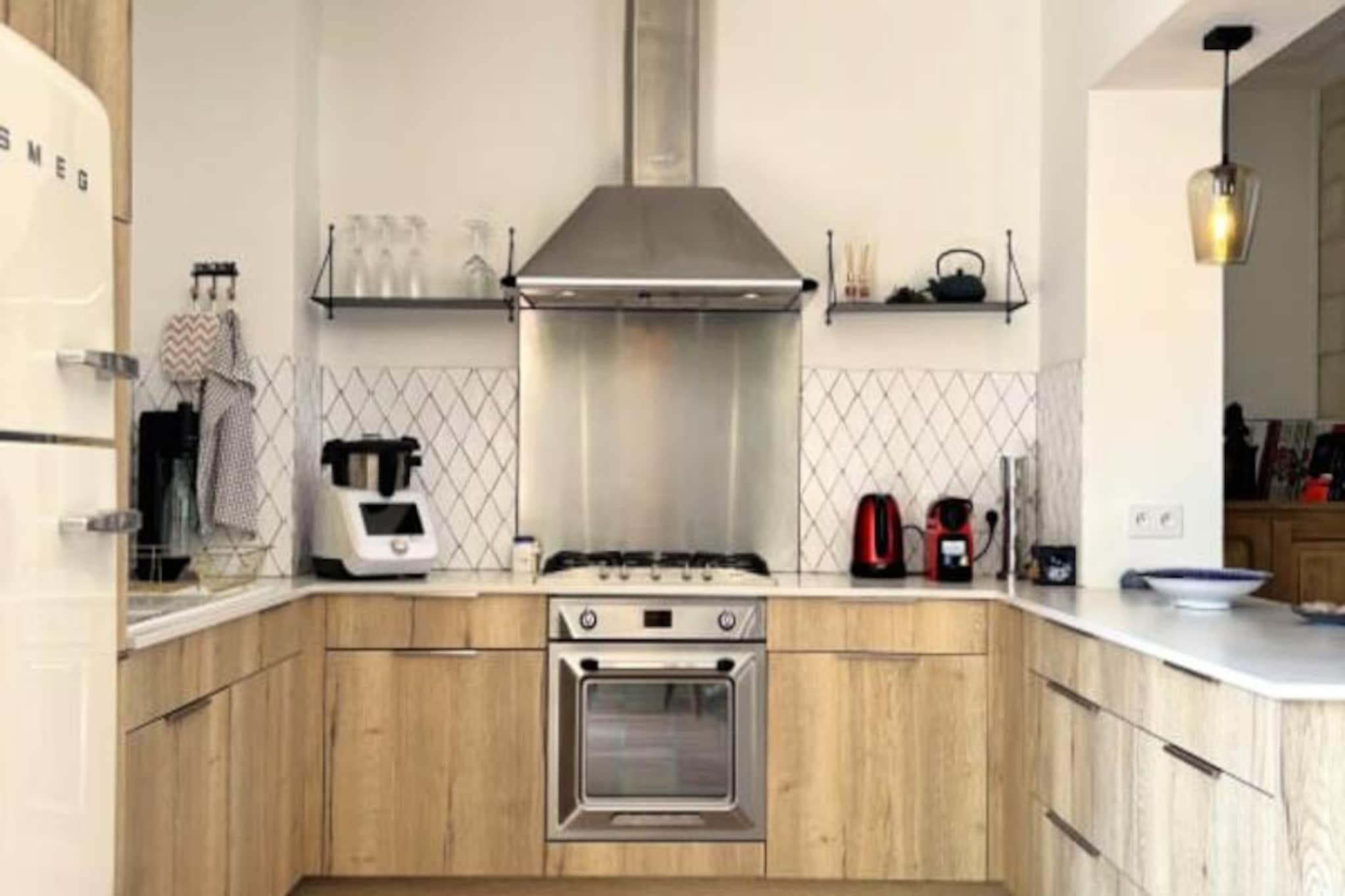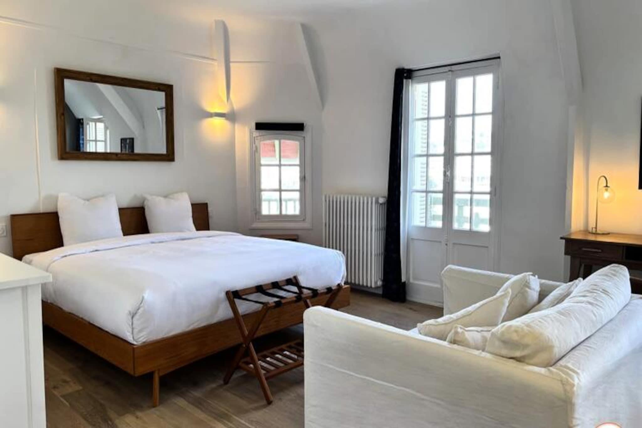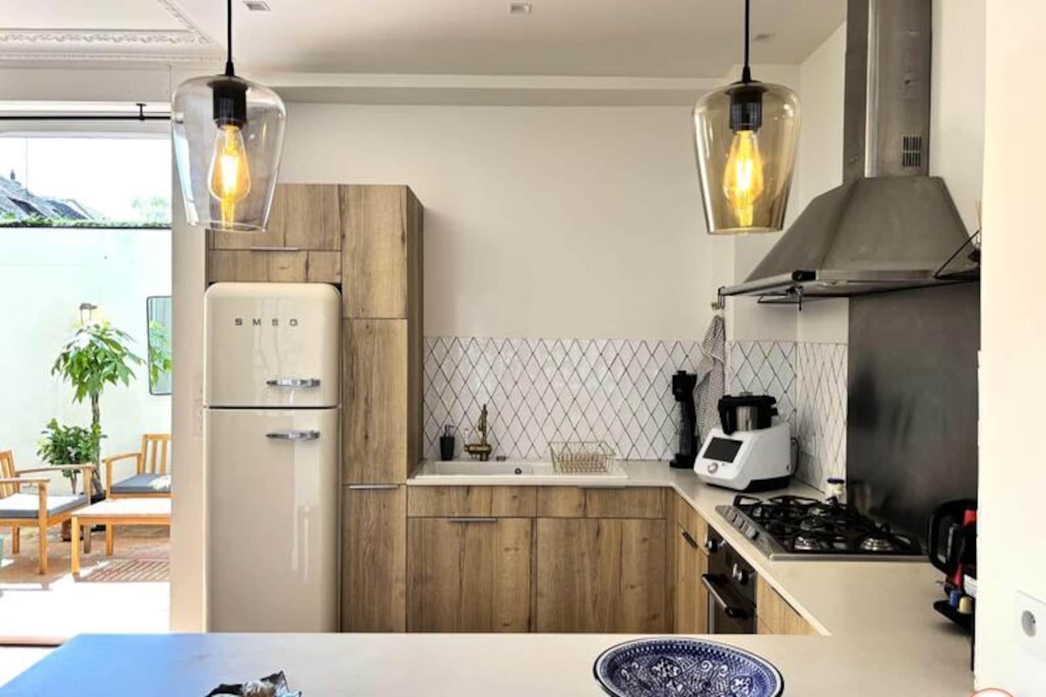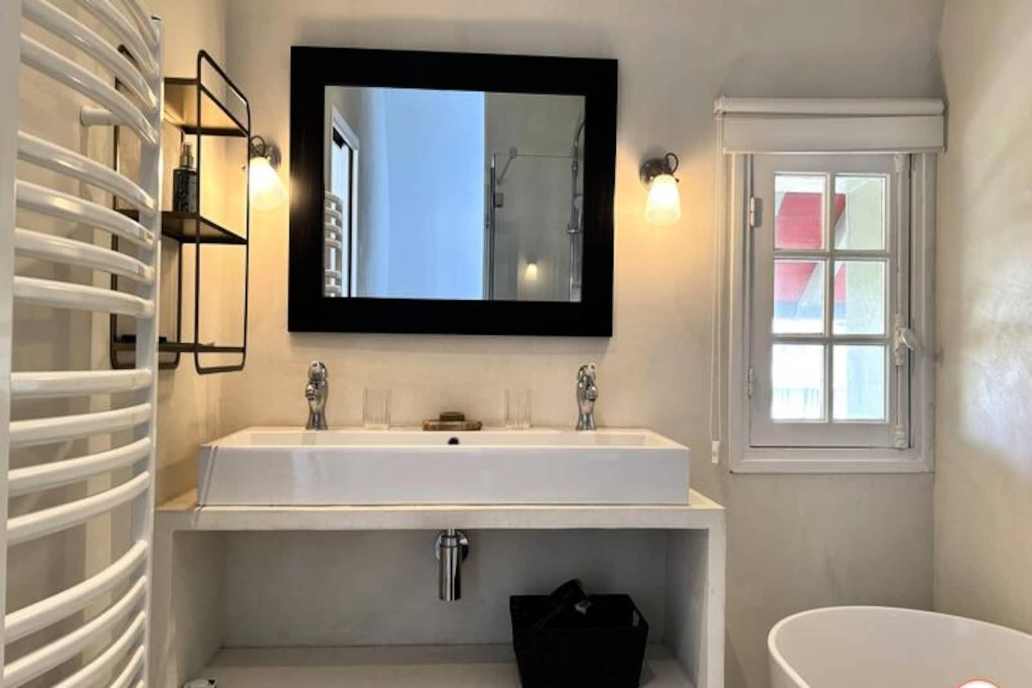 Hvor Normandiets charme møder Deauvilles elegance, inviterer La Villa Mirabeau dig til et uforglemmeligt ophold. Med udsigt over havet og den maleriske havneindsejling i Deauville-Trouville-sur-Mer blander dette fantastiske herregård traditionel normannisk arkitektur med moderne luksus. Fra de solbeskinnede balkoner til det afsondrede solarium er hvert hjørne af dette hjem designet til at fortrylle og inspirere. Uanset om du nipper til din kaffe, mens morgenlyset danser på bølgerne, eller slapper af i den hyggelige gårdhave, tilbyder La Villa Mirabeau en rolig tilflugtssted kun få skridt fra Deauvilles pulserende hjerte. Denne karakteristiske villa, der strækker sig over tre etager, har komfortabel plads til op til 8 gæster. Stueetagen kan prale af en rummelig stue med en monumental pejs, perfekt til hyggelige aftener, og et åbent køkken udstyret med high-end apparater som et SMEG-køleskab og en Nespresso-maskine. Ovenpå finder du et afslapningsområde med sovesofa og tv, en master suite med betagende udsigt over havnen og et mindre soveværelse med eget brusebad. Øverste etage er en oase af luksus med endnu en master suite med panoramaudsigt, et privat badeværelse med bruseniche og badekar samt adgang til et afsidesliggende solarium for ultimativ afslapning. Alle værelser, undtagen ét, har en privat balkon, hvor man kan nyde kystens skønhed. Villaen ligger i hjertet af Deauville, kun 3 minutters gang fra stranden og dens ikoniske strandpromenade, 5 minutters gang fra det livlige bycentrum og under 10 minutter fra togstationen. I nærheden kan du udforske det travle fiskemarked, Barrière Casinos og en række berømte restauranter og kunstgallerier. For dem, der søger både ro og spænding, er denne beliggenhed uovertruffen. Uanset om du er her for at forkæle dig selv med Deauvilles elegante livsstil, udforske den naturskønne Normandiskyst eller blot slappe af i et hjem, der føles som et privat tilflugtssted, lover La Villa Mirabeau et ophold fyldt med elegance, komfort og uforglemmelige minder.