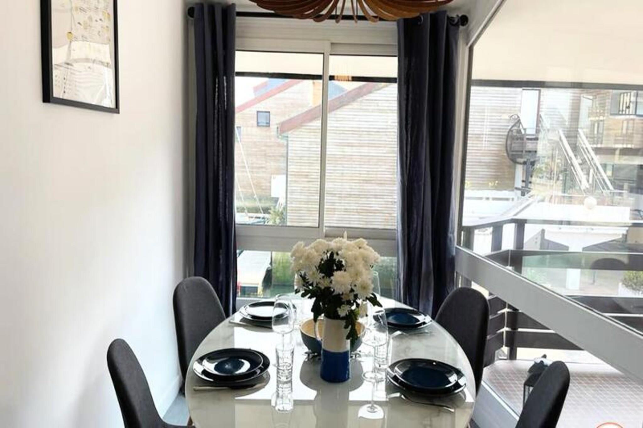 Denne fremragende, nyrenoverede duplex lejlighed i hjertet af Deauvilles lystbådehavne kan rumme op til fire gæster. Den har en queen-size seng (160x200 cm) i det ene soveværelse og en 140x200 cm seng i det andet. Mezzaninen er ikke tilgængelig af sikkerhedsmæssige årsager. Politikker for kæledyr er ikke specificeret. Der kræves et depositum på EURO2000. Beliggende kun 5 minutters gang fra stranden, butikkerne, Place Morny og 10 minutters gang fra SNCF-stationen og kasinoet, tilbyder dette feriehus en idyllisk beliggenhed. Det giver rolige omgivelser i marinaerne, mens det stadig er tæt på Deauvilles attraktioner. Lejligheden byder på opholdsstue med terrasse med udsigt til lystbådehavnen, køkken med udgang til stuen med smart-tv (med Netflix), spisebord, to soveværelser, badeværelse med bruser og vaskemaskine samt separat toilet. Senge- og håndklæder, gratis trådløs internetadgang, strygejern/strygebræt og opvaskemaskine er til rådighed. Morgenmad er ikke inkluderet. Indtjekning er mellem kl. og kl. (gebyrer for sen indtjekning efter kl. 20.30, og indtjekning er ikke muligt efter kl. 22.30). Udtjekning er mellem kl. 8.00 og 11.00. Støj skal begrænses mellem kl. 22.00. og kl. 07.00, og der er ingen fester. En opgørelse og fotoopgørelse vil blive taget inden ankomst. Ekstra gæster ud over reservationen vil blive opkrævet EURO100/person/nat.