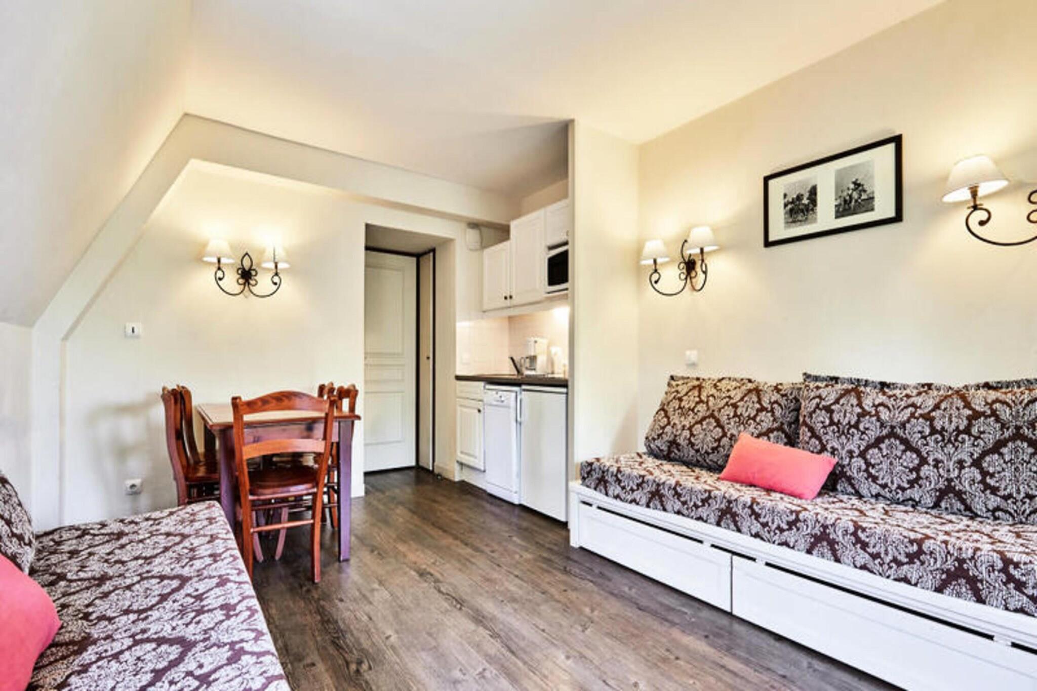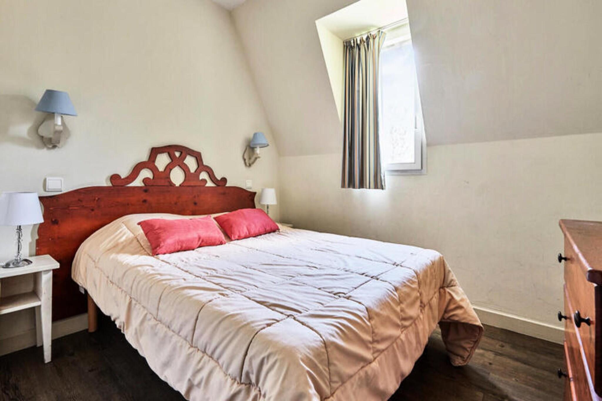 Denne charmerende 2-v?relses lejlighed, ideel til op til fire g?ster, ligger i et fredeligt omr?de p? kanten af ??Golf Barri?re de Deauville. Det har en komfortabel stue, et separat sovev?relse med en dobbeltseng og et badev?relse med toilet. K?ledyr er tilladt mod et till?gsgebyr, og g?sterne kan nyde den friske luft p? balkonen. Lejligheden har v?sentlige faciliteter s?som Wi-Fi (mod et ekstra gebyr), et fjernsyn og parkering. Ejendommen ligger kun 2,5 km fra stranden, hvor du kan nyde den ber?mte kystlinje og Deauvilles livlige atmosf?re. I n?rheden finder du en r?kke caf?er, markeder og lokale attraktioner. Til afslapning ligger Thalasso Deauville kun 2 km v?k. Om sommeren kan g?sterne benytte den opvarmede udend?rs swimmingpool, der er ?ben fra maj til september, samt et spabad og et b?rnebassin. Lejligheden har et fuldt udstyret k?kken, s? du nemt kan tilberede m?ltider. Et separat badev?relse og toilet tilbyder bekvemmelighed og privatliv. Yderligere tjenester, s?som sengelinned og slutreng?ring, er tilg?ngelige mod et ekstra gebyr, hvilket sikrer et behageligt og problemfrit ophold.