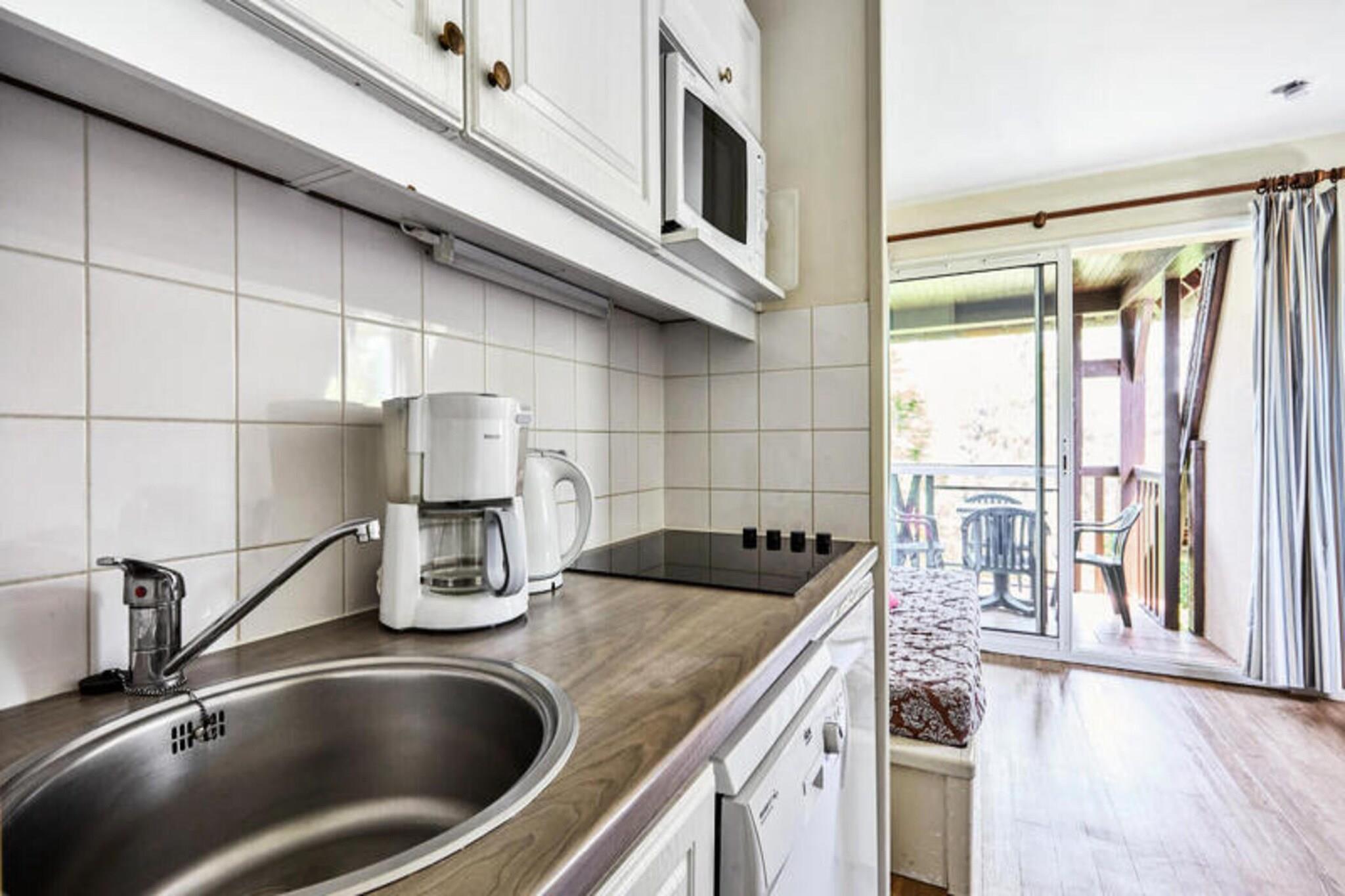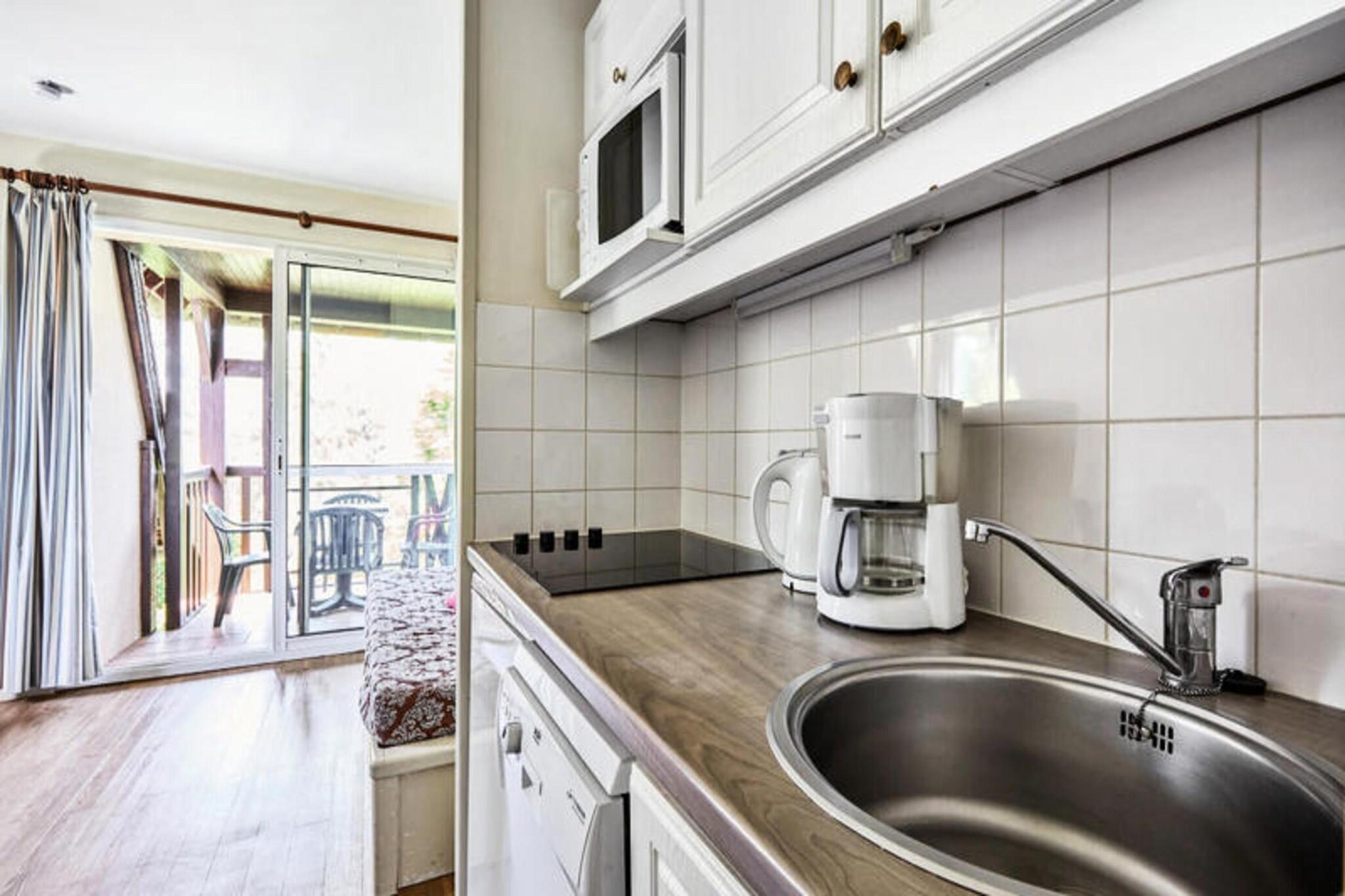 Denne hyggelige 2-v?relses lejlighed, beliggende i et fredeligt omr?de, tilbyder komfortabel indkvartering for op til 5 personer. Det har en stue, et sovev?relse med en seng til to og en sovesofa samt et badev?relse med toilet. Ejendommen er k?ledyrsvenlig med et till?gsgebyr for k?ledyr. G?sterne kan nyde en privat balkon, en opvarmet udend?rs swimmingpool og et spabad tilg?ngeligt fra 1. maj til 15. september. Parkering p? stedet er tilg?ngelig, og lejligheden er udstyret med de n?dvendige faciliteter til et afslappende ophold. Reng?ring er tilg?ngelig mod et ekstra gebyr. Boligen er ideelt beliggende, kun 2,5 km fra stranden og inden for r?kkevidde af Golf Barri?re de Deauville. G?sterne kan nyde den smukke C?te Fleurie, der er ber?mt for sine strande og surfingsteder. En bred vifte af aktiviteter og tjenester er tilg?ngelige p? stedet, herunder adgang til et thalassoterapicenter, der ligger cirka 2 km v?k. Omr?det er roligt, hvilket g?r det perfekt til en afslappende ferie, men alligevel byder det p? masser af n?rliggende attraktioner, herunder butikker, caf?er og lokale markeder. Inde i lejligheden finder du et fuldt udstyret k?kken med vigtige apparater, herunder k?leskab, mikroovn og ovn. Badev?relset har bruser, og lejligheden tilbyder Wifi-adgang mod et till?gsgebyr. Sengelinned, h?ndkl?der og slutreng?ring er tilg?ngelige mod et ekstra gebyr. Et babys?t med forskelligt udstyr kan leveres efter anmodning, afh?ngigt af tilg?ngelighed.