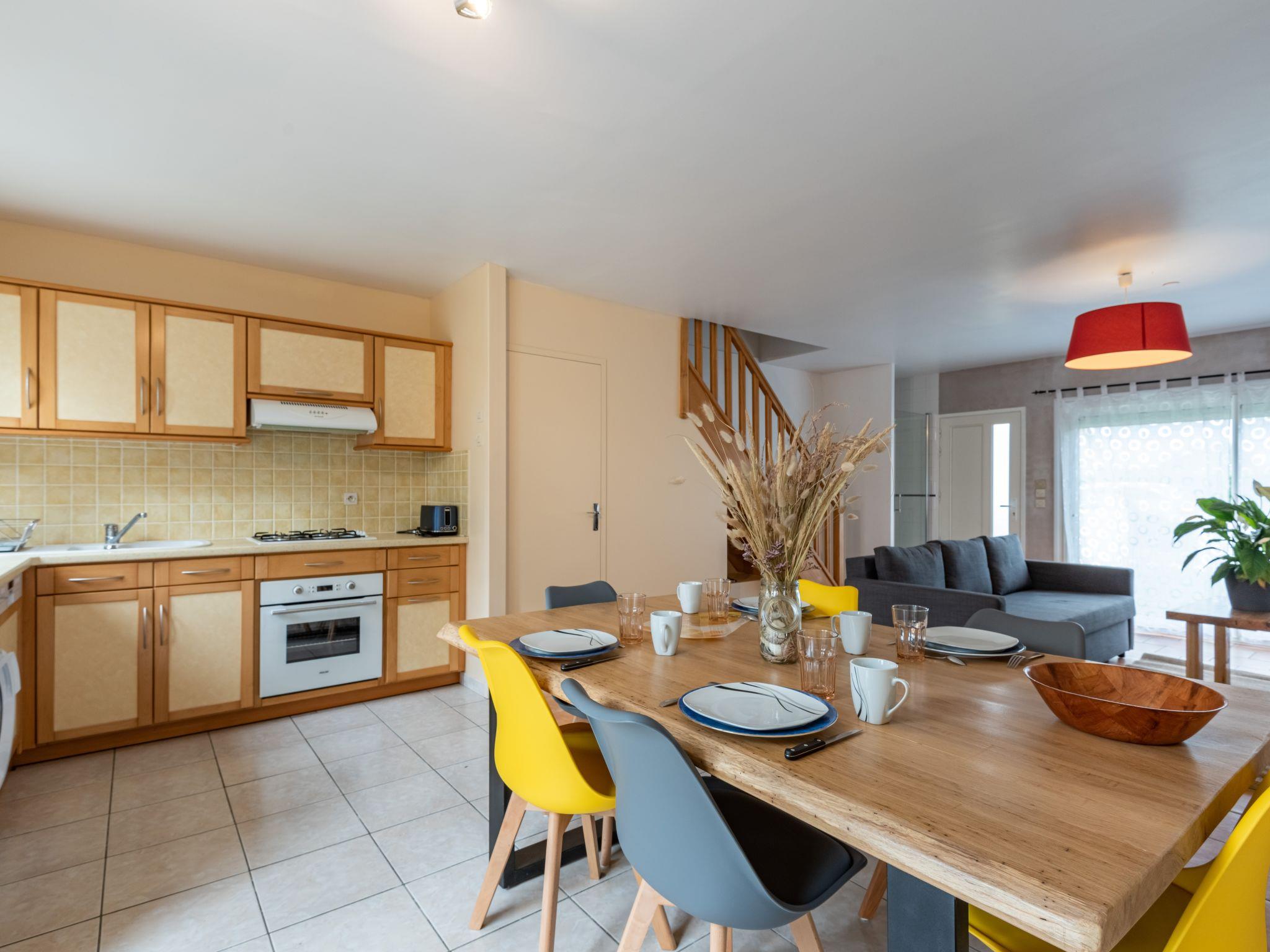4-room terraced house 80 m2 on 2 levels. Comfortable and beautiful furnishings: living/dining room with kitchen corner and satellite TV (flat screen). Exit to the terrace. Open kitchen (oven, dishwasher, 4 gas rings, toaster, kettle, electric coffee machine). Shower/WC. Upper floor: 1 room with sloping ceilings with 1 french bed (140 cm, length 190 cm). 1 room with sloping ceilings with 1 french bed (160 cm, length 200 cm). 1 room with sloping ceilings with 1 x 2 bunk beds (90 cm, length 190 cm). Terrace. Terrace furniture. Facilities: washing machine, baby cot. Internet (WiFi, free). Please note: non-smoking house. Maximum 1 pet/ dog allowed. Smoke alarm.