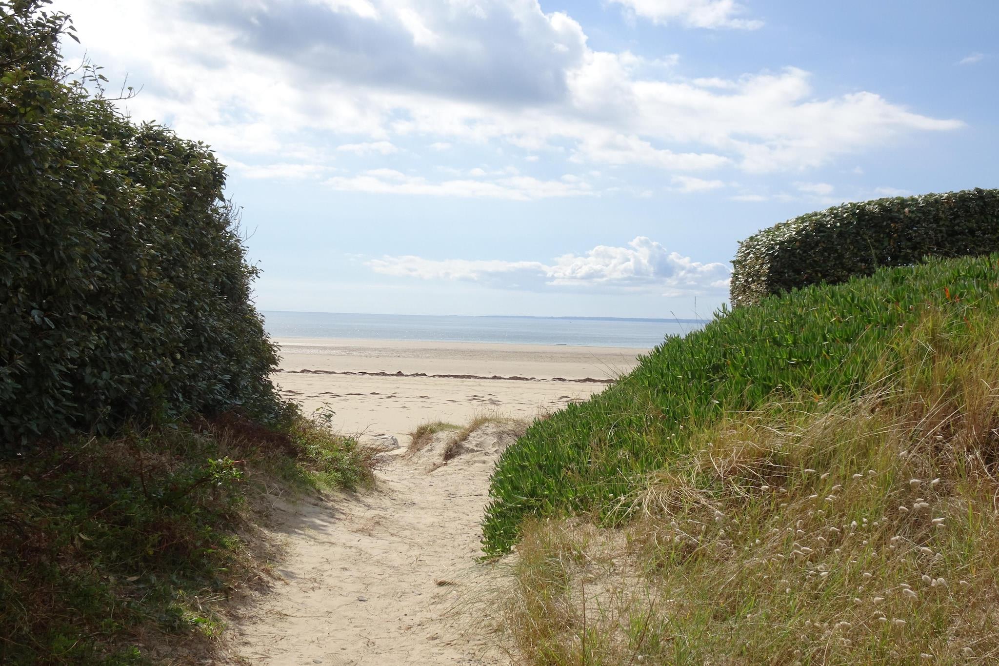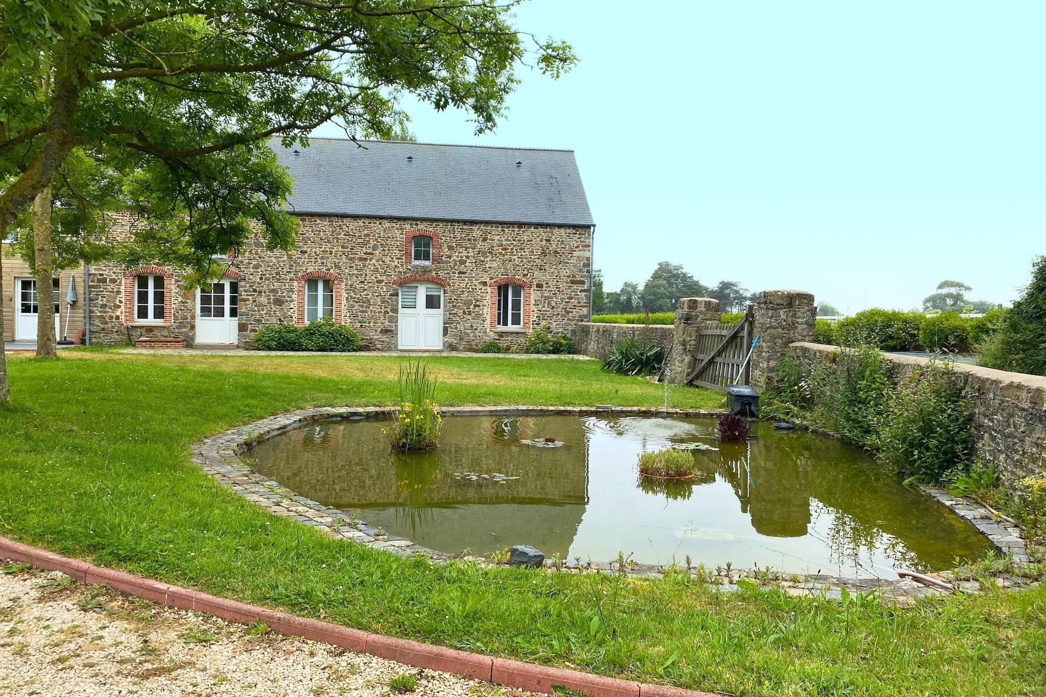 Dette rækkehus ligger på en idyllisk grund, mellem land og hav.Du kan nyde roen i landskabet og det omkringliggende grønne område, mens du er mindre end 3 km fra en pragtfuld hvid sandstrand. Ejeren, en hestetræner, lod bygge dette hus på stedet for et gammelt vognskur, på gavlen af et smukt stenhus. Layoutet giver alle moderne bekvemmeligheder, samtidig med at visse elementer af den oprindelige bygning bibeholdes. I stueplan en skøn stue med brændeovn og opholdsstue. På 1. sal en stor mezzanin indrettet med 2 separate soveområder, adskilt af et gardin. Bemærk venligst, at loftshøjden er reduceret i niveau med pladsen på de to enkeltsenge (1,50 m - 1,75 m) og i niveau med pladsen på dobbeltsengen (1,80 m - 1,90 m ). Haven foran huset, med den smukke fiskedam, er helt forbeholdt dig. Havedelen på bagsiden af huset deles med de diskrete ejere og har badmintonnet, trampolin og legeplads for børn. Besøget af det nærliggende stutteri er muligt efter anmodning, og en boks er gratis tilgængelig til 2 heste.