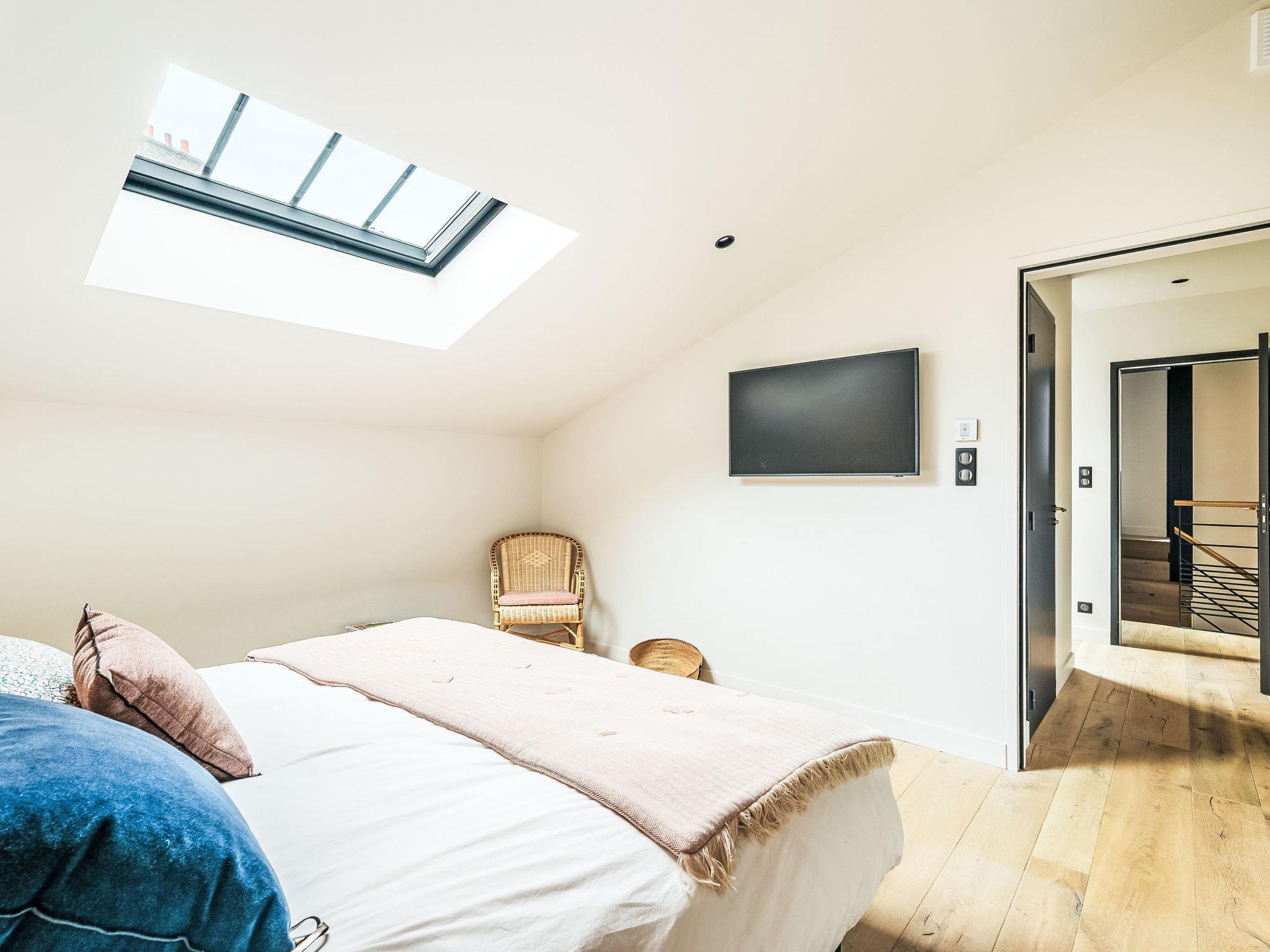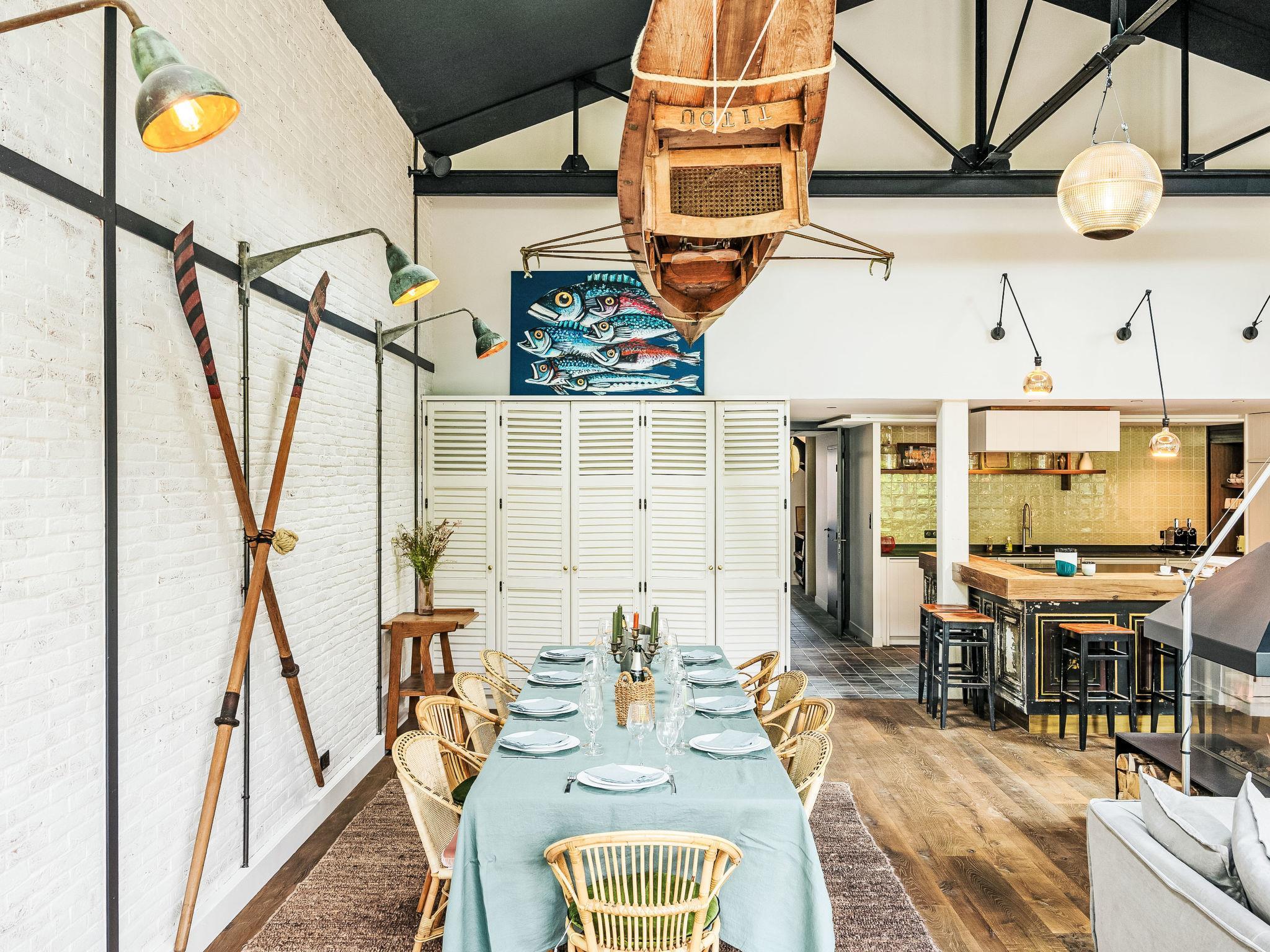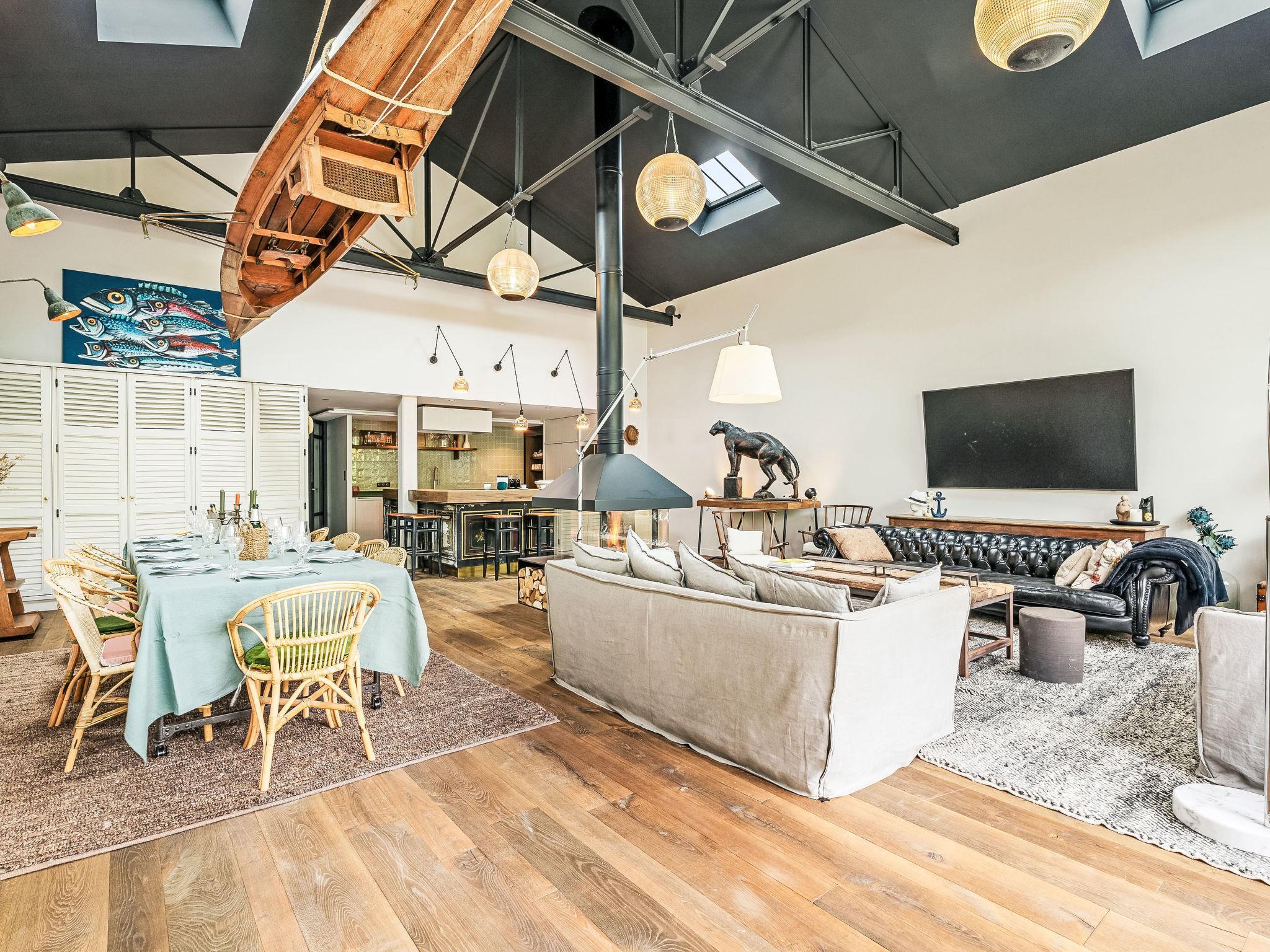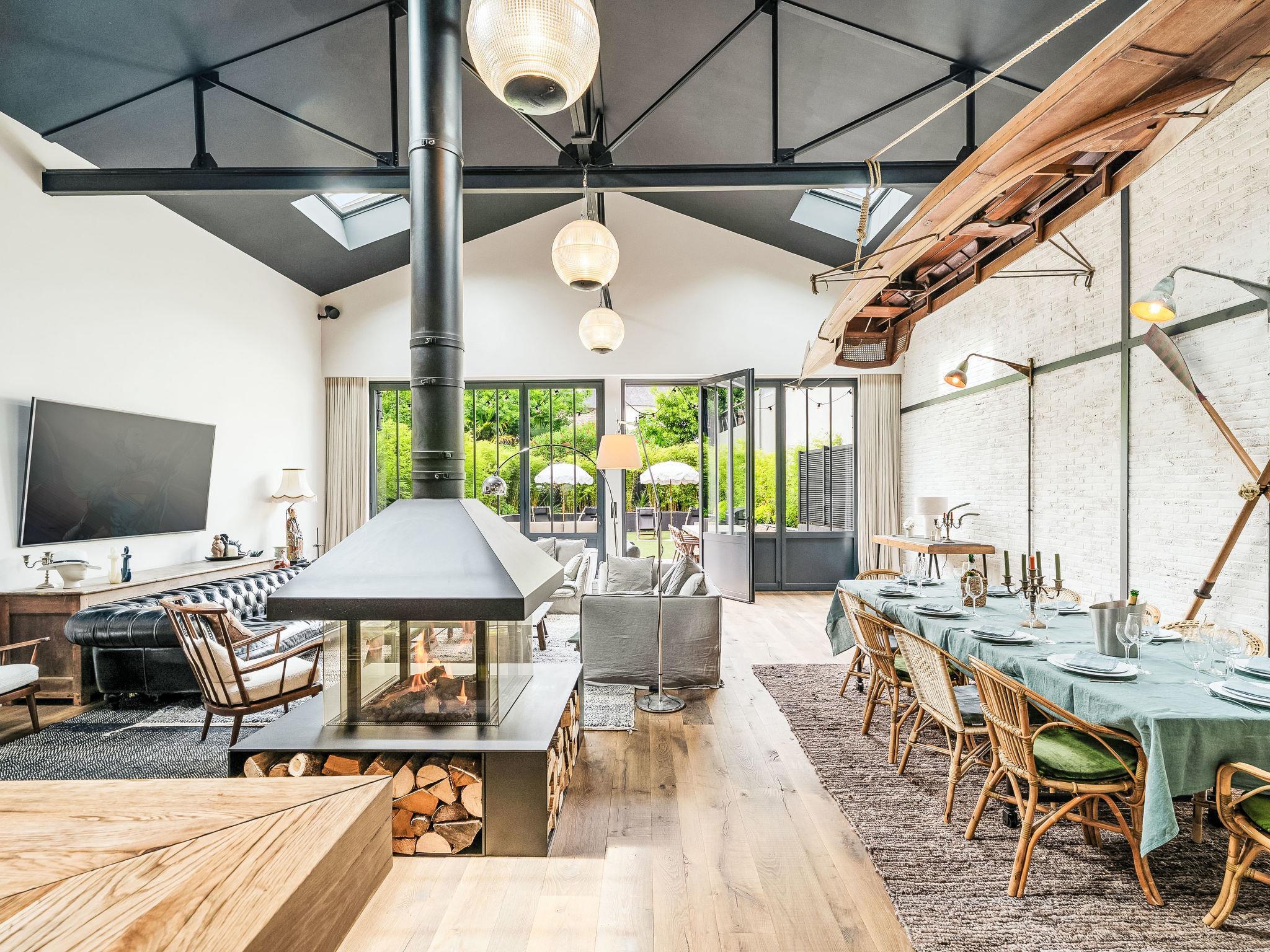 7-room Loft 280 m2 on 2 levels. Very modern and tasteful furnishings: living/dining room 100 m2 with open-hearth fireplace and TV (flat screen), Home cinema air conditioning and electric shutters. Exit to the garden, to the terrace. 1 room with 1 french bed (180 cm, length 200 cm), TV (flat screen). Open kitchen (oven, dishwasher, 4 induction hot plates, toaster, kettle, microwave, freezer, electric coffee machine, Capsules for coffee machine (Nespresso) extra, cooking island). Shower, sep. WC. Air-conditioning, underfloor heating. Upper floor: 1 room with 1 bed (180 cm, length 200 cm), 1 x 2 bunk beds (90 cm, length 190 cm), TV (flat screen). 2 rooms, each room with 1 french bed (1 x 180 cm, length 200 cm), shower/WC and TV (flat screen). 1 room with 1 french bed (180 cm, length 200 cm). Bath/WC. Air-conditioning, underfloor heating. Terrace 25 m2, south facing position, garden 300 m2, south facing position. Terrace furniture, barbecue, deck chairs. Facilities: washing machine, dryer, iron, hair dryer. Internet (WiFi, free). Garage (2 cars). E-charging station. Please note: non-smokers only. Maximum 1 small pet/ dog allowed. Smoke alarm. Offer by a private individual according to Art. 155, IV of CGI.