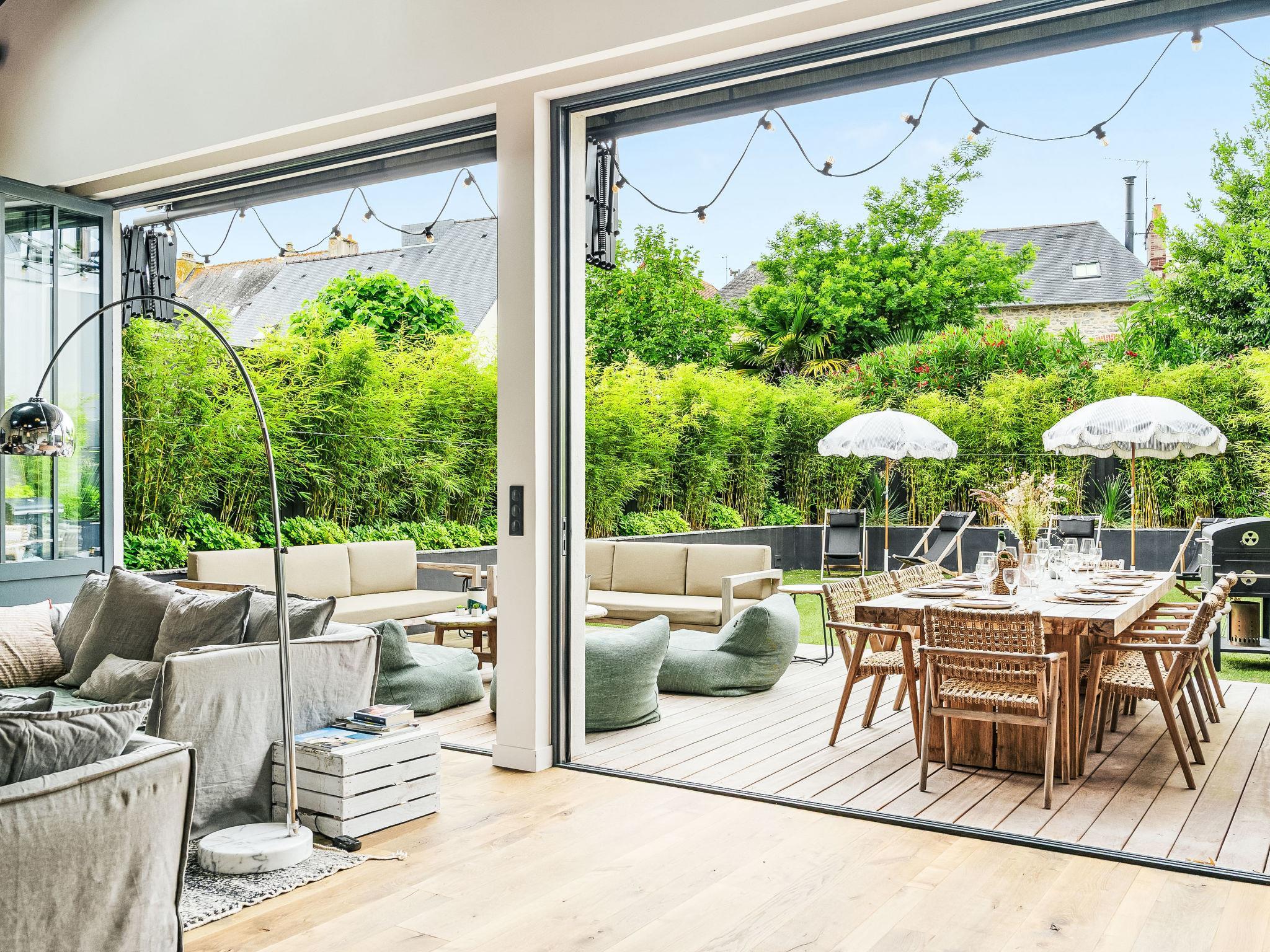 Very beautiful single-family house "EDEN VERDE". In the resort, on a main road. Private: property, garden 300 m2. Shop, supermarket, restaurant, bakery 150 m, bus stop 500 m, railway station "St Malo" 12 km, sandy beach "L'écluse", thermal baths 1.9 km. Sports harbour 2.5 km, golf course (18 hole) 6 km, sailing school 700 m, riding stable 2 km. Nearby attractions: Cancale 23 km, Dinan 26 km, Mont St Michel 57 km, Cap Fréhel 35 km.