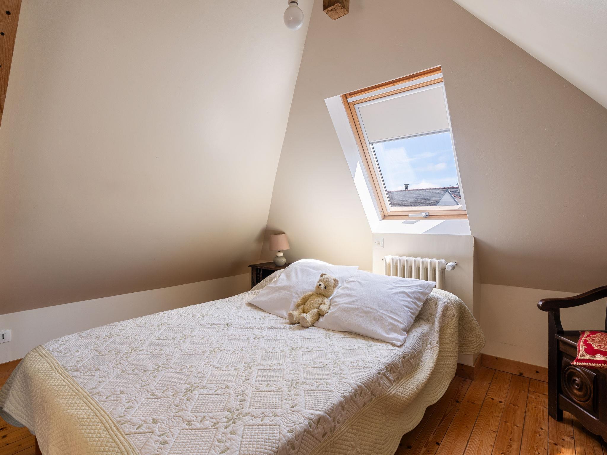 6-room house 130 m2 on 3 levels. Comfortable furnishings: living/dining room with 1 sofabed (140 cm, length 190 cm), open-hearth fireplace and TV (flat screen). Exit to the terrace. Kitchen 20 m2 (oven, dishwasher, Gas stove, 6 gas rings, toaster, kettle, microwave, freezer, electric coffee machine) with dining table. Upper floor: 1 room with 1 bed (90 cm, length 190 cm). 1 room with 1 french bed (140 cm, length 190 cm). 1 room with 1 french bed (140 cm, length 190 cm). Bath/shower, sep. WC, double hand-basin. 2nd upper floor: 1 room with 1 bed (90 cm, length 190 cm). Gallery with sloping ceilings with 1 sofabed (140 cm, length 190 cm). Terrace 6 m2. Terrace furniture. Facilities: washing machine. Internet (WiFi, free). Parking at the house. Please note: suitable for families. Non-smoking house. Smoke alarm. Offer by a private individual according to Art. 155, IV of CGI.