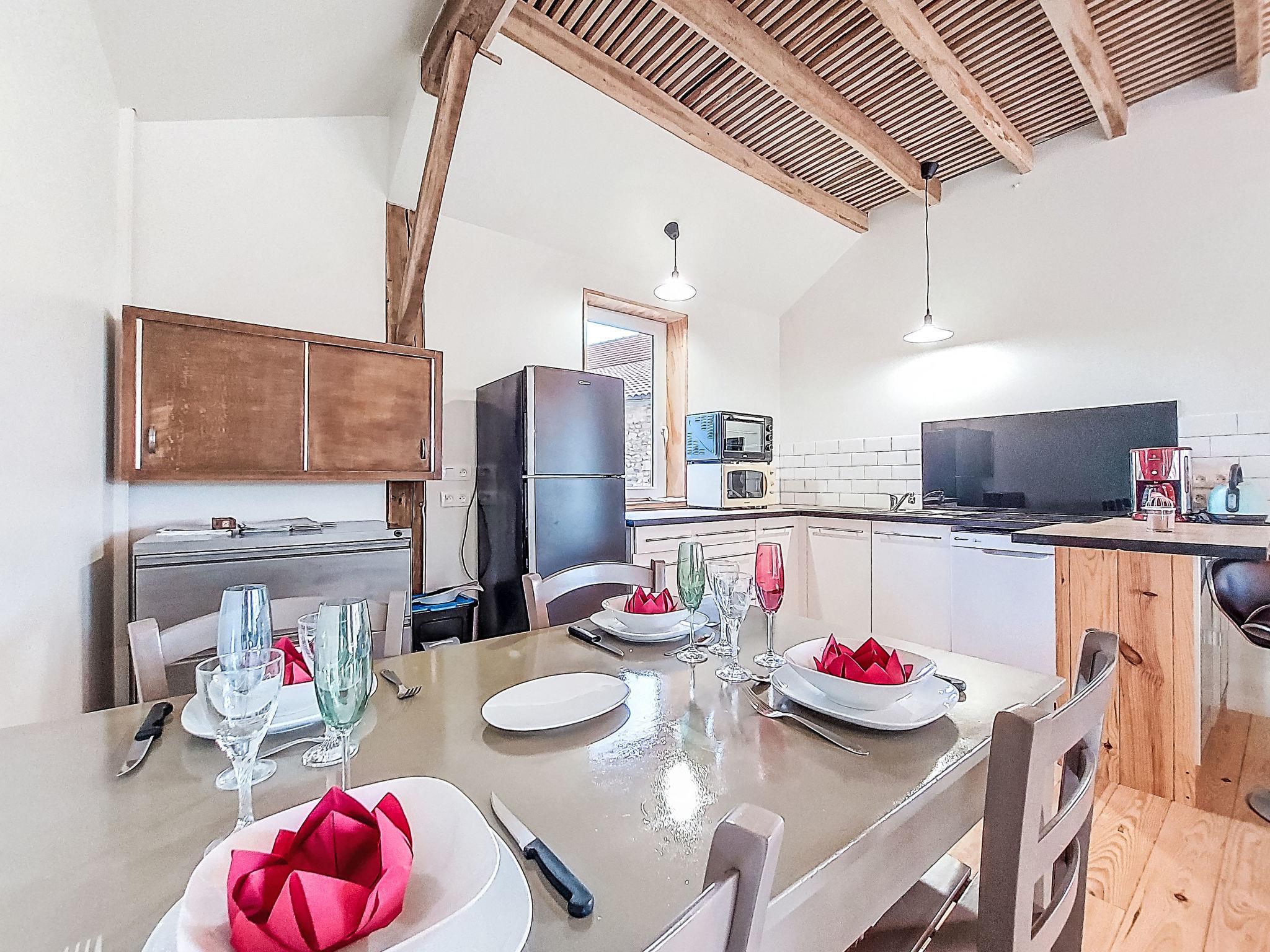 "Gîte Mathys", 3-room terraced house 53 m2. Comfortable and beautiful furnishings: living/dining room with wood-burning stove. 1 room with 1 french bed (140 cm, length 200 cm). 1 room with 2 beds (90 cm, length 200 cm). Open kitchen (mini-oven, oven, dishwasher, 3 induction hot plates, toaster, kettle, microwave, electric coffee machine). Shower/WC. Electric heating, wood heating. Beautiful view of the forest. Facilities: Internet (WiFi, free). Parking (2 cars) at the house. Please note: non-smokers only. Maximum 2 pets/ dogs allowed. Smoke alarm. Offer by a private individual according to Art. 155, IV of CGI.