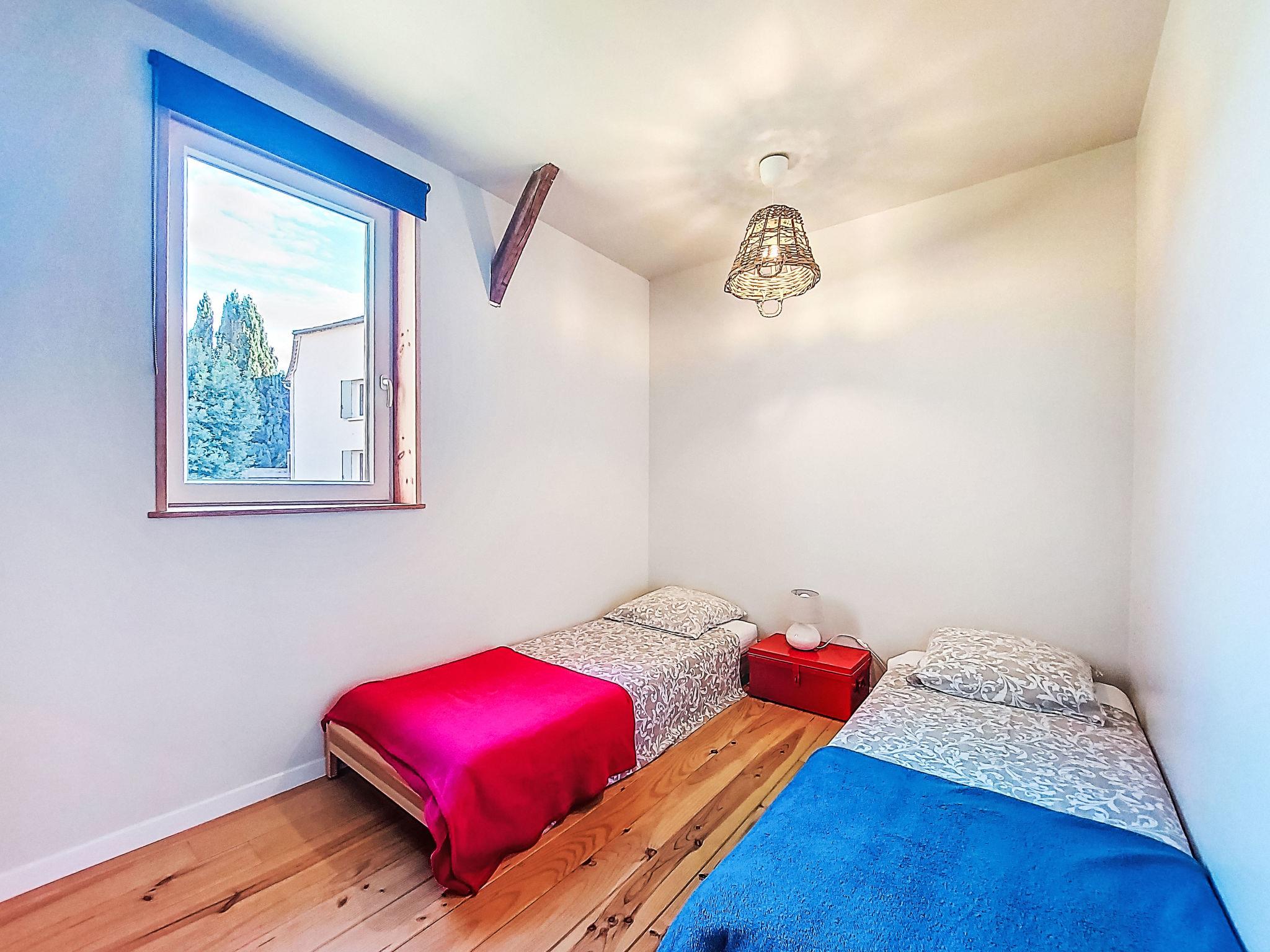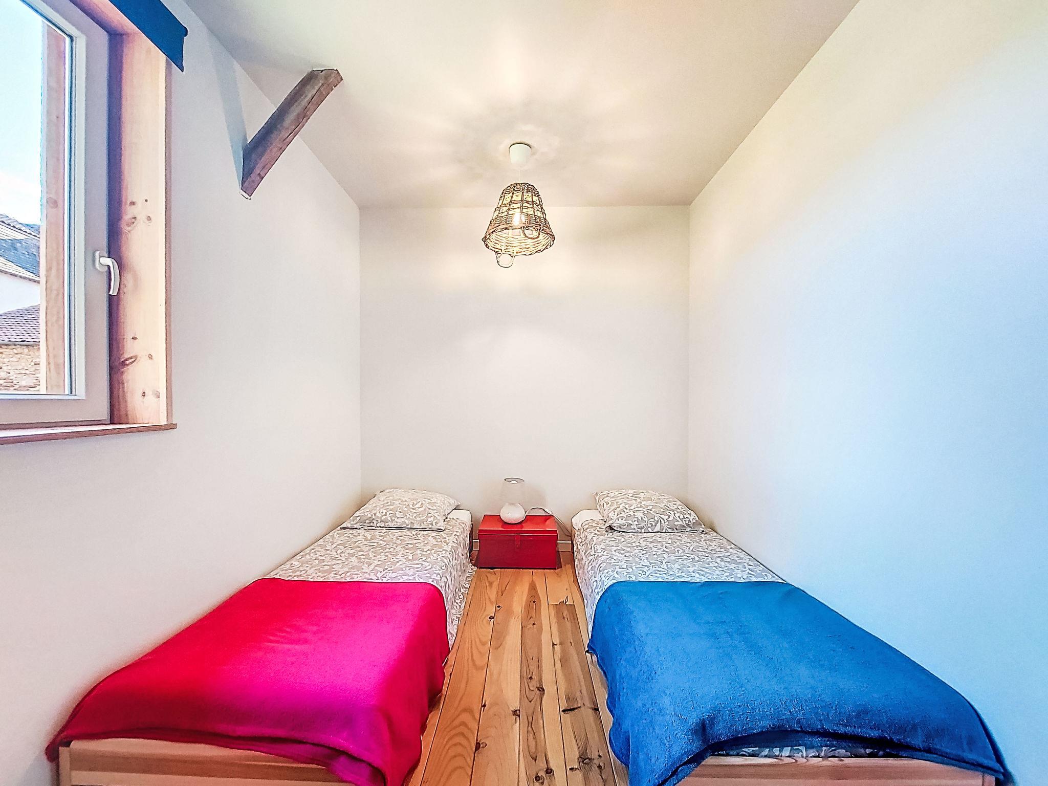 "Gîte Kasssandre", 3-room house 52 m2. Comfortable and beautiful furnishings: living/dining room with wood-burning stove. Exit to the terrace. 1 room with 1 french bed (140 cm, length 200 cm). 1 room with 2 beds (90 cm, length 190 cm). Kitchen (oven, dishwasher, 4 gas rings, toaster, kettle, microwave, freezer, electric coffee machine, cooking island). Shower/WC. Electric heating, wood heating. Facilities: Internet (WiFi, free). Parking (2 cars) at the house. Please note: non-smoking house. Maximum 1 pet/ dog allowed. Smoke alarm. Offer by a private individual according to Art. 155, IV of CGI.