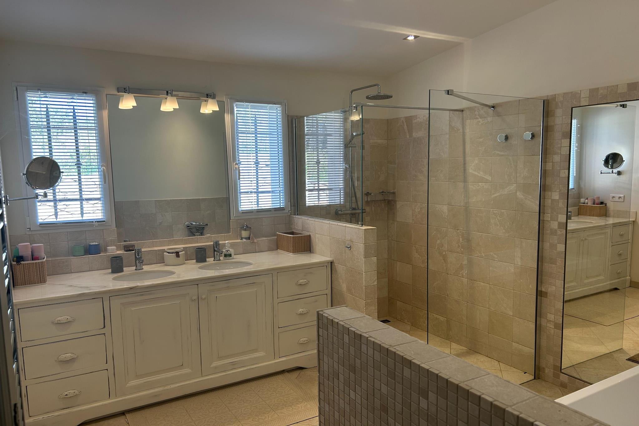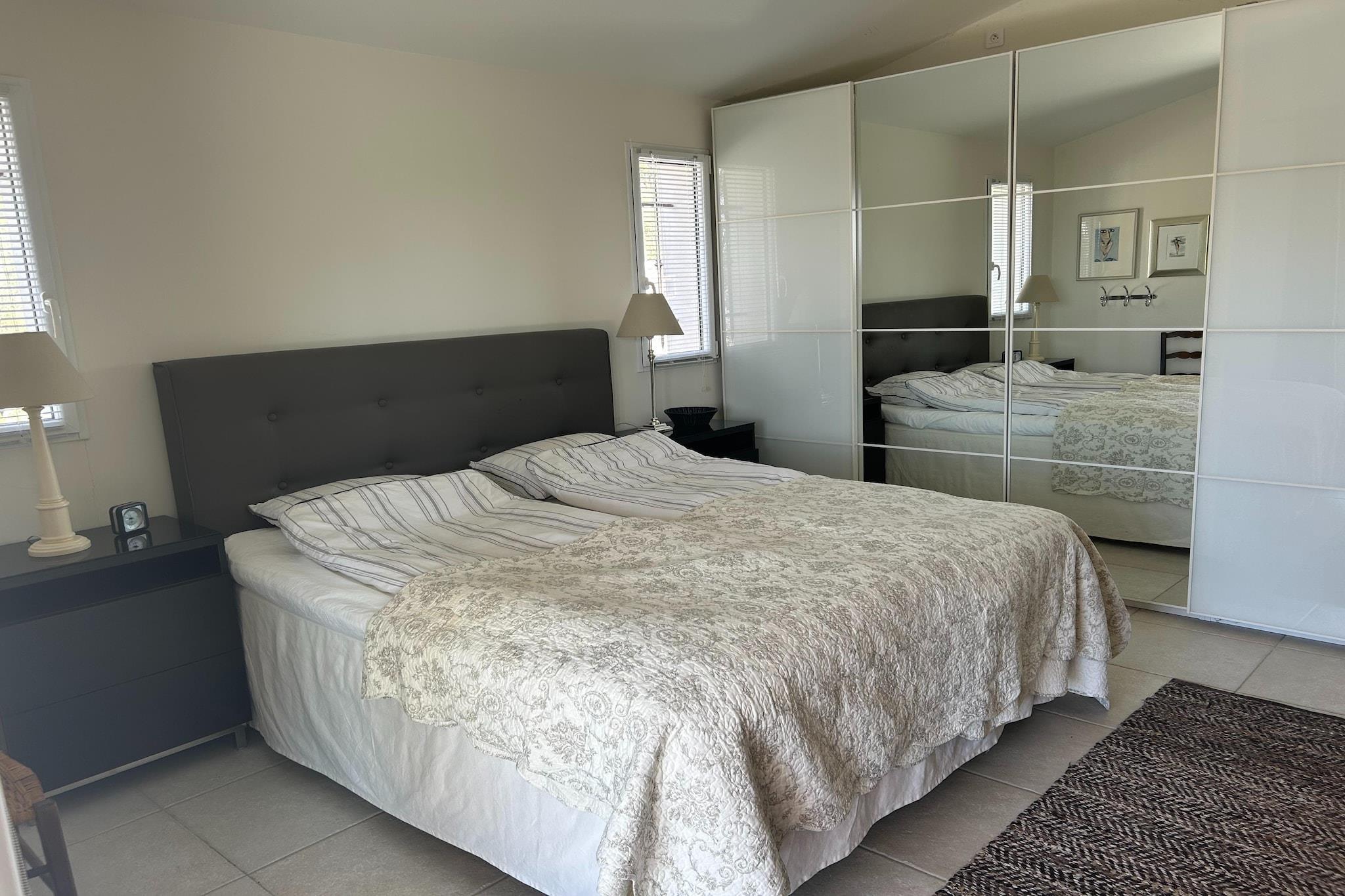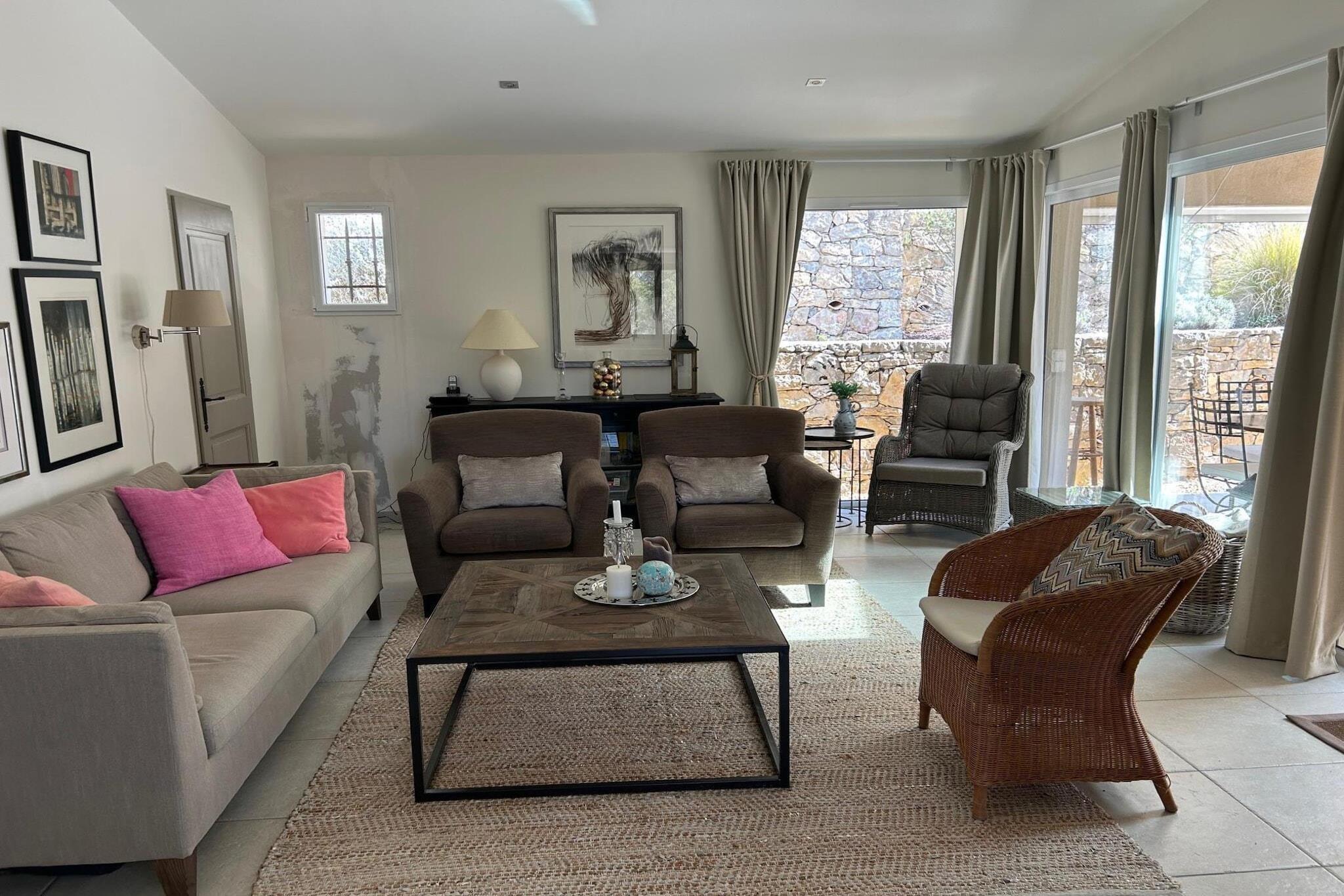 Flygt til en oase af ro i hjertet af Sydfrankrig! Villa Helene, beliggende i Flayosquet, kombinerer moderne luksus med den rolige skønhed af den provençalske natur. Kun 3 km fra det maleriske Flayosc og 10 km fra den historiske Draguignan, tilbyder denne villa den perfekte base for en uforglemmelig ferie. I stueetagen finder du et rummeligt, fuldt udstyret køkken og to hyggelige opholdsstuer – komplet med en tv udstyret med Chromecast til hyggelige film aftener. Det rummelige dobbeltværelse med en komfortabel seng (180x200) har aircondition. Det moderne badeværelse har to håndvaske, en bruser og et badekar. Der er også et separat toilet og et praktisk bryggers med vaskemaskine og tørretumbler. På første sal ligger to hyggelige dobbeltværelser, også begge udstyret med aircondition. Et af værelserne er indrettet med to enkeltsenge, ideelt til børn. Et ekstra badeværelse med håndvask og bruser samt et separat toilet giver ekstra komfort. Der er smukke patioterrasser, nogle delvist overdækkede og komplet med et udendørs køkken og spiseplads. Her kan du nyde den middelhavs sol på bedste vis. Det forfriskende swimmingpool (5x11 m) indbyder til en dukkert, mens den store, afskærmede have med frodige planter og autentiske oliventræer skaber en idyllisk atmosfære. Omgivet af skove oplever du her den ultimative privatliv og ro. Villa Helene har også et studio, ideelt til ekstra gæster. Studioet har to enkle dobbeltværelser: ét med to enkeltsenge og et værelse med en 160x200 seng. Selvom der ikke er aircondition, sikrer ventilatorer en behagelig køling. Badeværelset med håndvask, toilet og bruser fuldender hele rummet. Uanset om du leder efter en ferie med familien eller et sted at slappe af med venner, tilbyder Villa Helene alt, hvad du behøver for et bekymringsfrit ophold i det solrige Sydfrankrig. Book din drømmeferie og oplev magien i Provence!